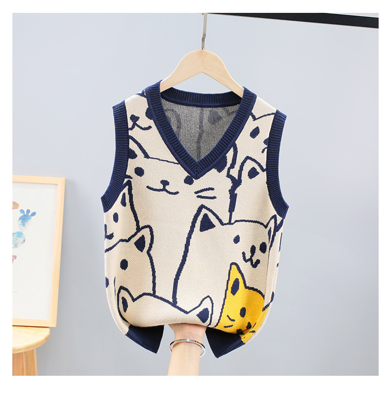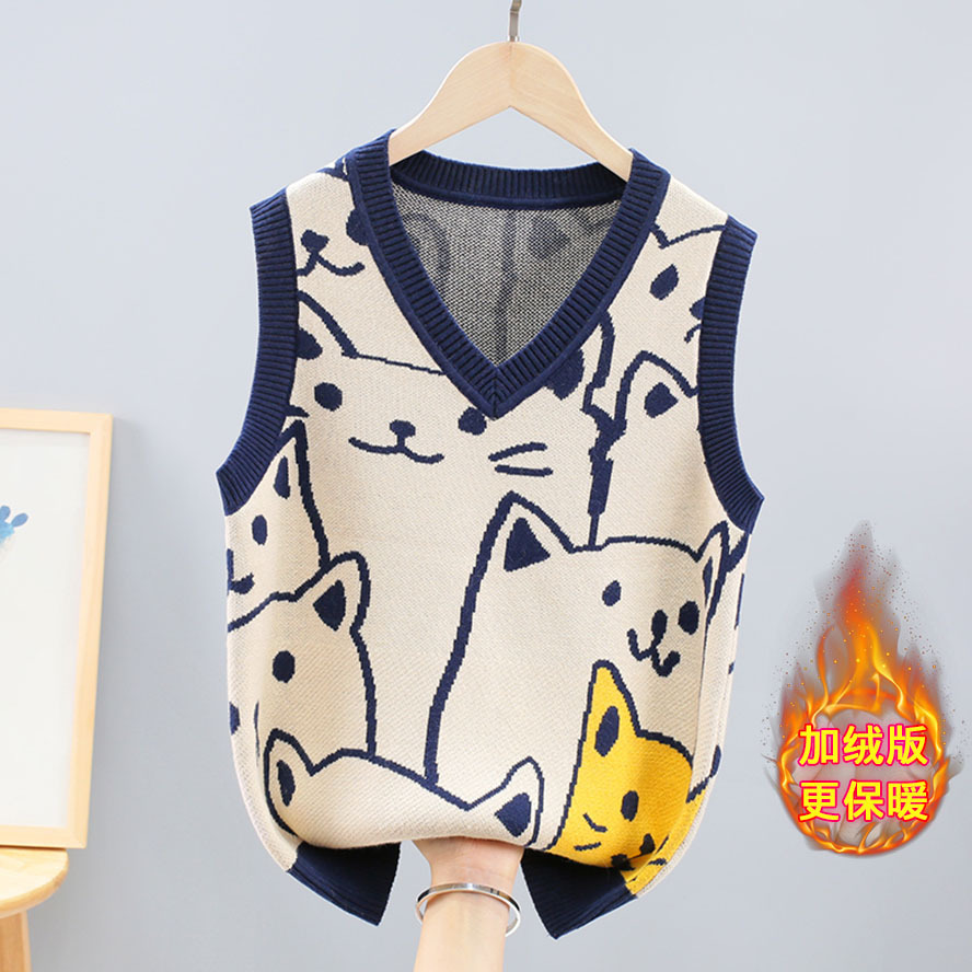 남아의 봄과 가을 스웨터 조끼 겉옷 아동면 내부 착용 중간 및 큰 어린이 울 니트 조끼 기모 두껍게스토어 가기