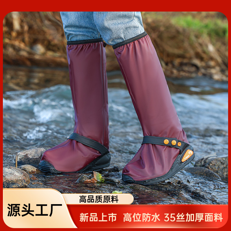 品名:新款骑行户外防雨鞋套全新升级高筒加厚底一体成型绑带底防水雨鞋
