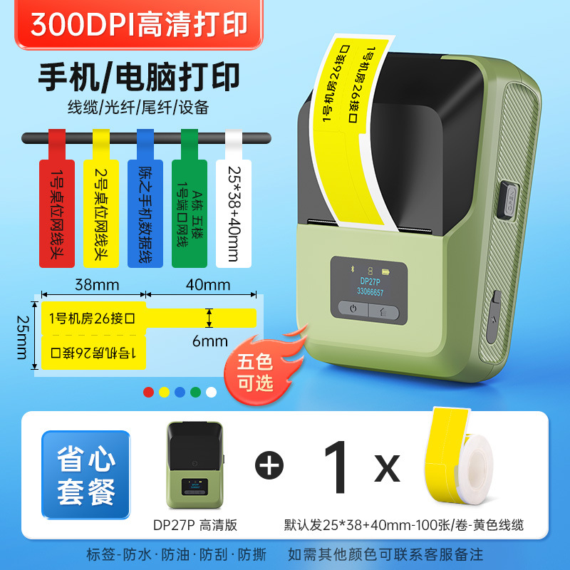 • [300DPI HD Edition] DP27P 라벨링 기계는 케이블 라벨 1 롤을 보냅니다.