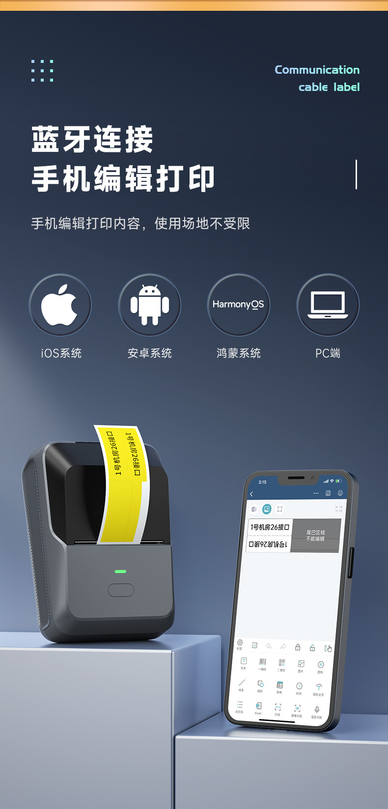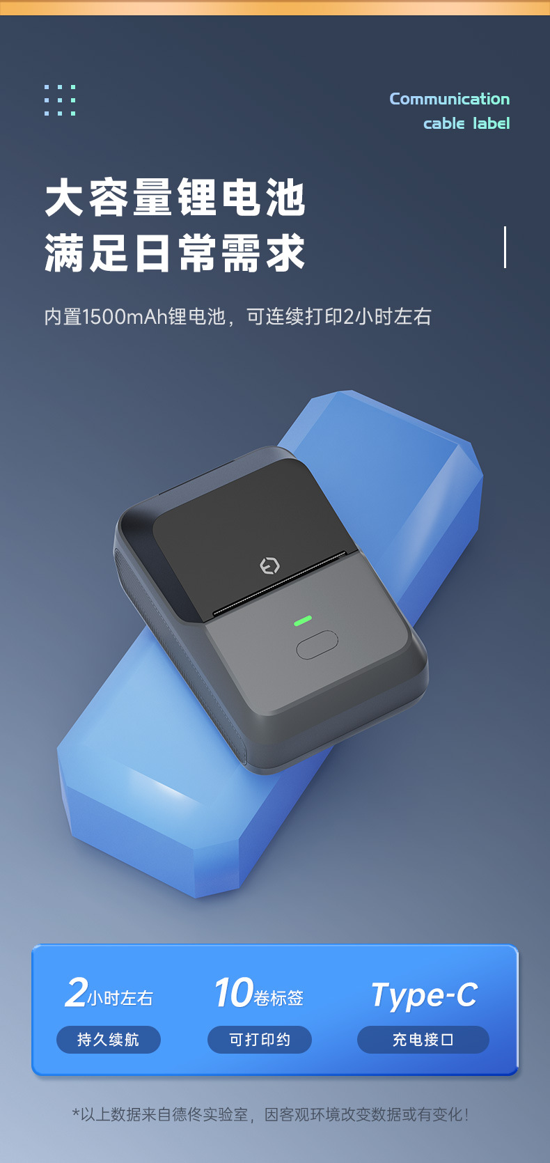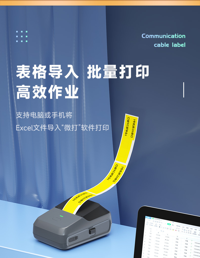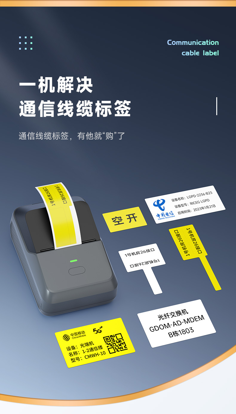 Deqian P2 통신 케이블 라벨 프린터 소형 케이블 엔지니어링 나이프 타입 데이터 센터 네트워크 케이블 네트워크 통신 블루투스