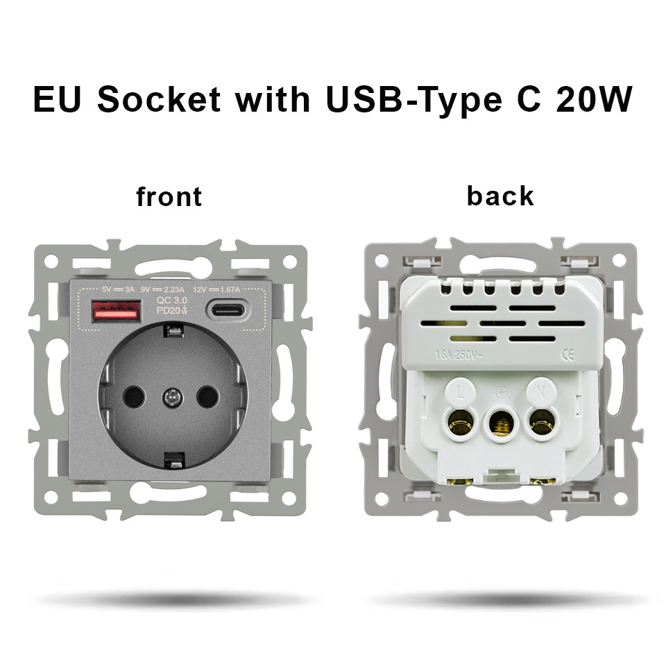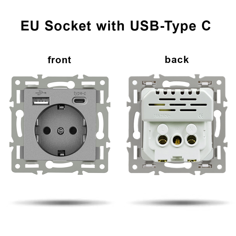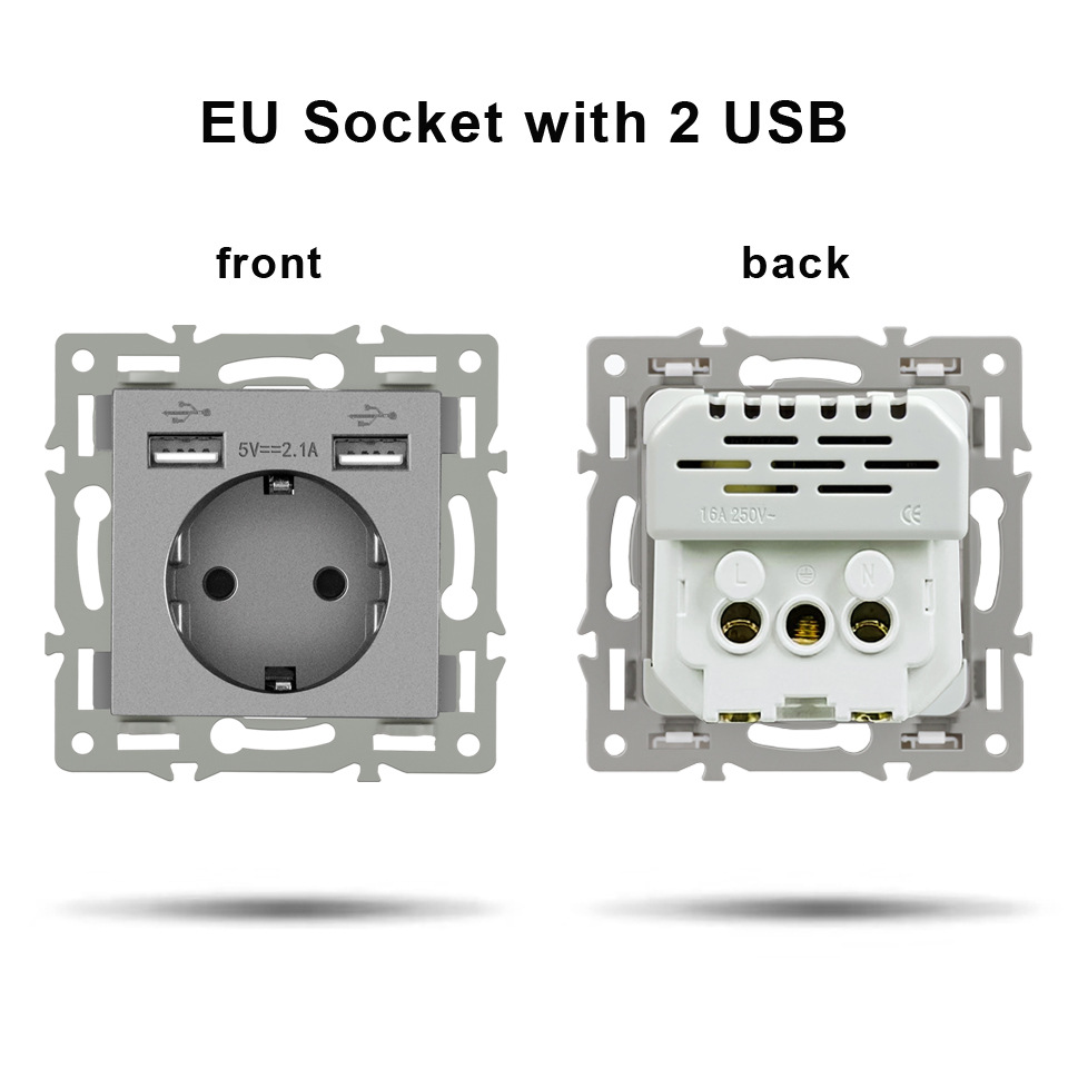 유럽 표준 86 유형 결합 된 독일 프랑스 회색 유리 패널 벽 스위치 소켓 기능 모듈 조합 대외 무역스토어 가기