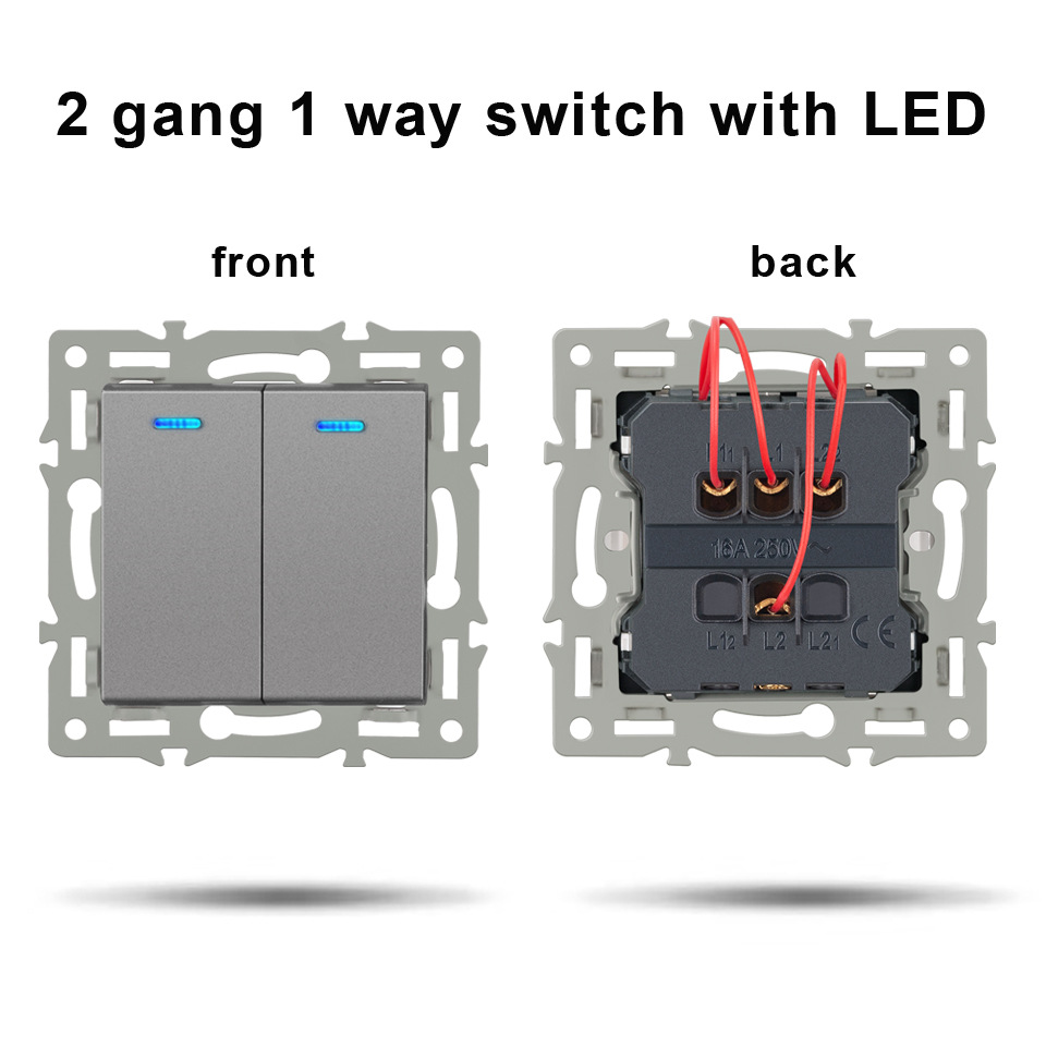 • OB 모듈 (LED가있는 2 개의 개방형 이중 제어 스위치)-회색