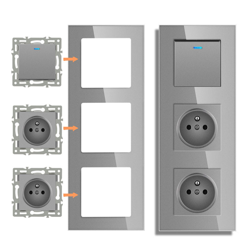 유럽 표준 86 유형 결합 된 독일 프랑스 회색 유리 패널 벽 스위치 소켓 기능 모듈 조합 대외 무역