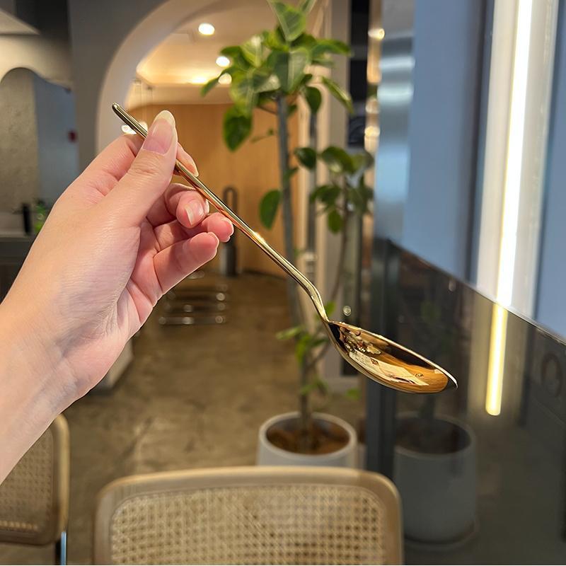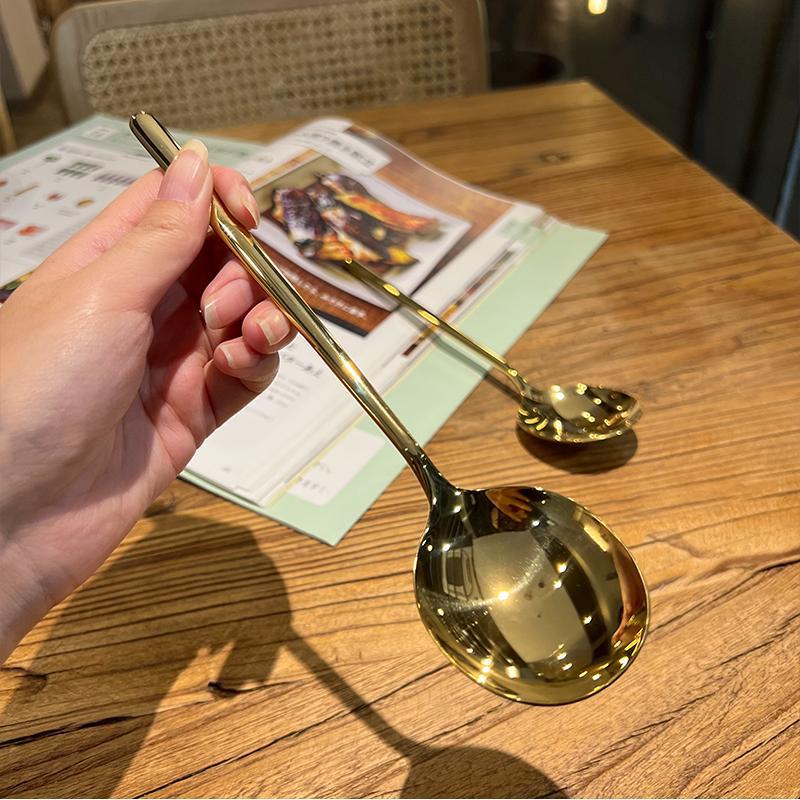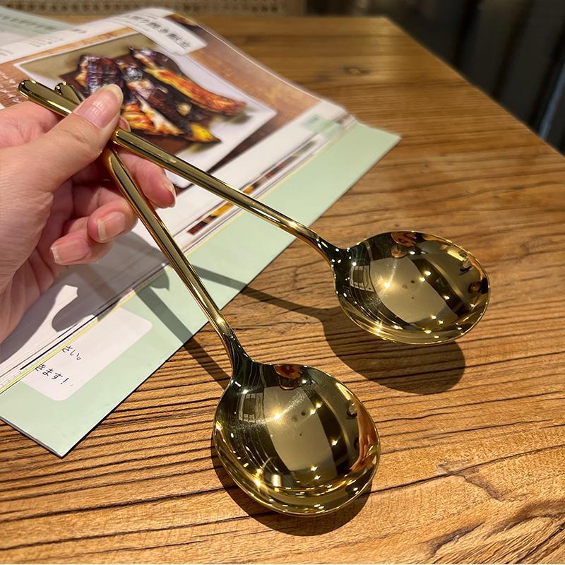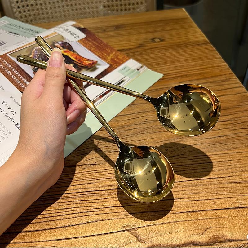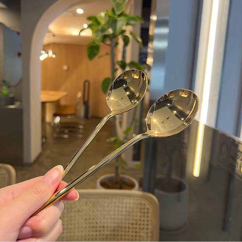 높은 색상 값 304 스테인레스 스틸 스푼 서브넷 레드 롱 핸들 디저트 스푼 스푼 골든 스푼 라운드 헤드 먹는 숟가락 숟가락 숟가락
