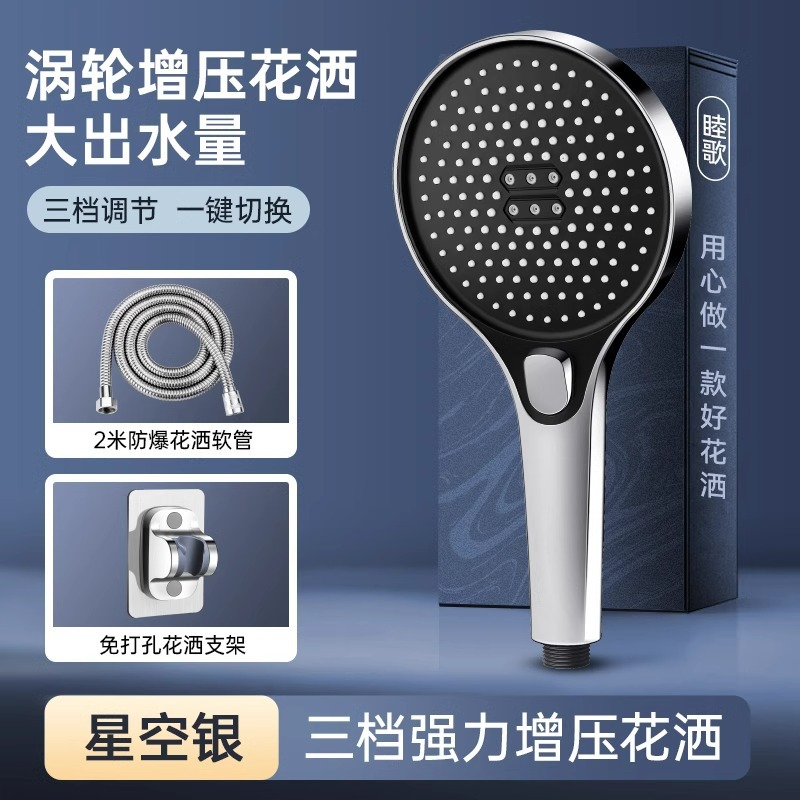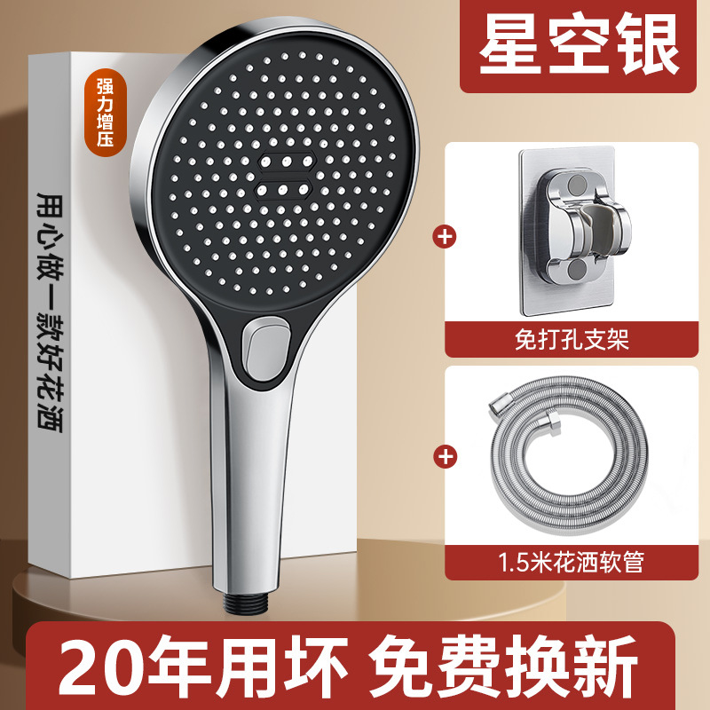 • 별이 빛나는 하늘 실버-슈퍼 차저 워터 샤워 + 1.5 m 샤워 호스-브래킷
