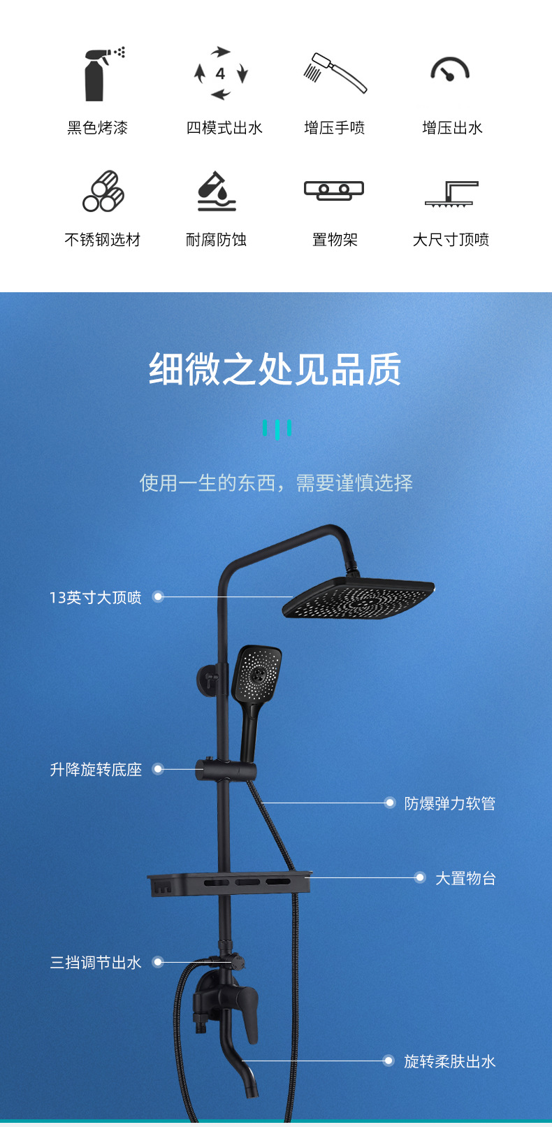 • 개방형 3 기어 황동 두꺼운 수도꼭지 [사각 별이 빛나는 샤워 세트]
