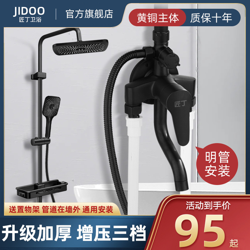 개방형 샤워 헤드 세트 구리 혼합 밸브 욕실 욕실 욕실 부스터 노즐 레인 샤워스토어 가기