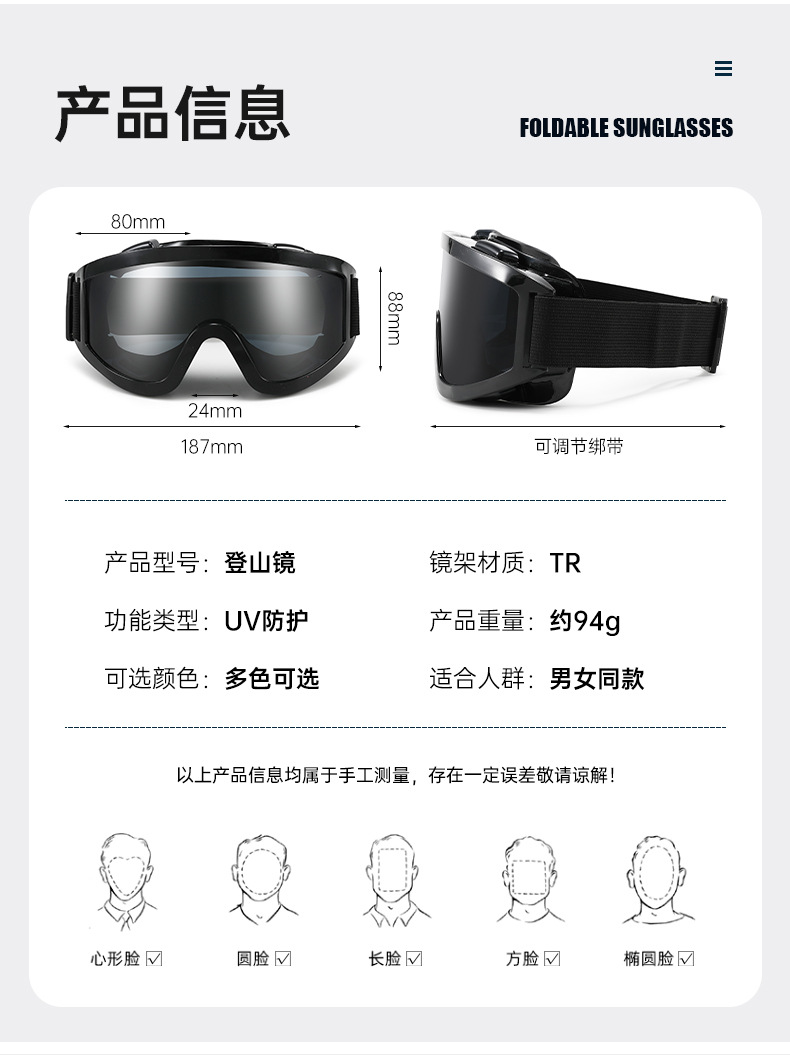 겨울 등산 스키 고글 남자 오토바이 방풍 야외 스포츠 선글라스 햇빛 안티 눈부심 고글 여성
