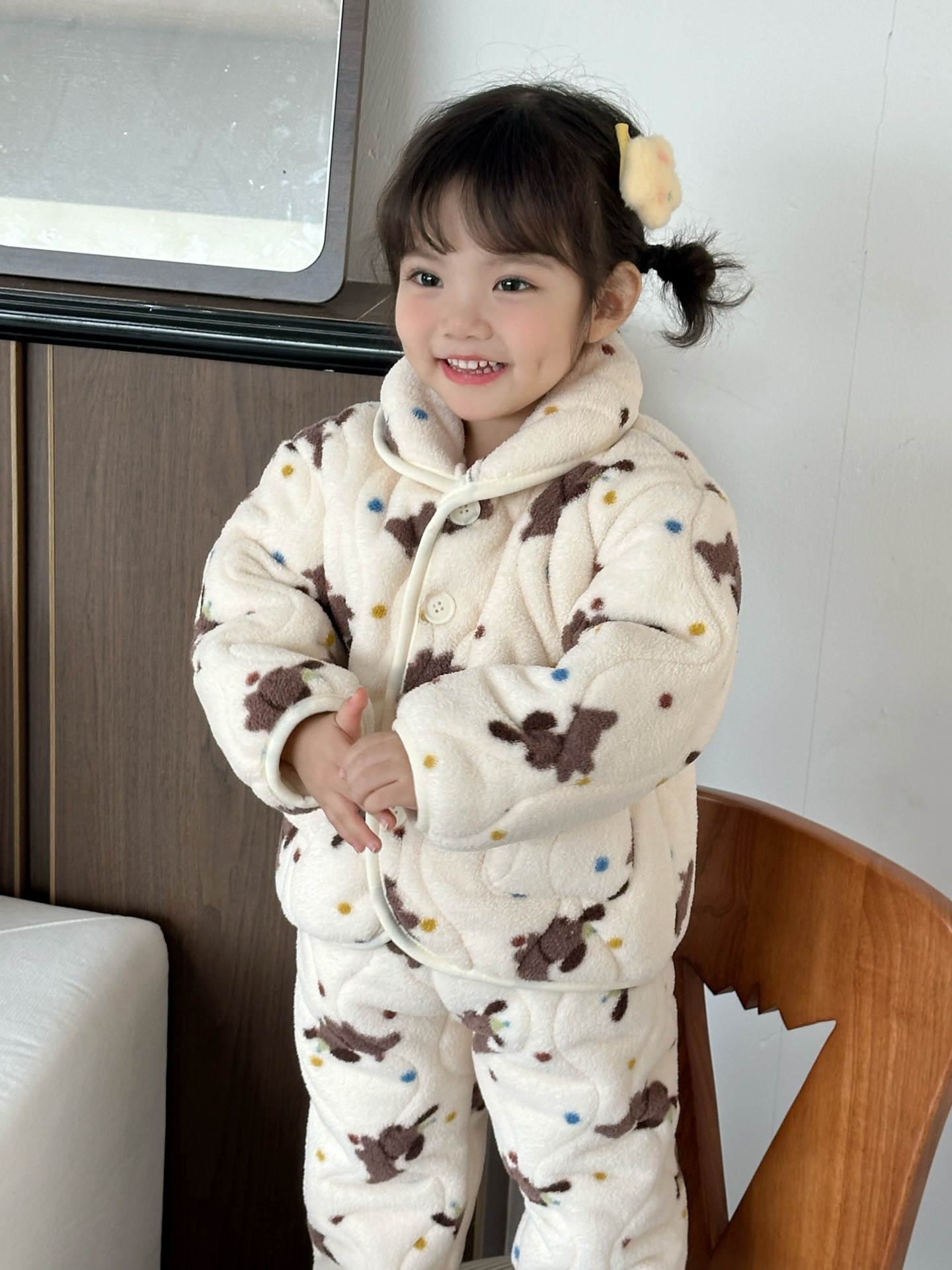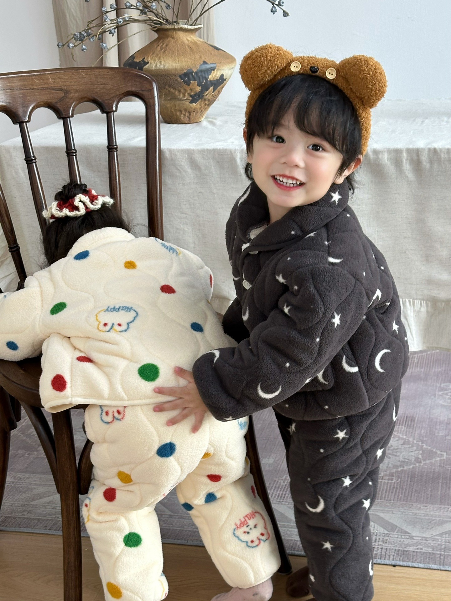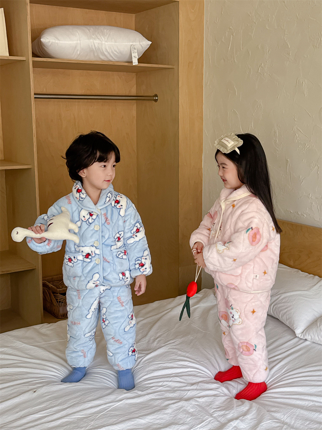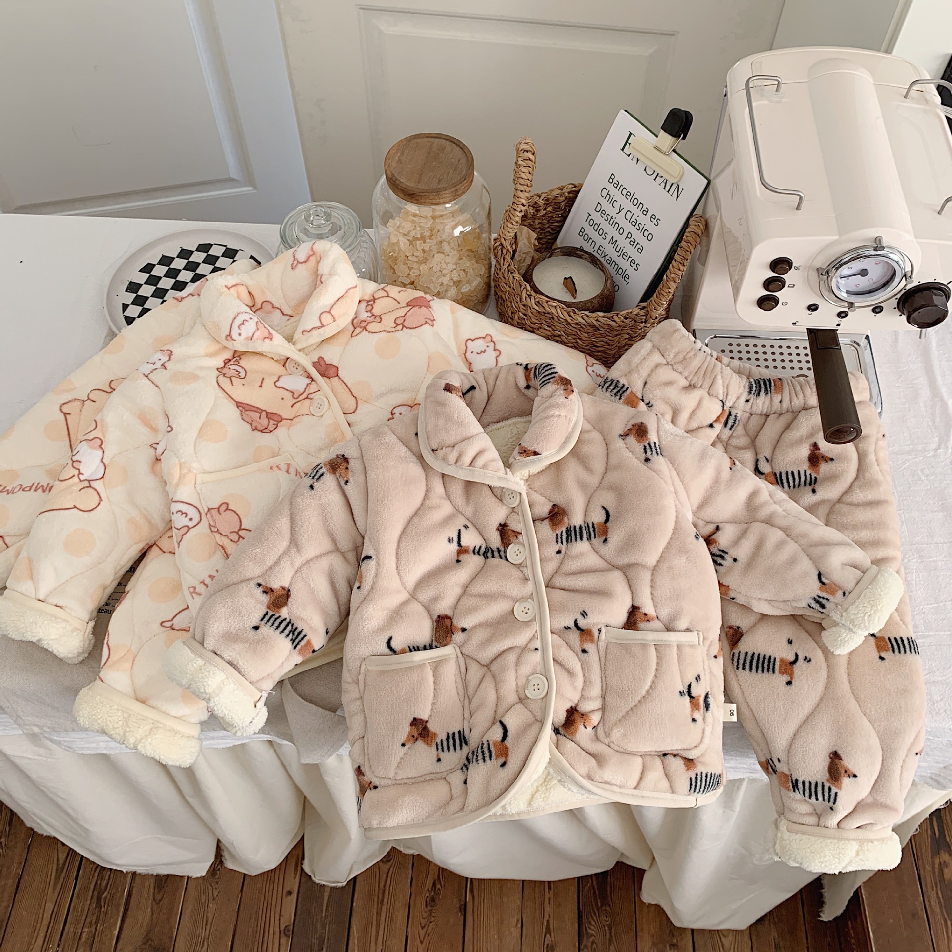 어린이와 소녀를 위한 3겹 누빔 잠옷, 두꺼운 따뜻한 플란넬 홈웨어 세트, 겨울용스토어 가기