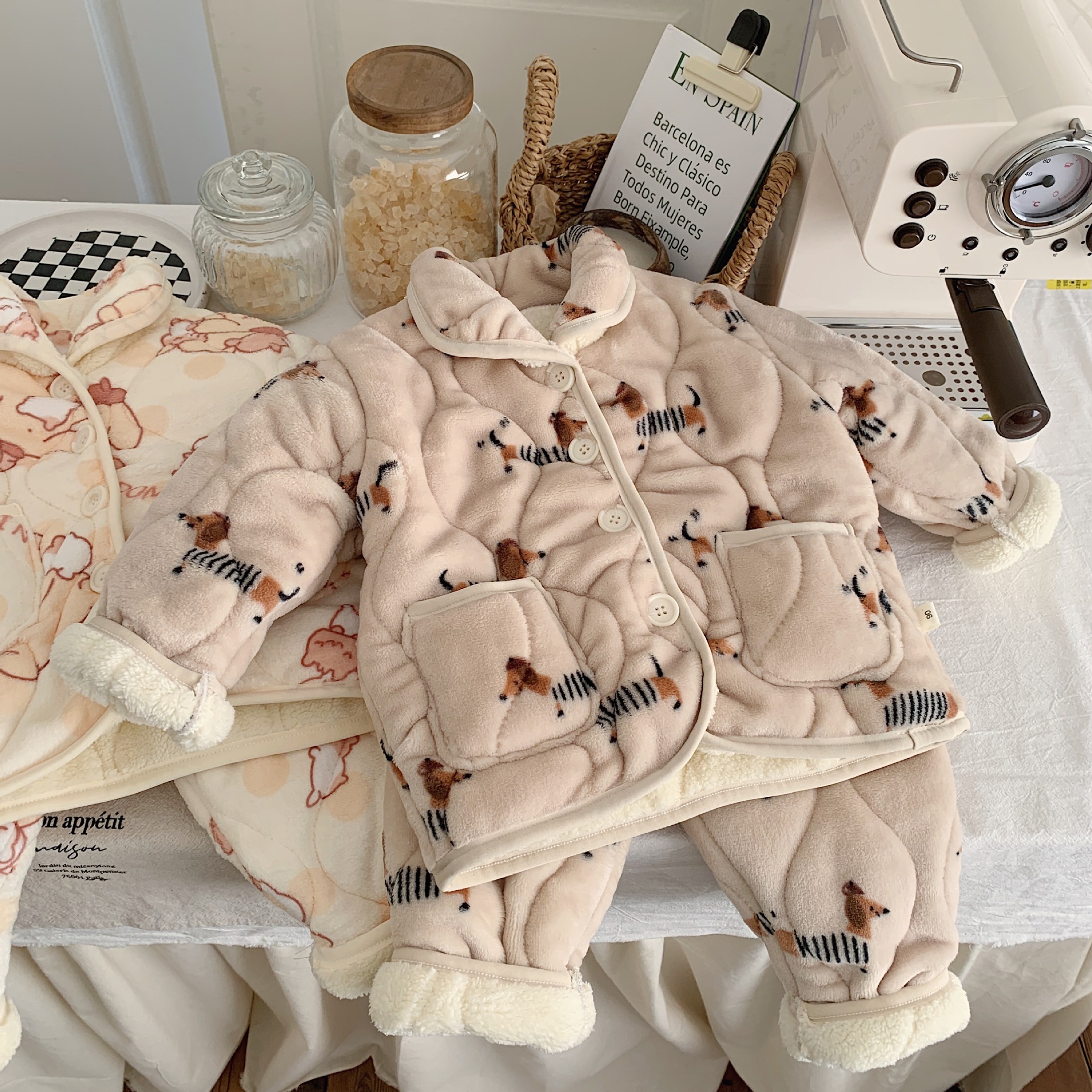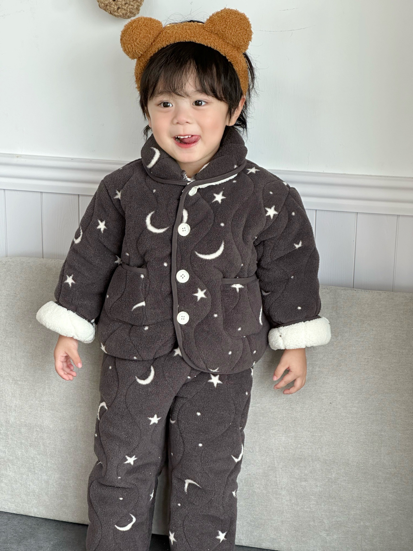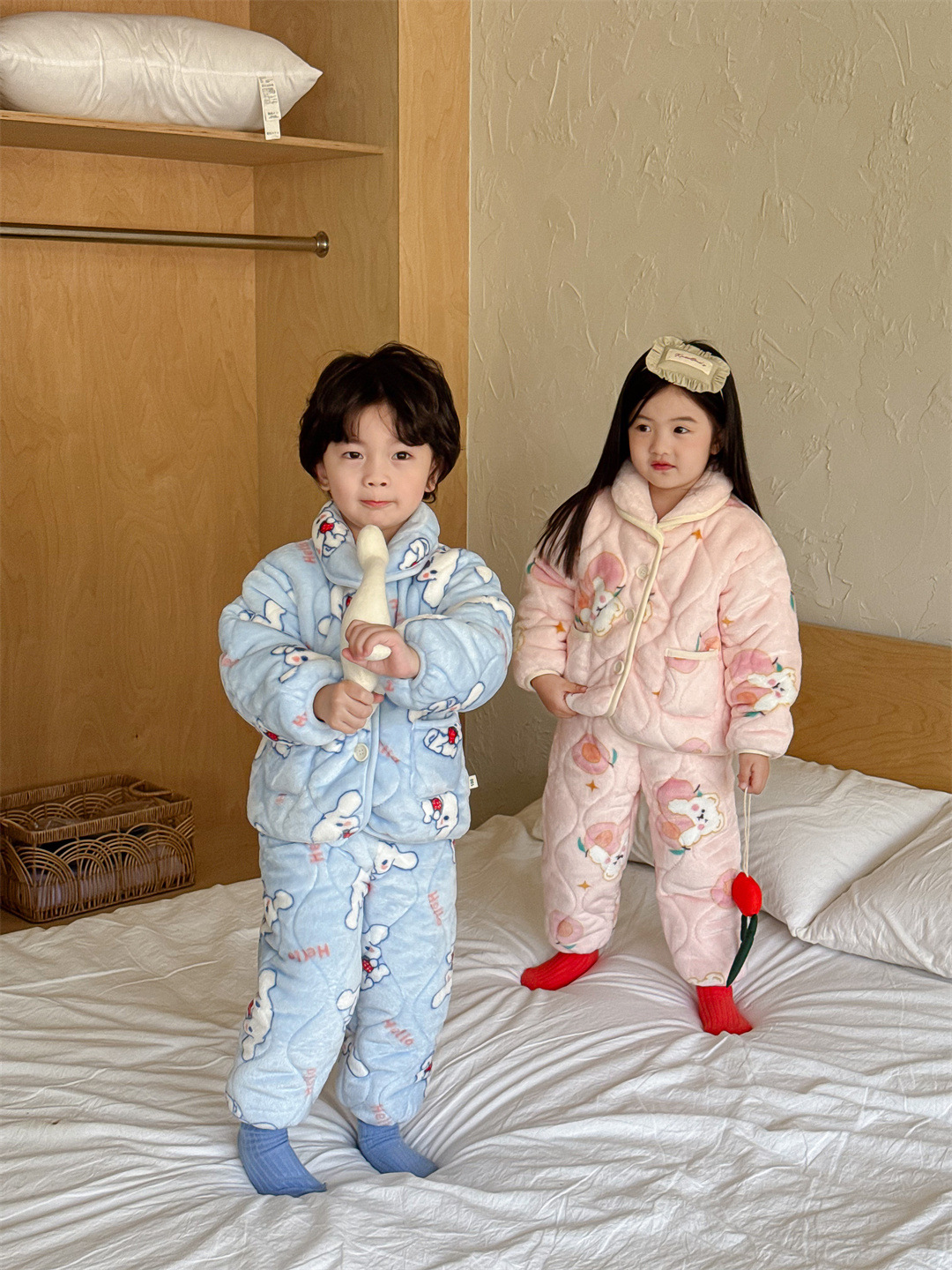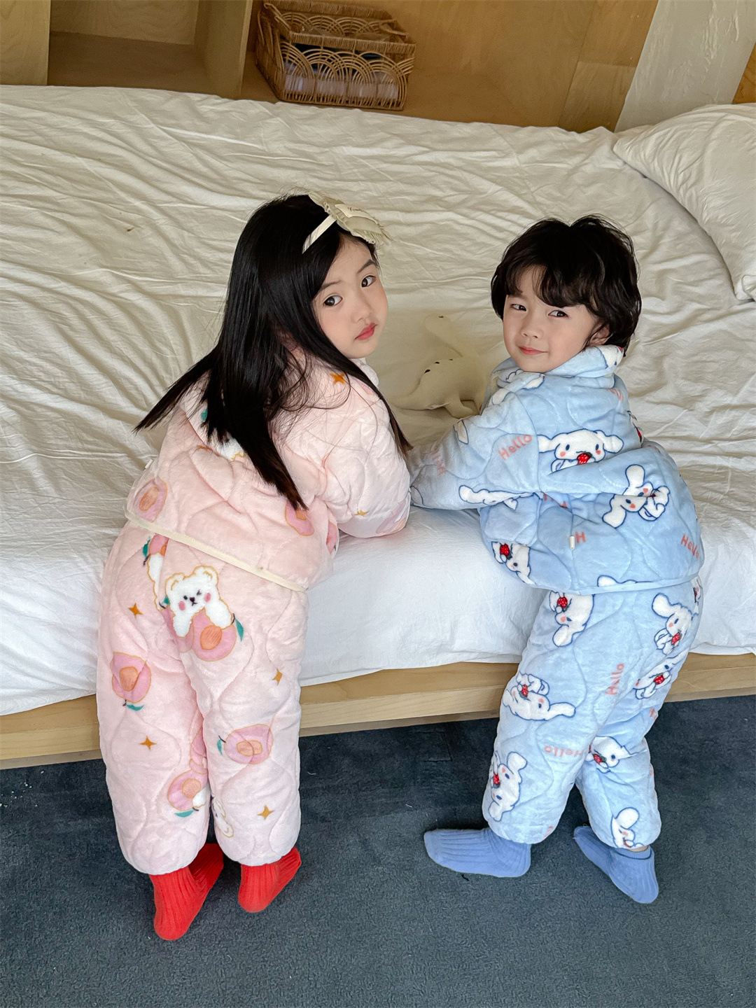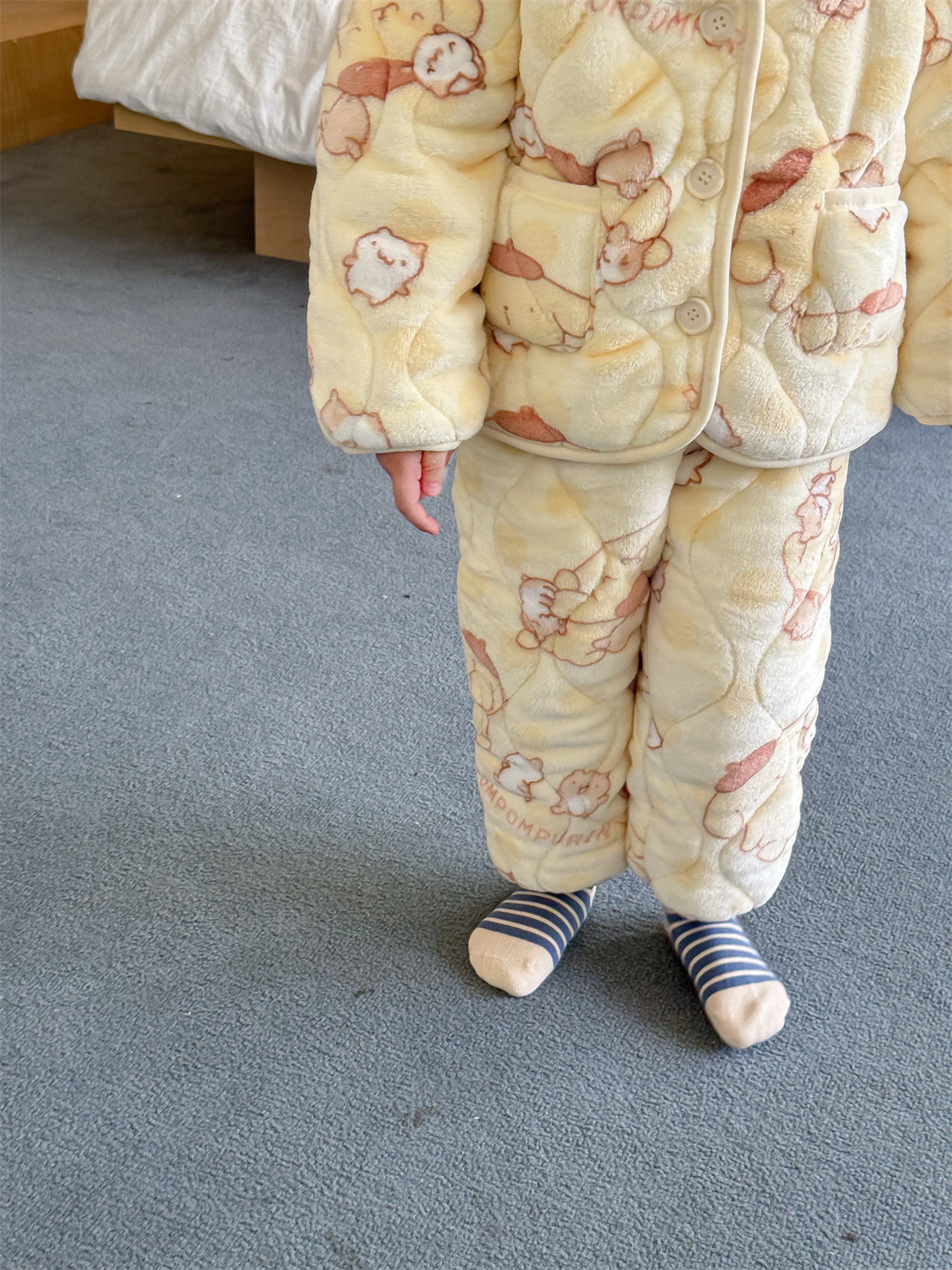 어린이와 소녀를 위한 3겹 누빔 잠옷, 두꺼운 따뜻한 플란넬 홈웨어 세트, 겨울용스토어 가기