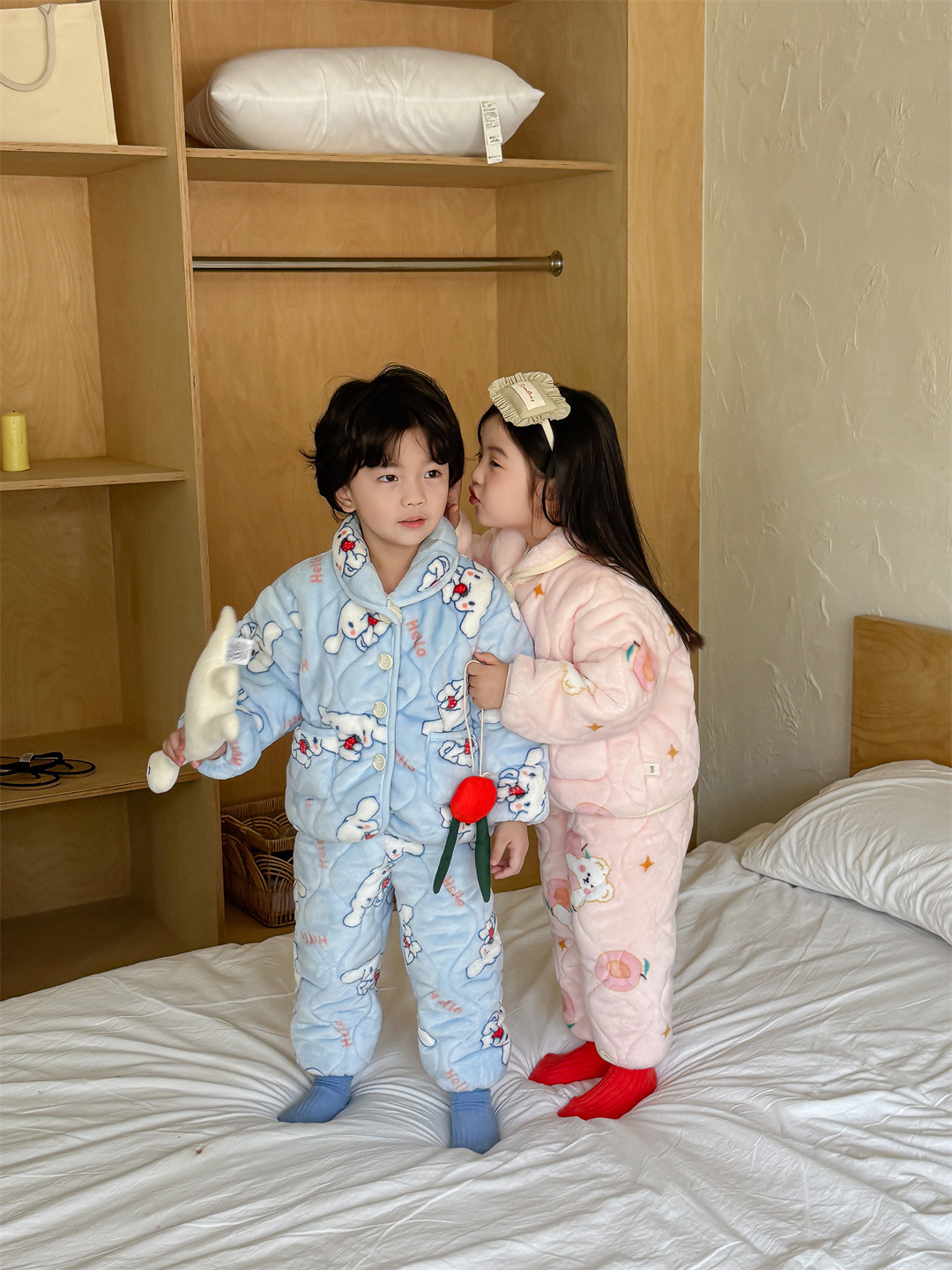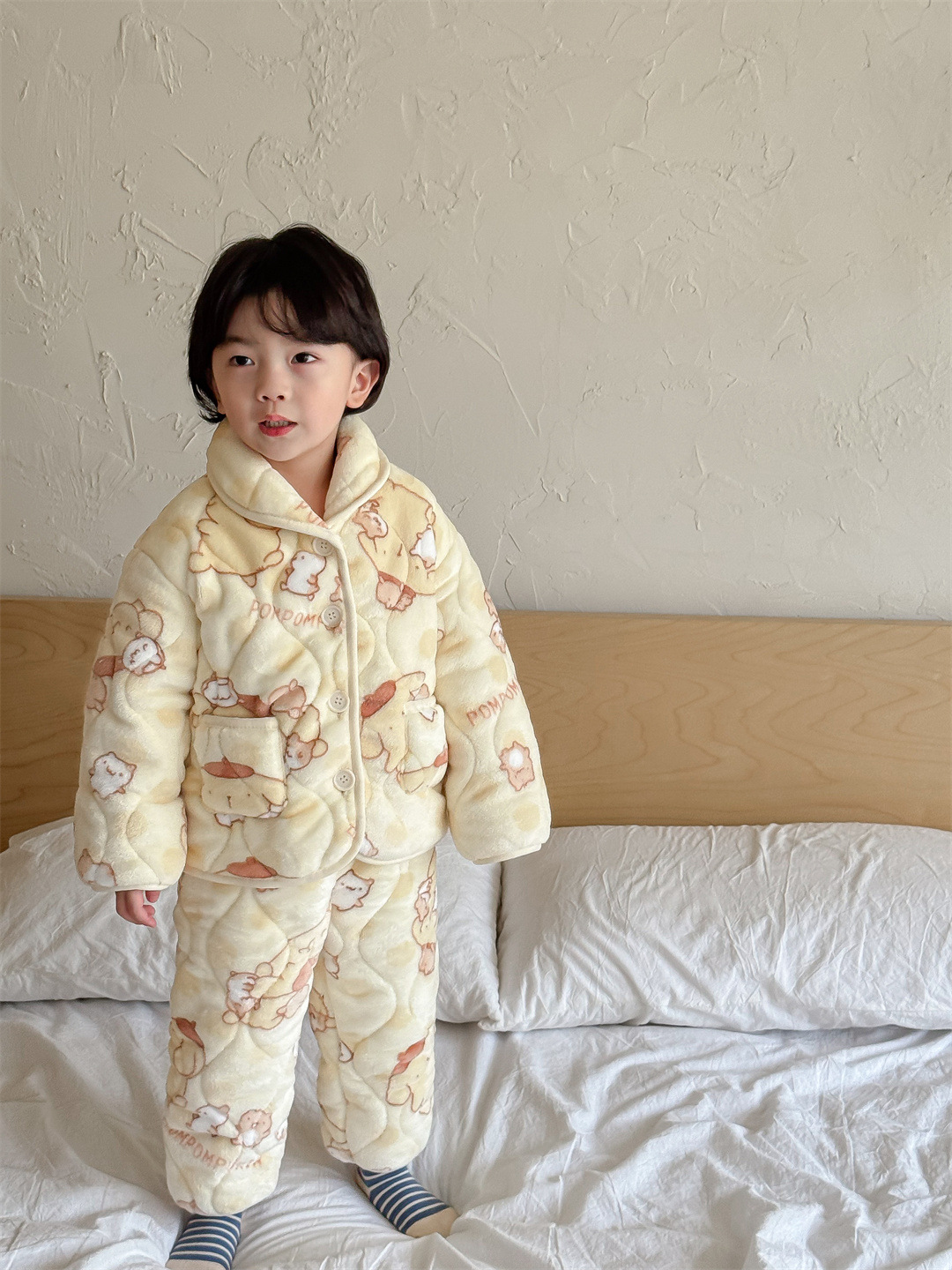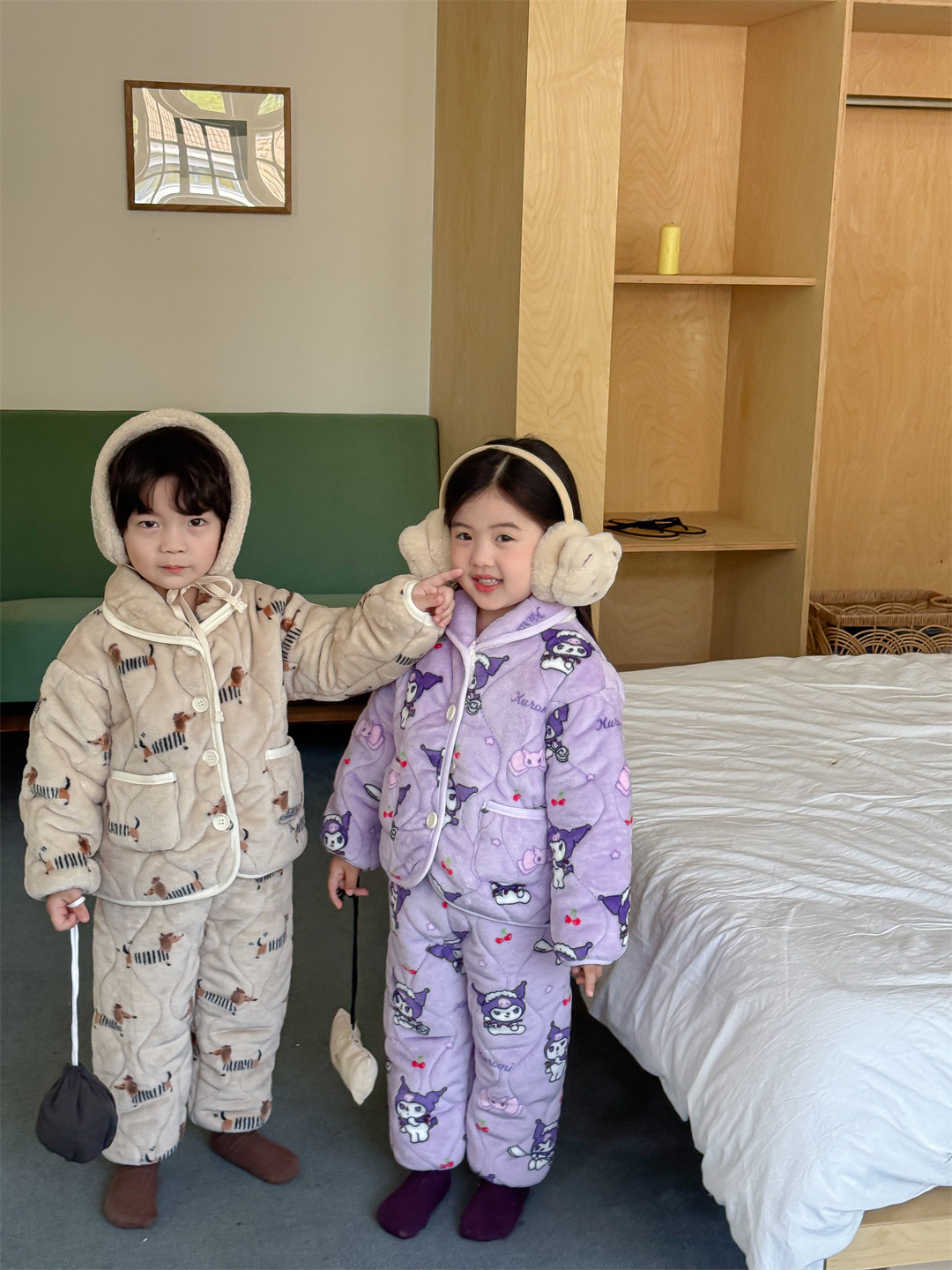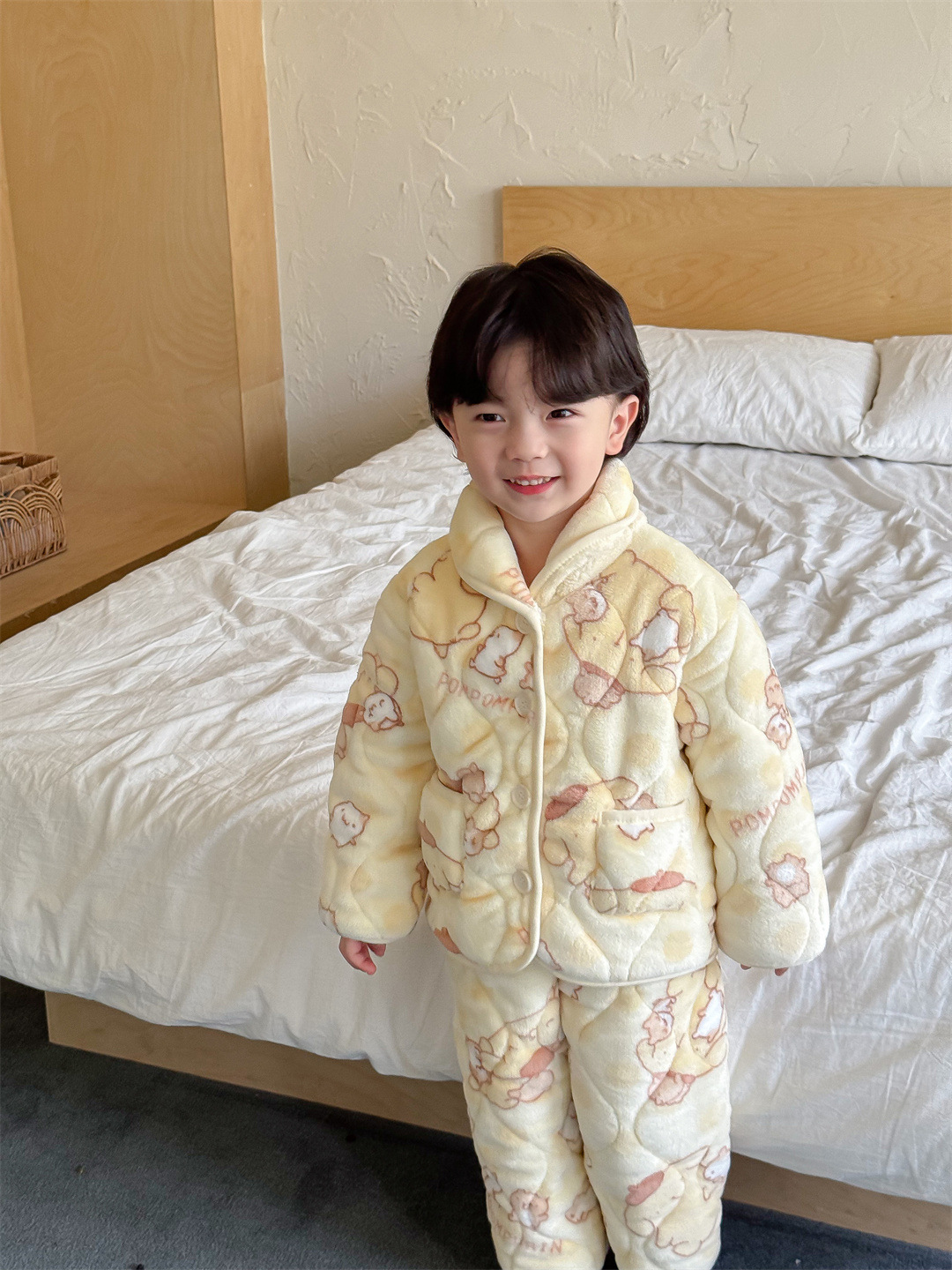 어린이와 소녀를 위한 3겹 누빔 잠옷, 두꺼운 따뜻한 플란넬 홈웨어 세트, 겨울용스토어 가기