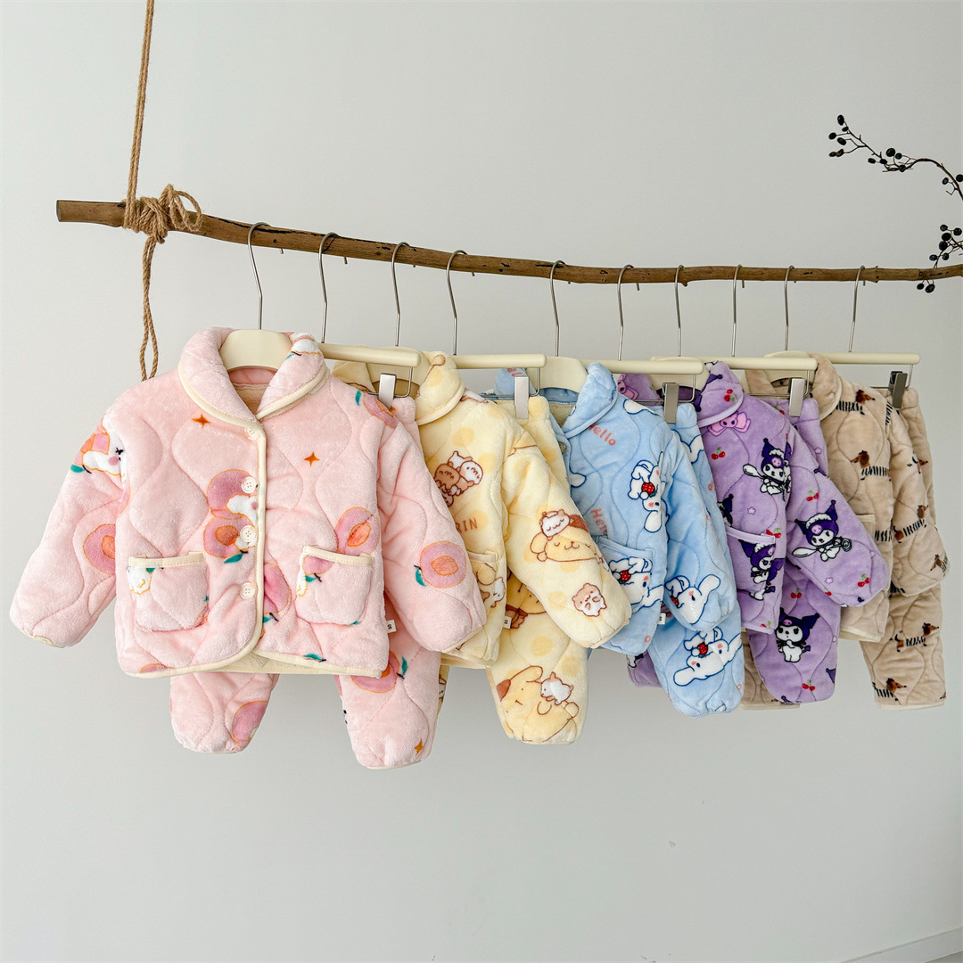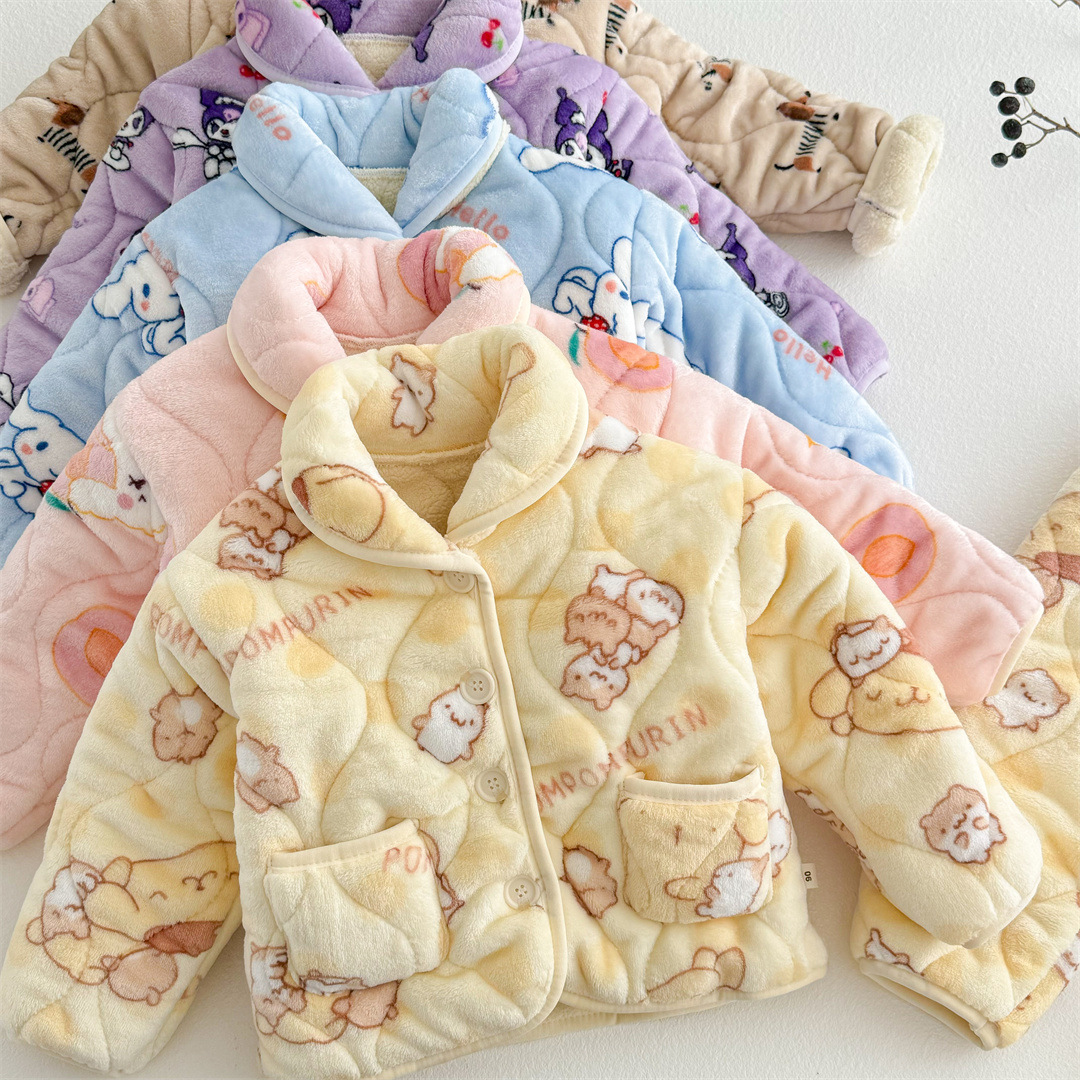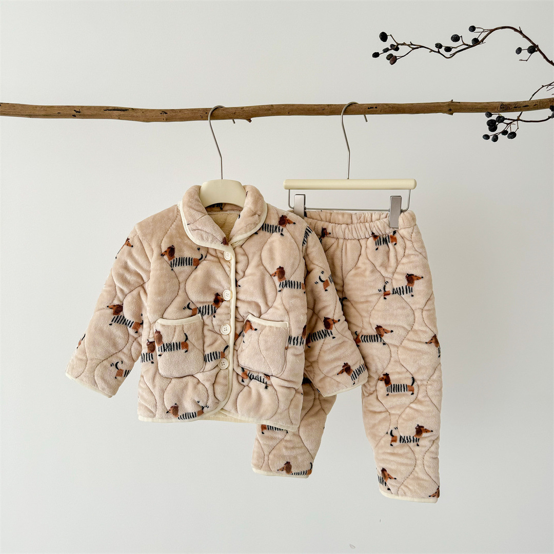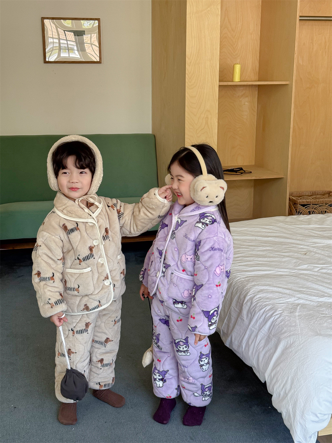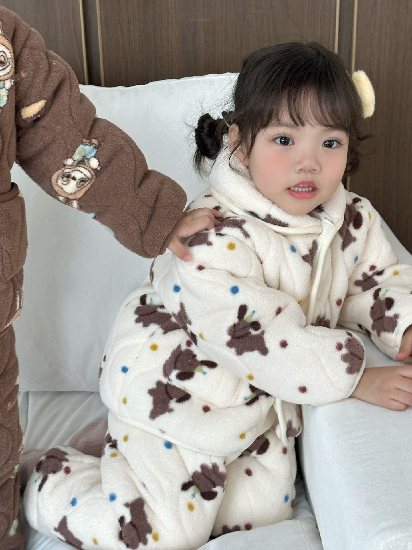 어린이와 소녀를 위한 3겹 누빔 잠옷, 두꺼운 따뜻한 플란넬 홈웨어 세트, 겨울용스토어 가기