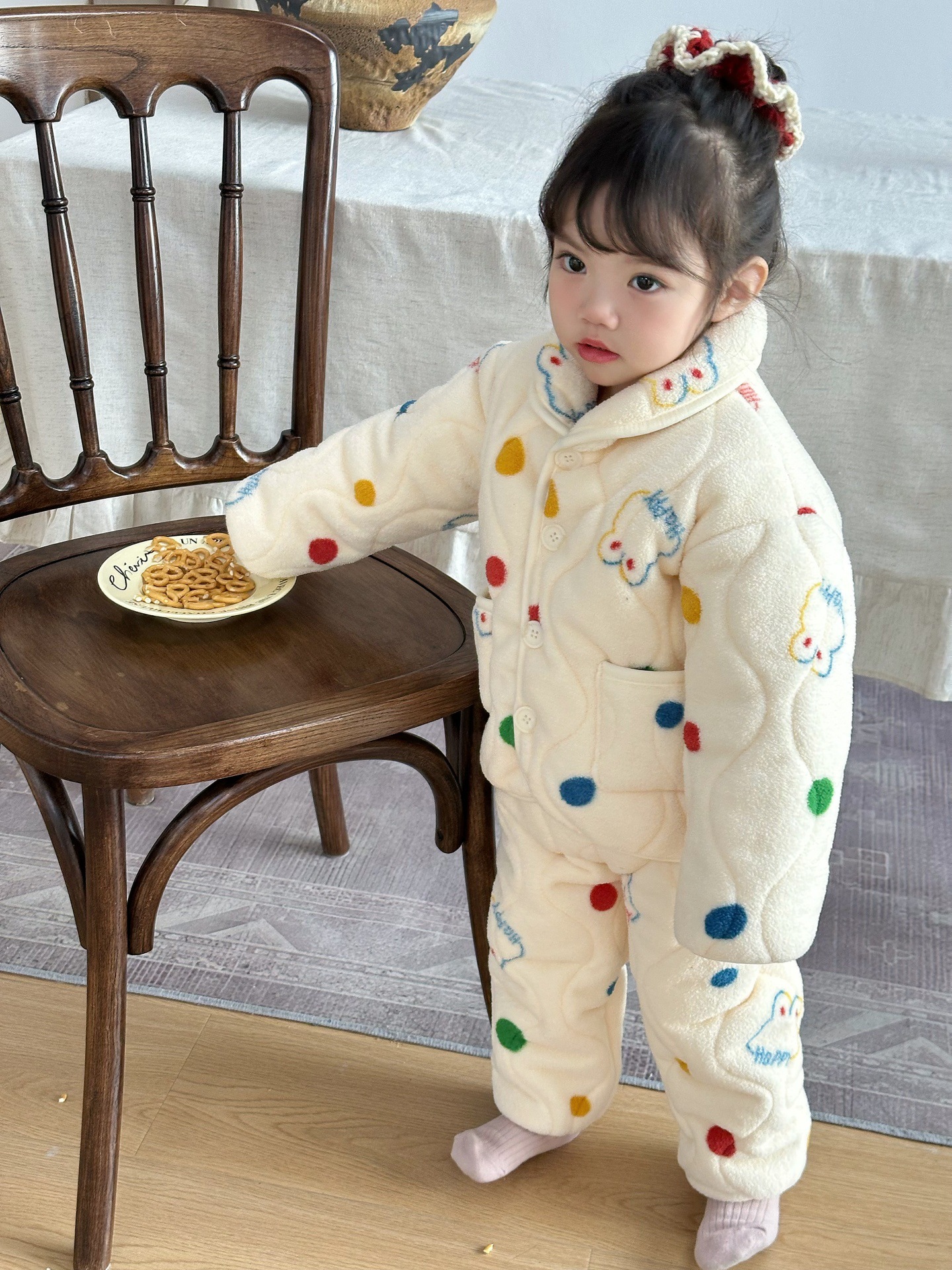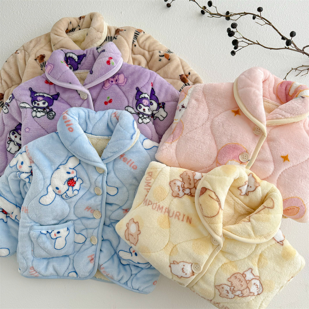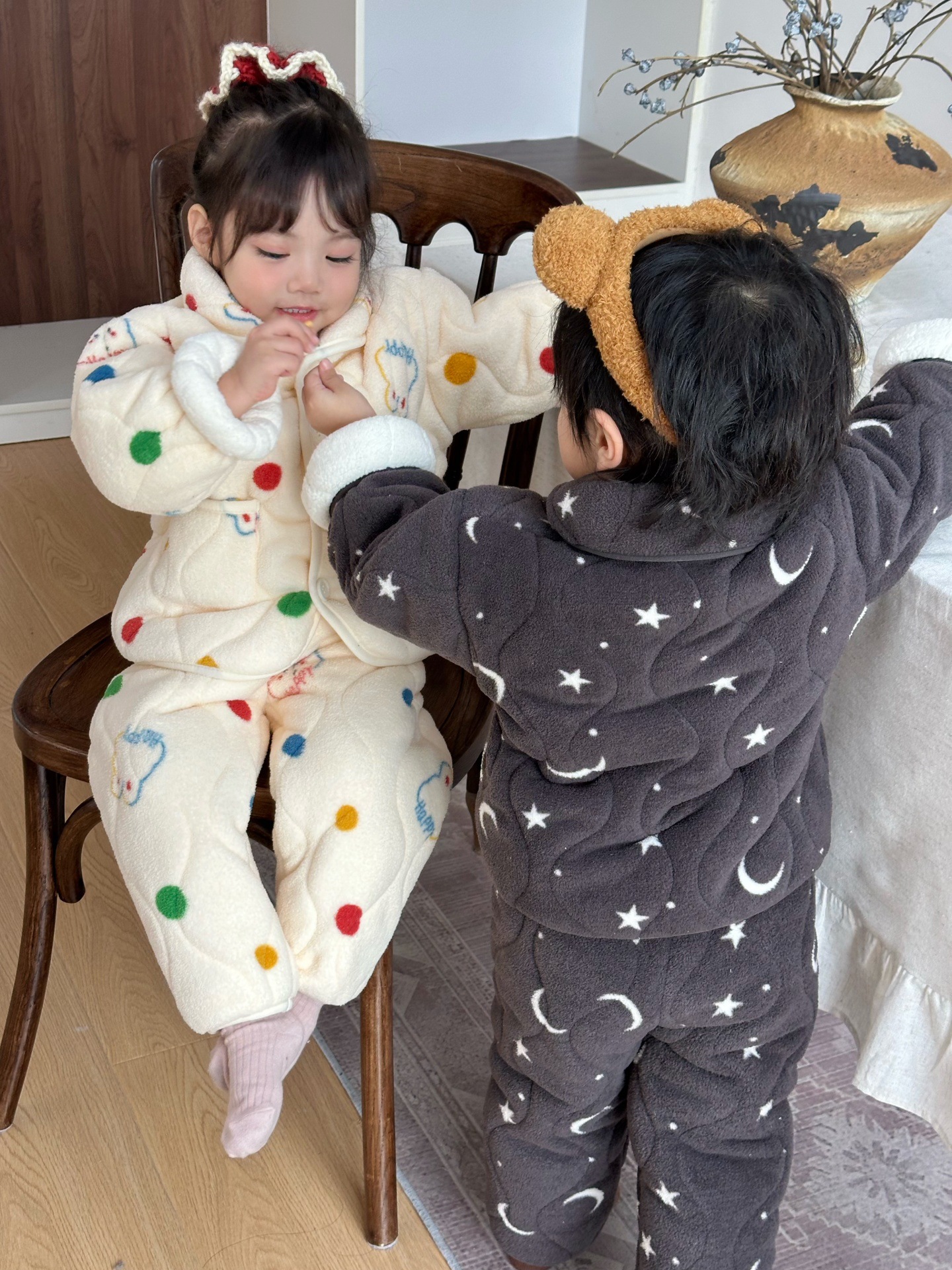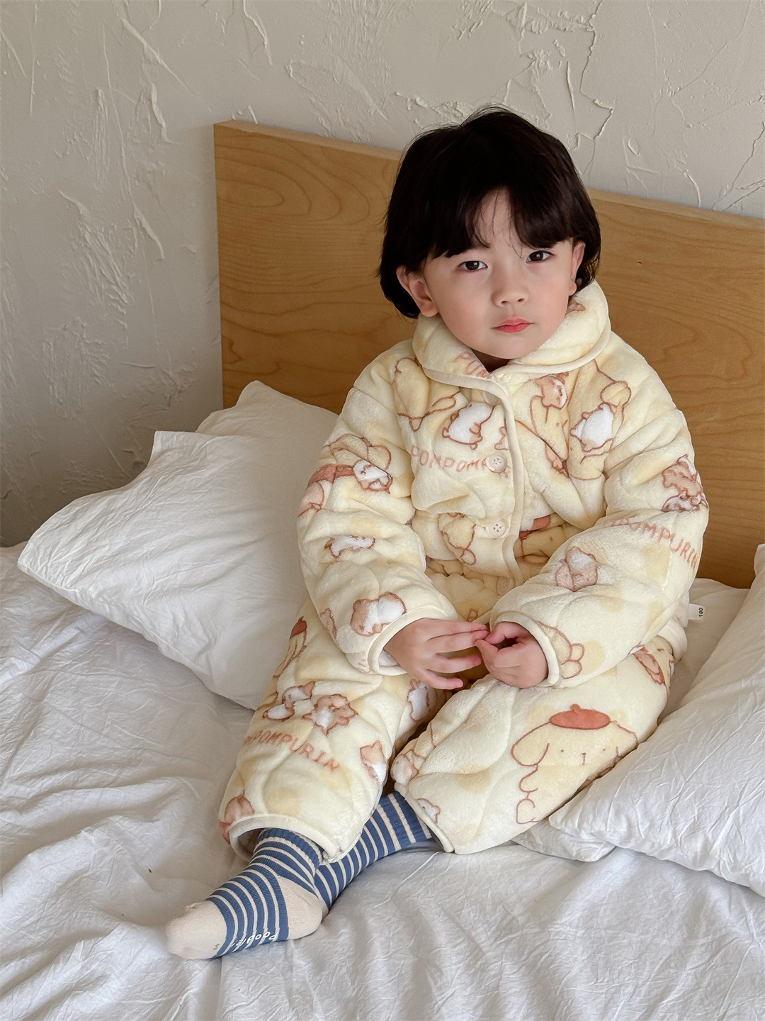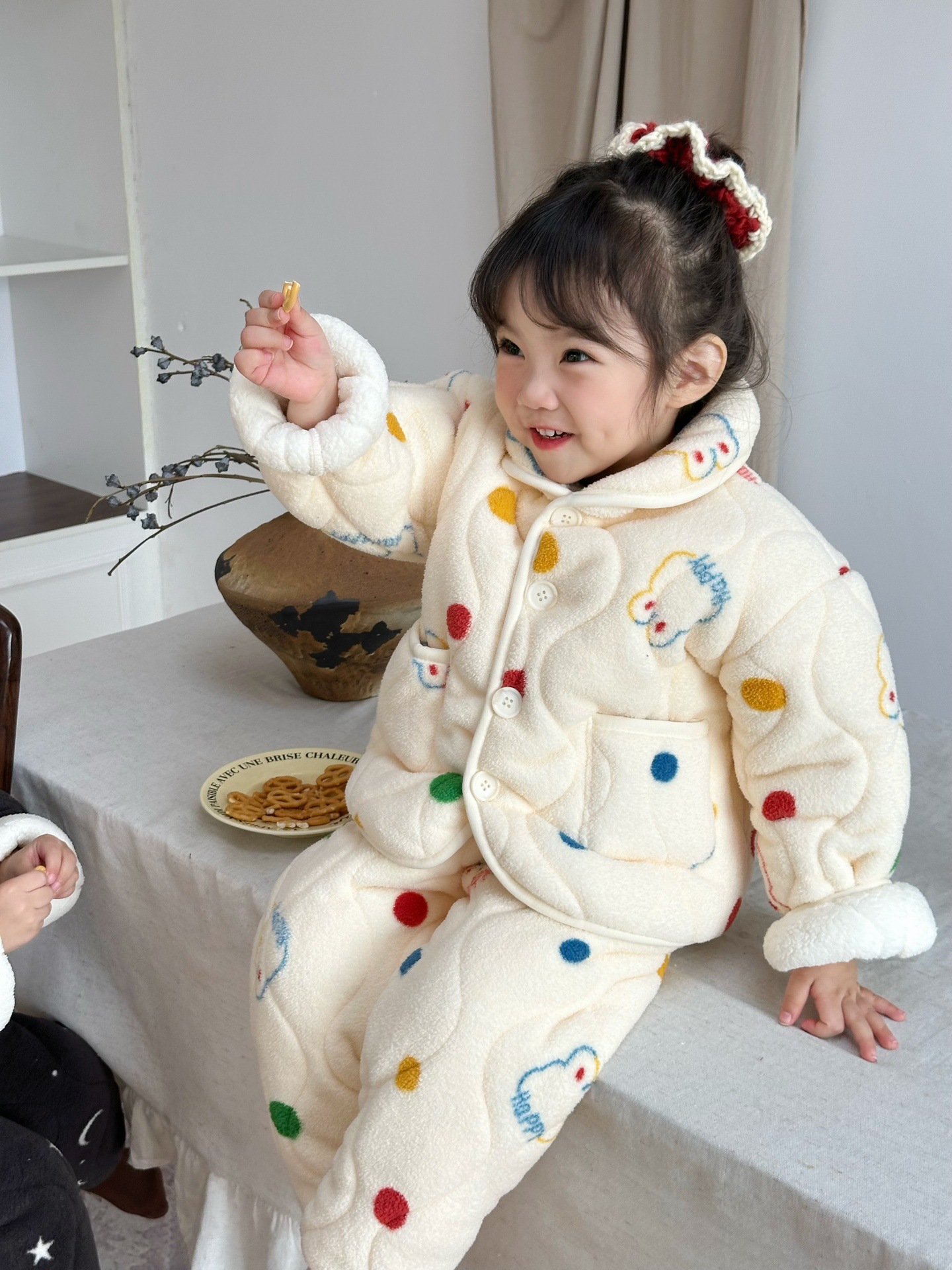 어린이와 소녀를 위한 3겹 누빔 잠옷, 두꺼운 따뜻한 플란넬 홈웨어 세트, 겨울용스토어 가기