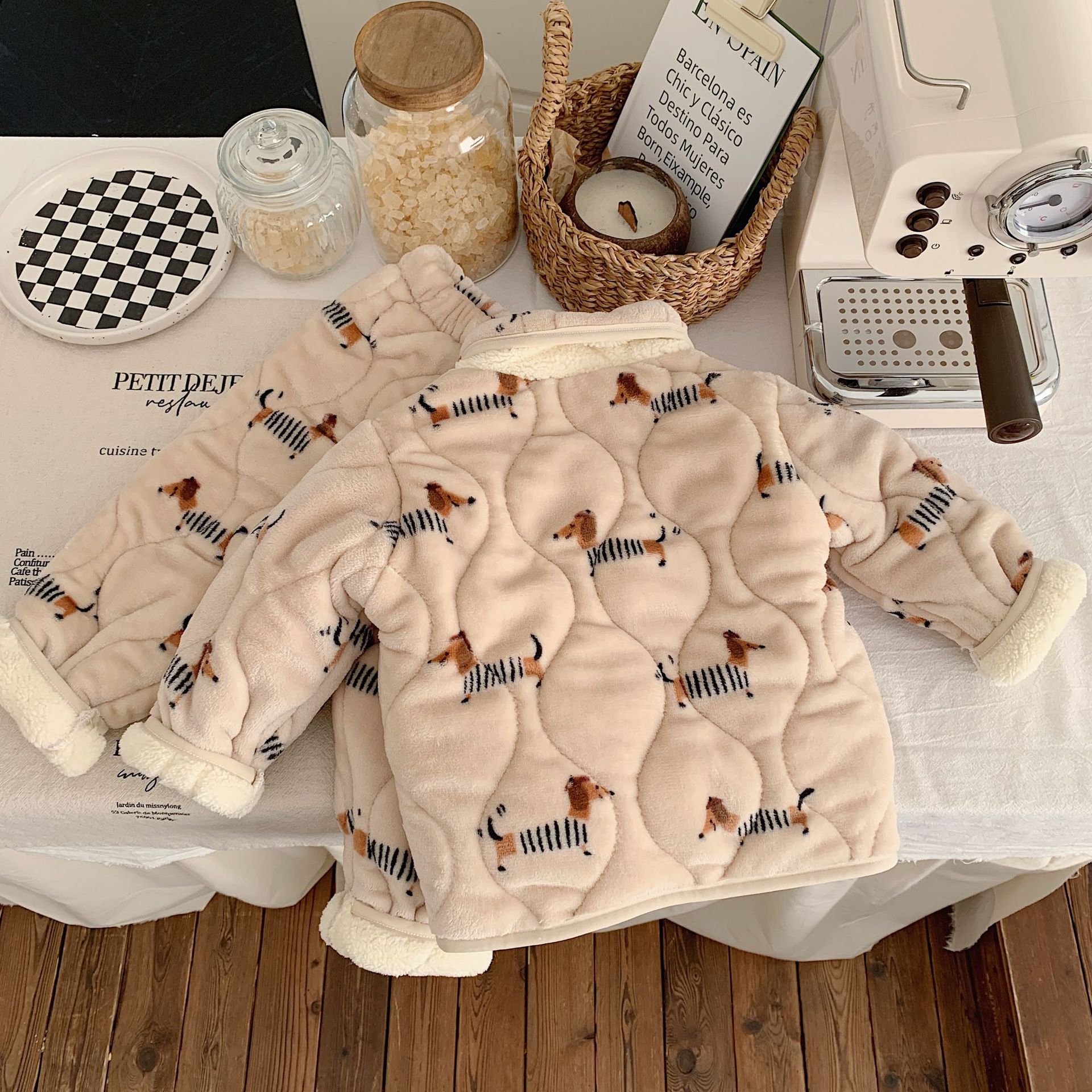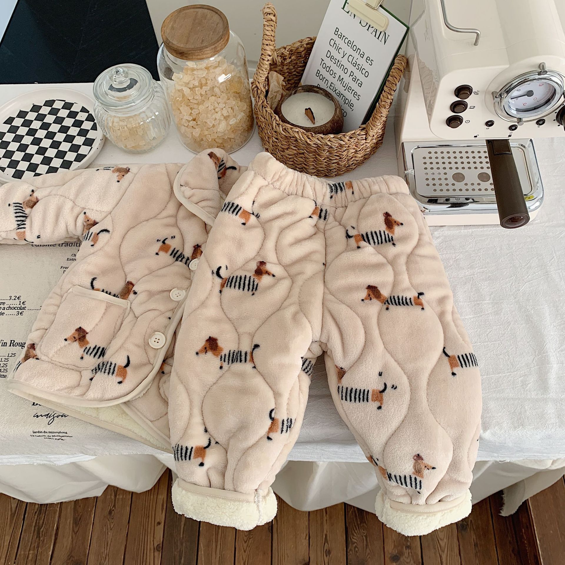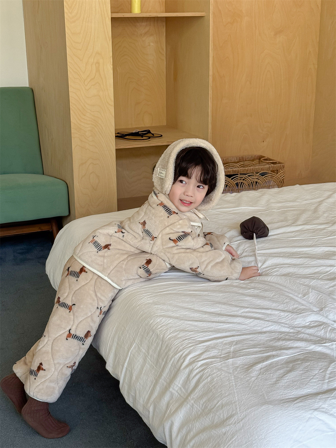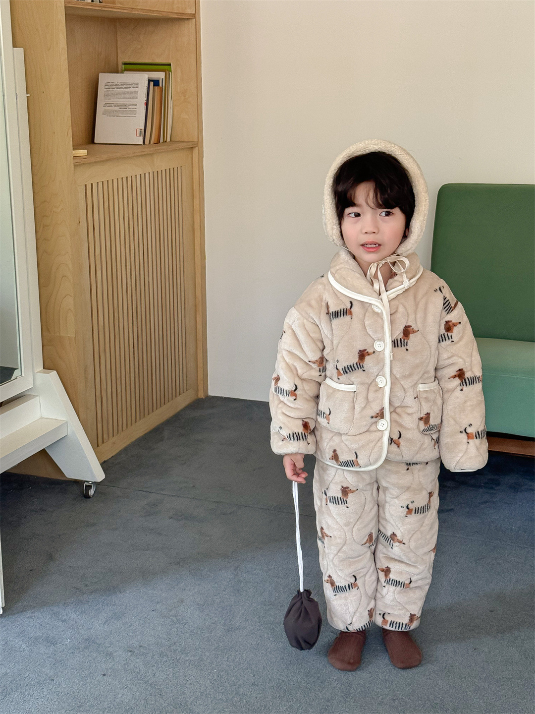 어린이와 소녀를 위한 3겹 누빔 잠옷, 두꺼운 따뜻한 플란넬 홈웨어 세트, 겨울용스토어 가기