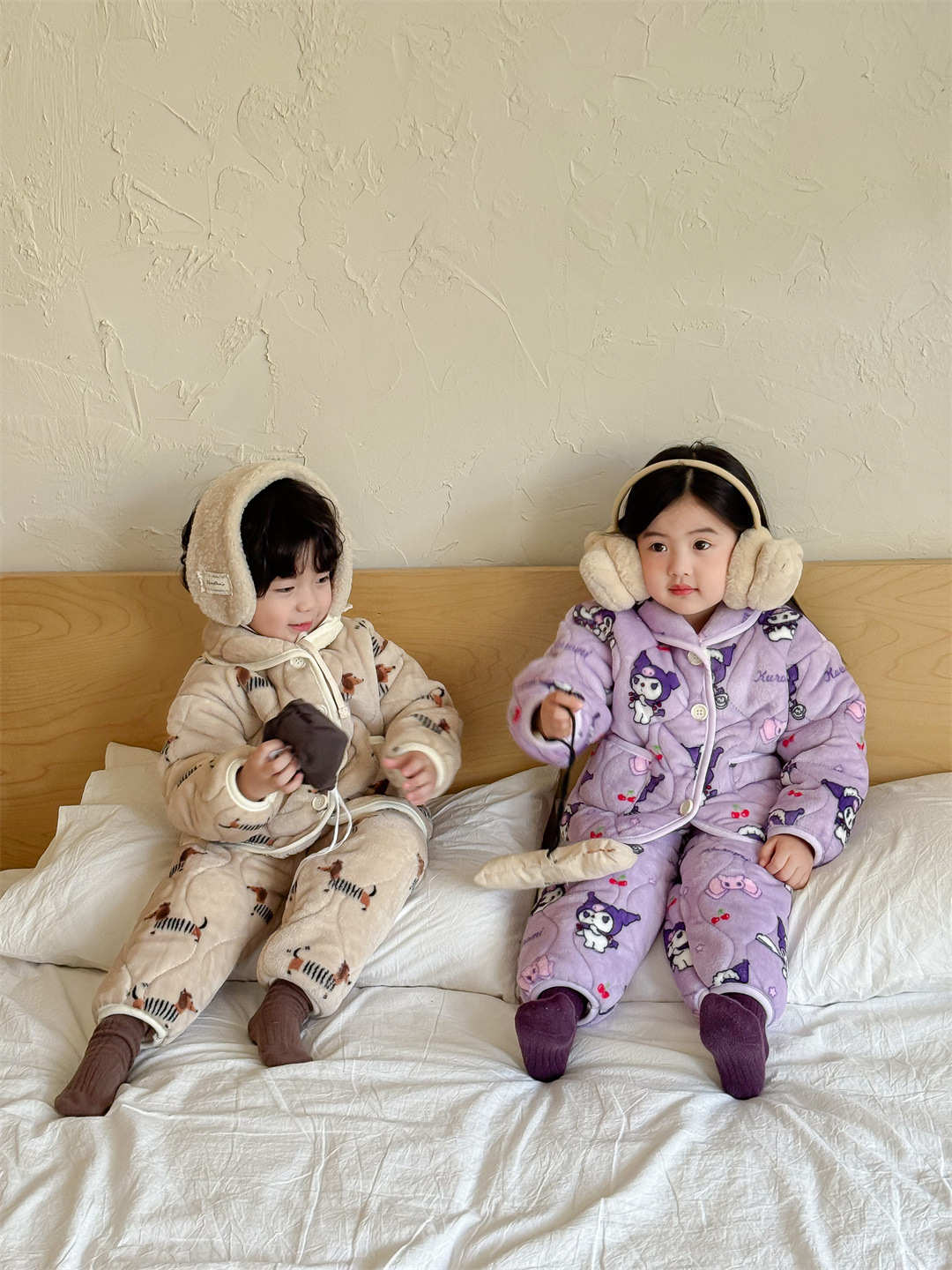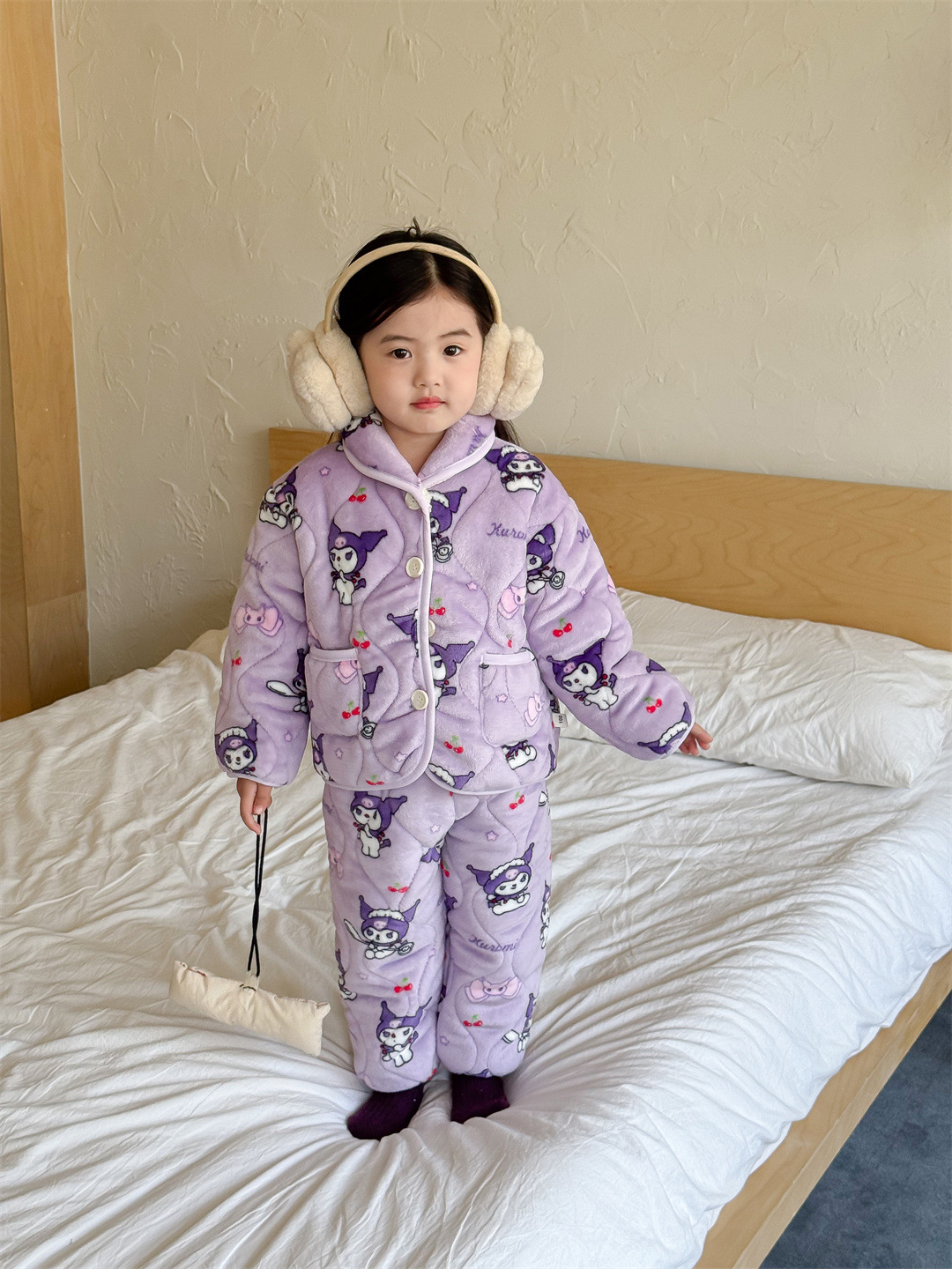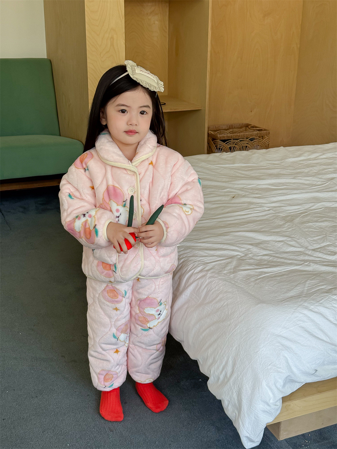 어린이와 소녀를 위한 3겹 누빔 잠옷, 두꺼운 따뜻한 플란넬 홈웨어 세트, 겨울용