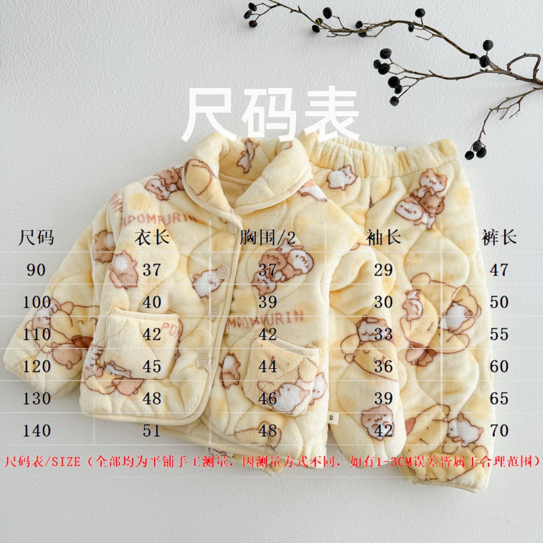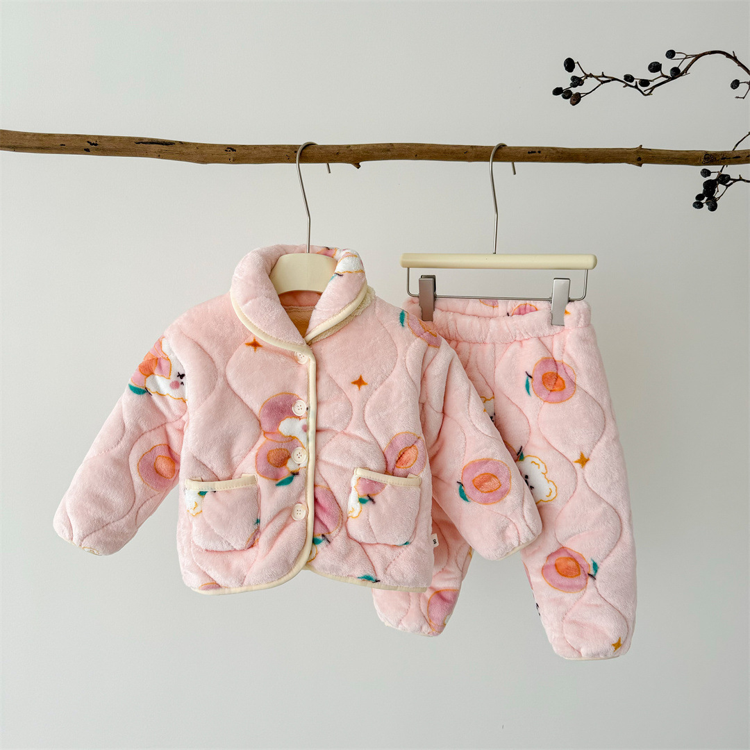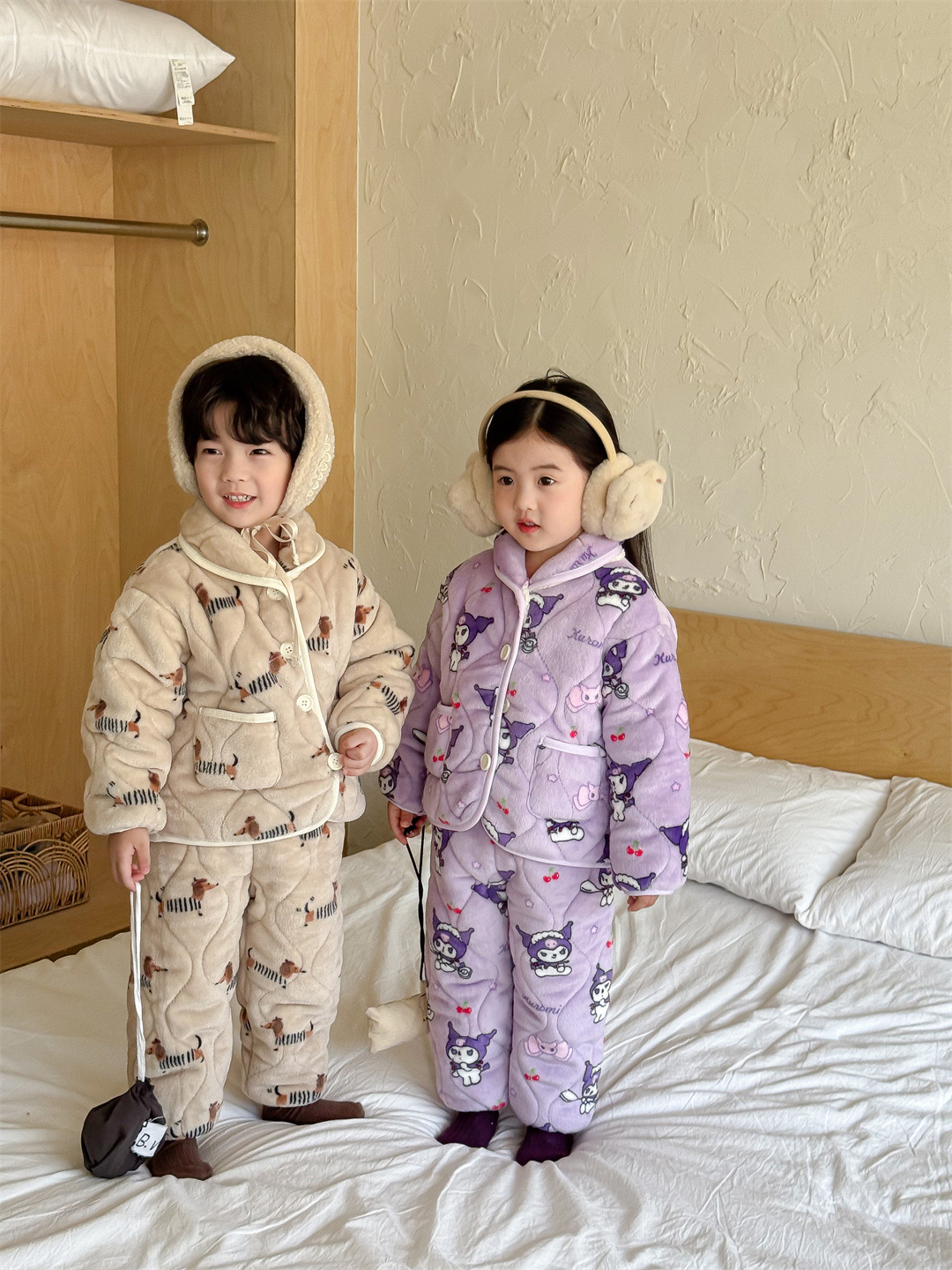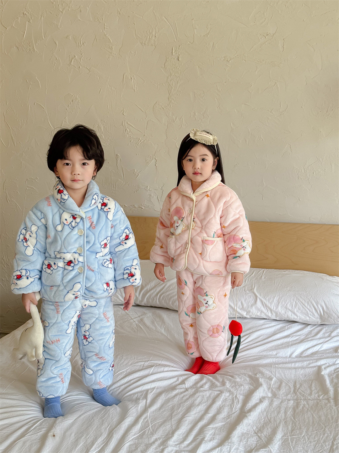 어린이와 소녀를 위한 3겹 누빔 잠옷, 두꺼운 따뜻한 플란넬 홈웨어 세트, 겨울용