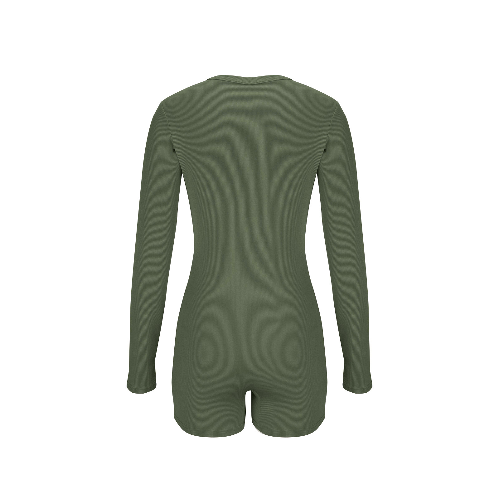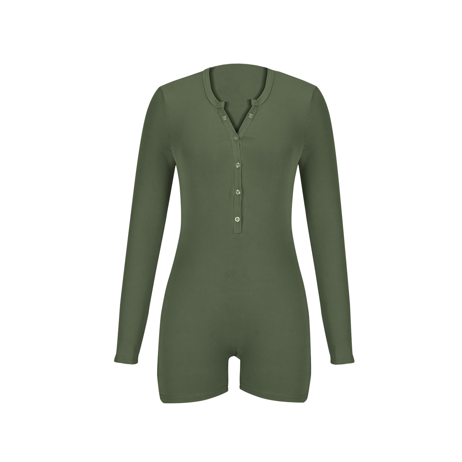 아마존 2024 유럽과 미국의 가을 새로운 여성 타이트 원피스 반바지 단색 캐주얼 탑 긴 소매 V-neck