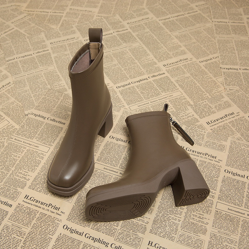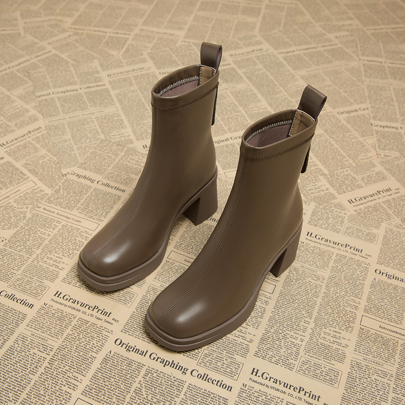 7129-1 마틴 부츠 여성용 2025 가을 겨울 신상품 앵클 부츠 하이힐 슬림 부츠 카키색 숏부츠