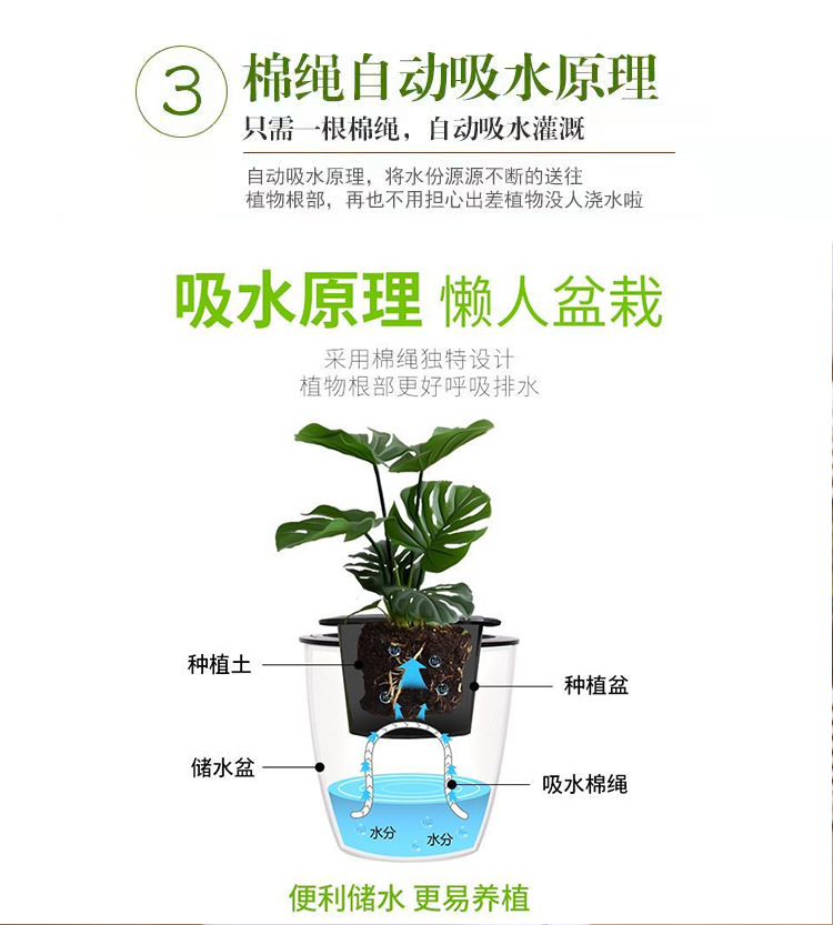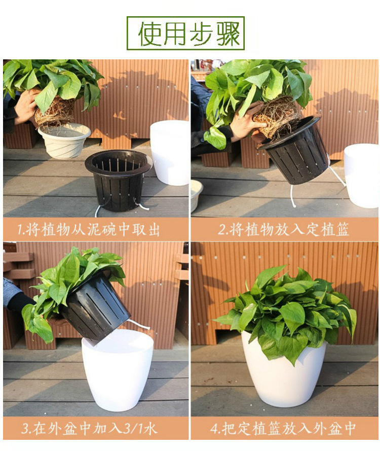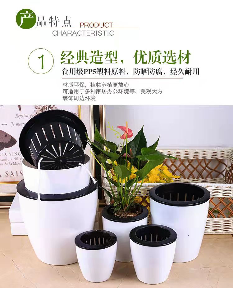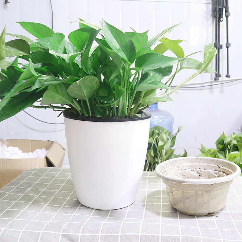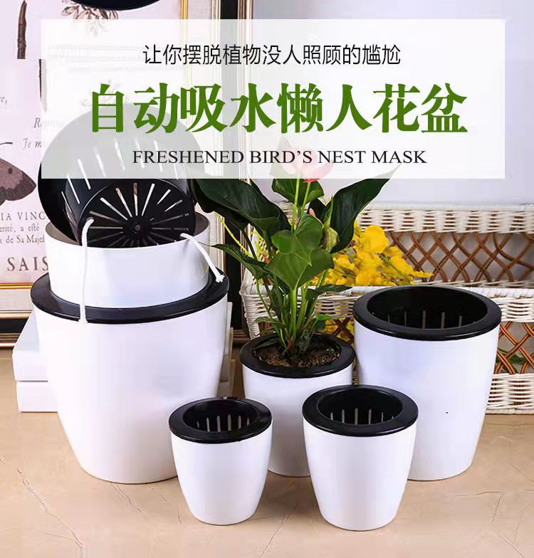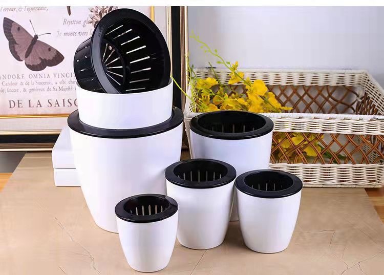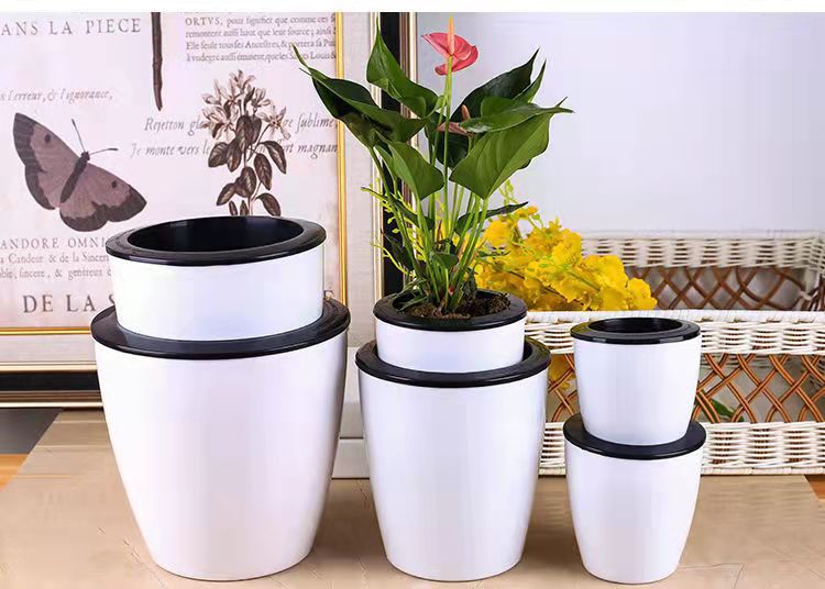 게으른 화분 자동 흡수성 녹색 무 꽃 냄비 물 저장 분지 수경 냄비 물없는 플라스틱 모방 세라믹 둥근 분지스토어 가기