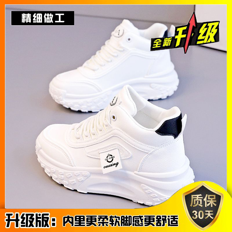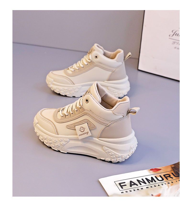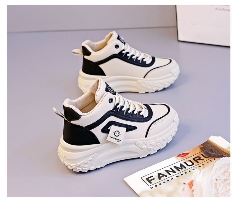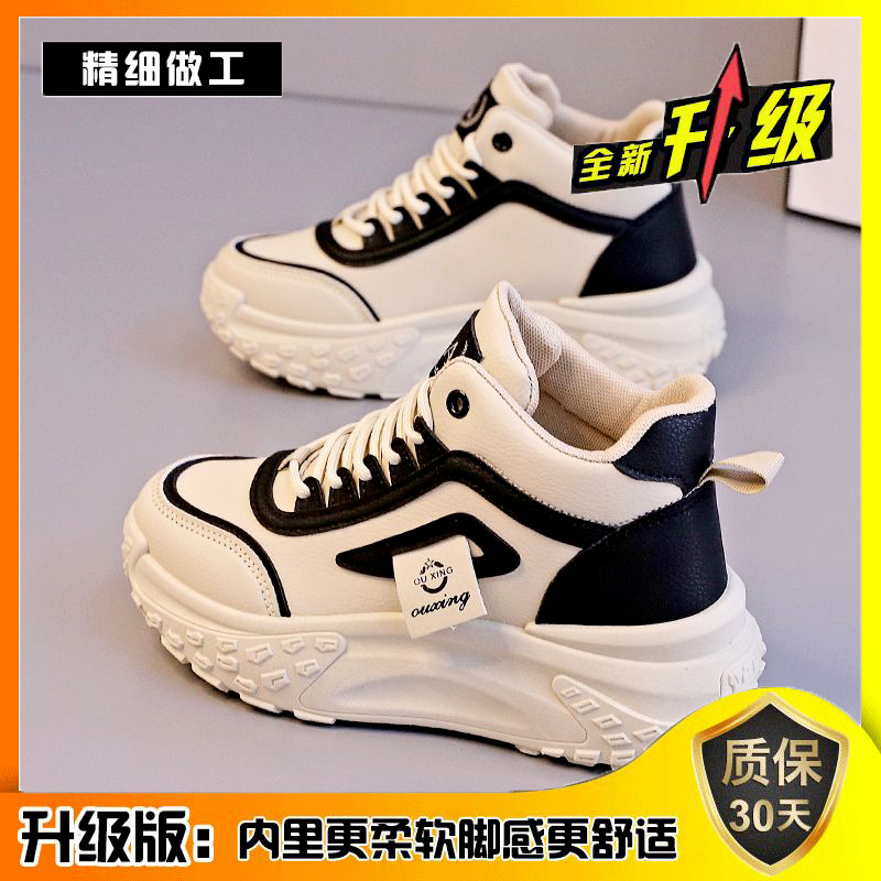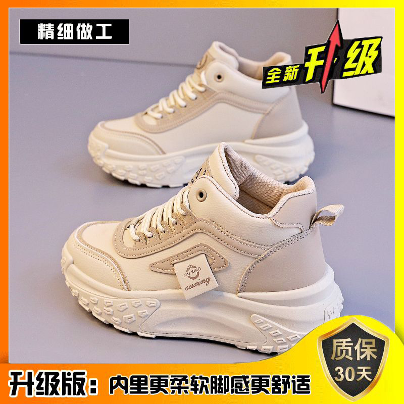 두꺼운 밑창 하이 탑 가죽 신발 유행 올 매치 봄과 가을 아빠 신발 2024 학생 스포츠 캐주얼 신발스토어 가기