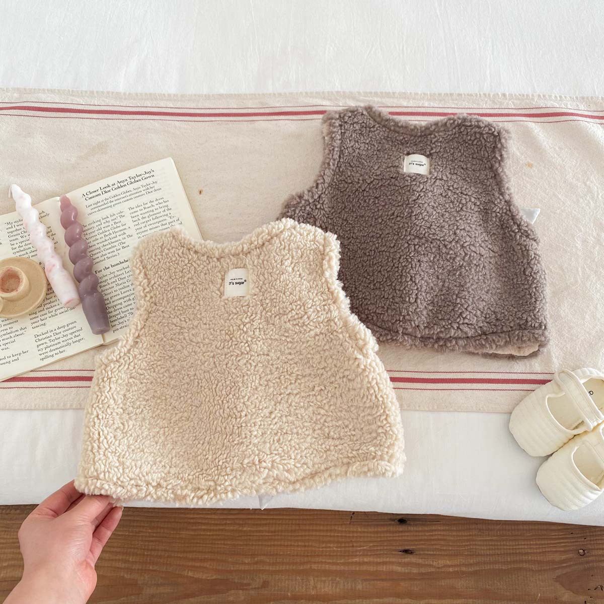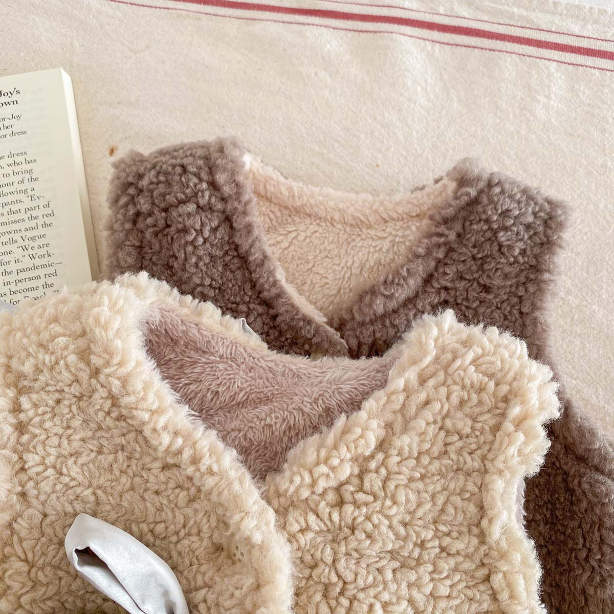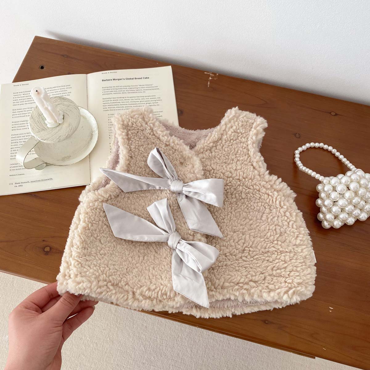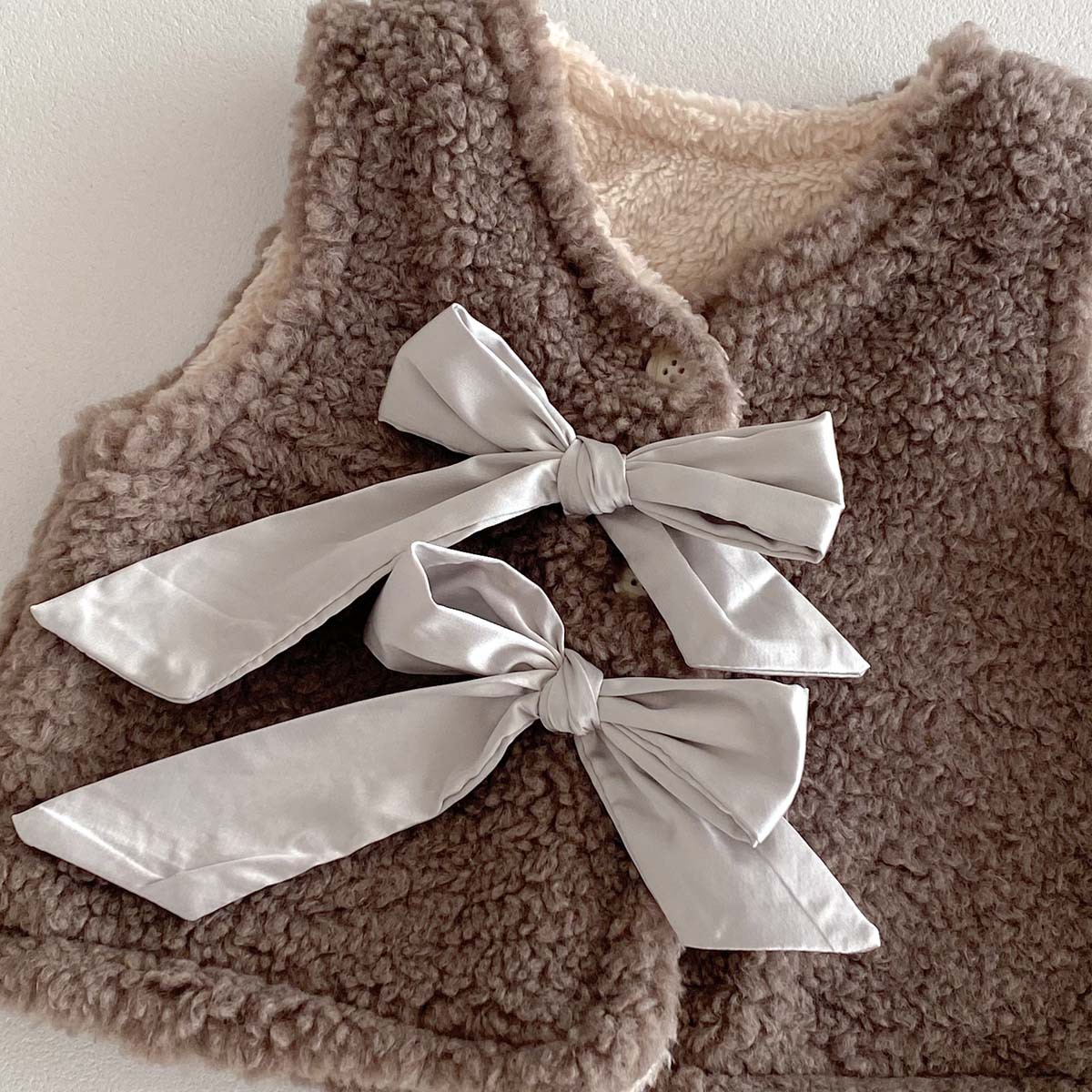 ins 한국판 가을 겨울 양면 벨벳 보온 조끼 여아용 플러스 벨벳 리본 두꺼운 양털 조끼 중소형 아동용