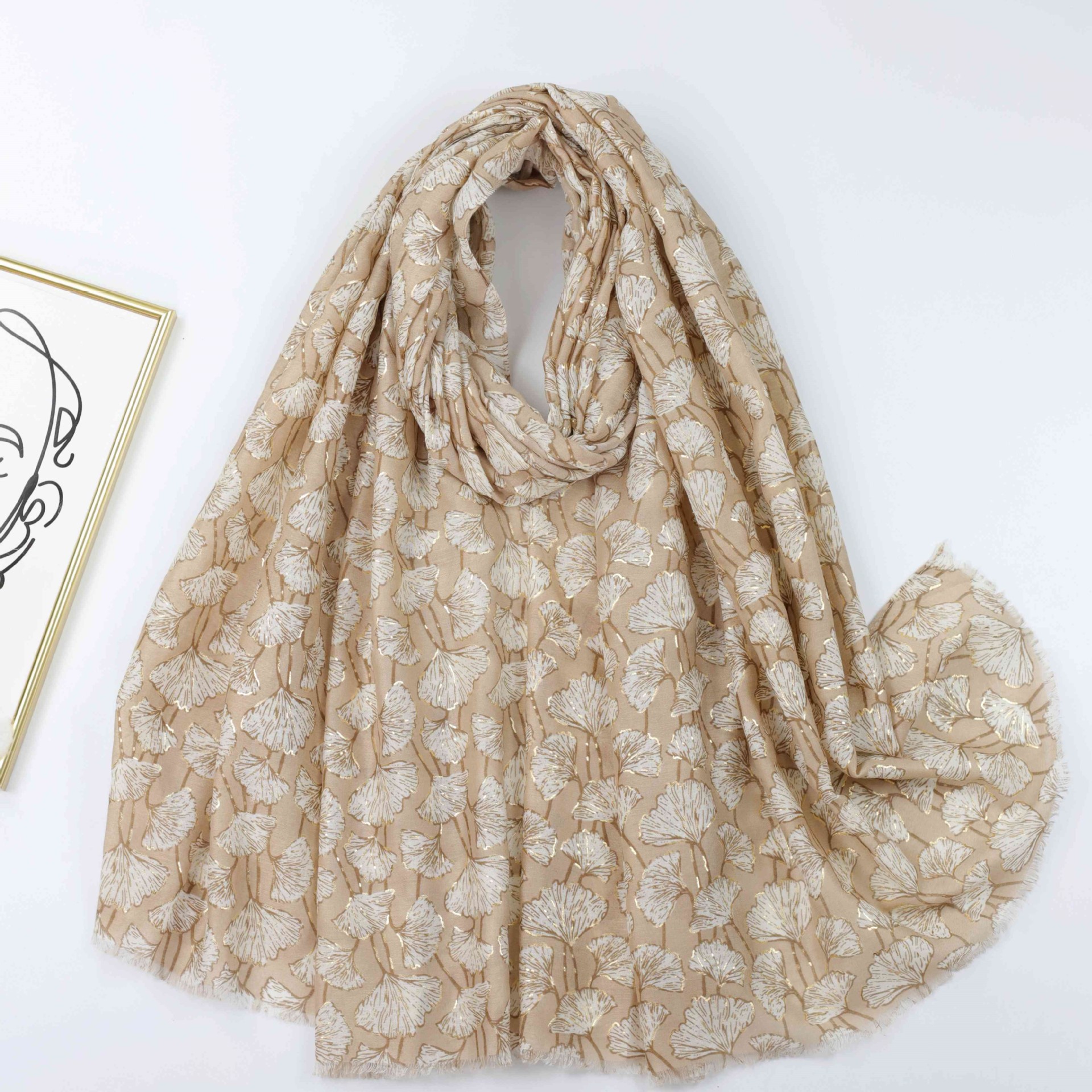 공장 판매 대외 무역 국경 청동 바람 은행가 잎 새틴 인쇄 긴 수건 여행 휴일 선 스크린 따뜻한 목도리스토어 가기