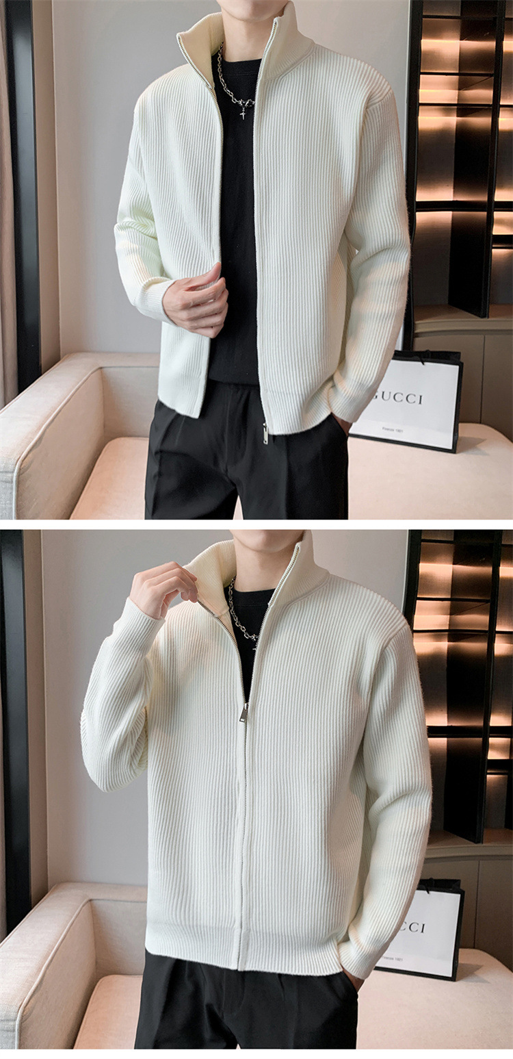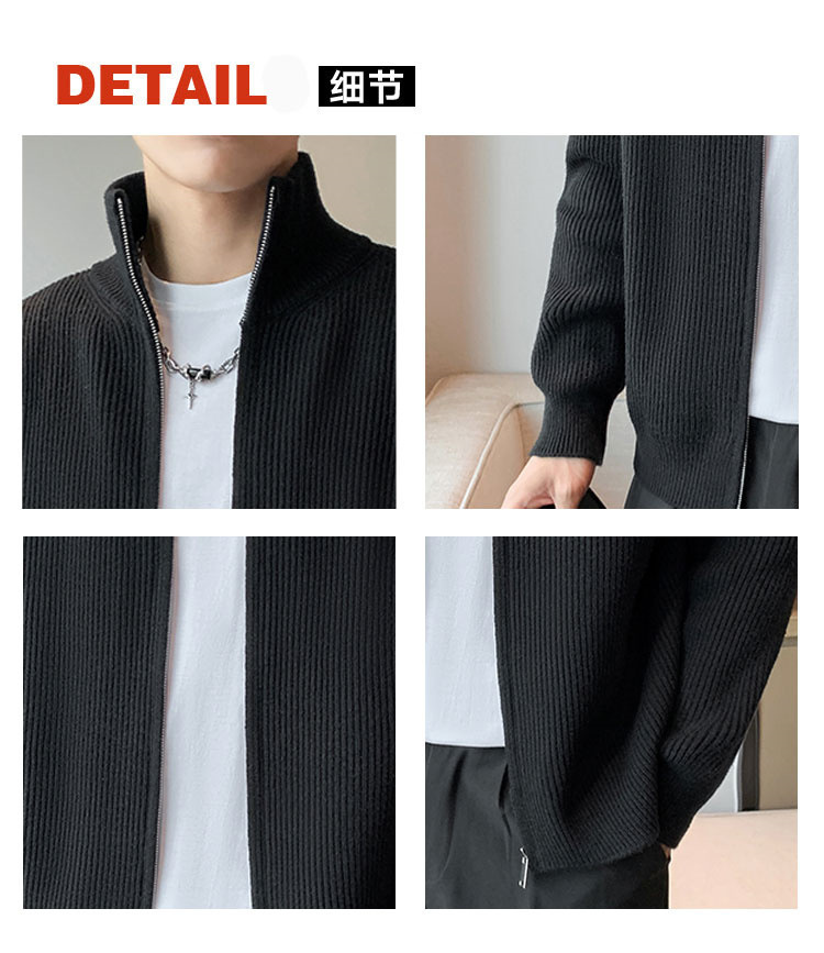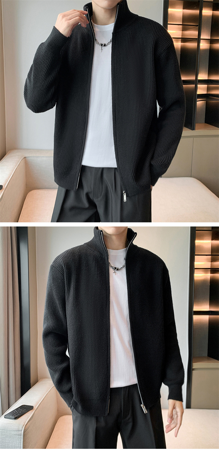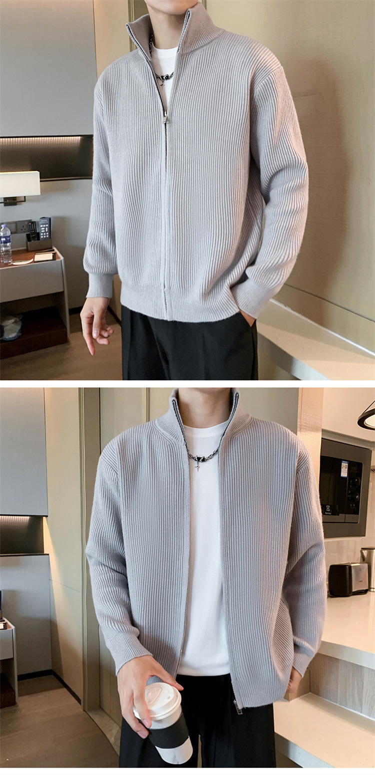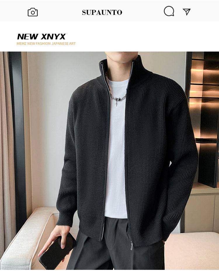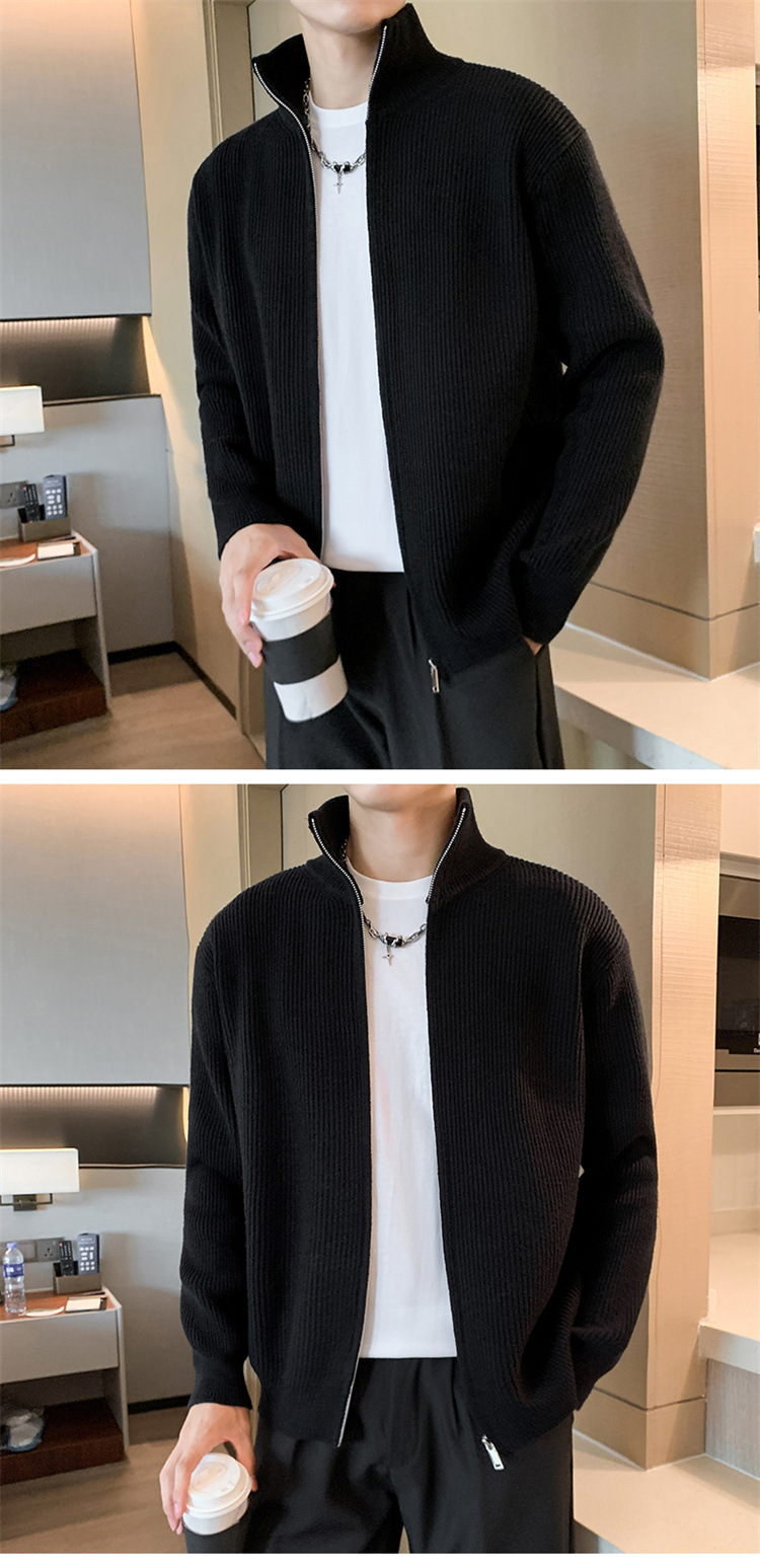 가을과 겨울 스웨터 스탠드 칼라 카디건 코트 남성 하라주쿠 스타일, 트렌디 한 니트웨어 단색 캐주얼 심플 재킷