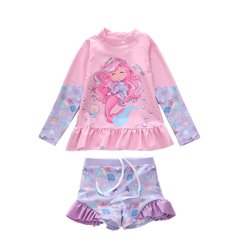 새로운 어린이 수영복 소녀 분할 소형, 중형 및 대형 어린이 입체 연꽃 잎 공주 수영복 아기 소녀 수영복