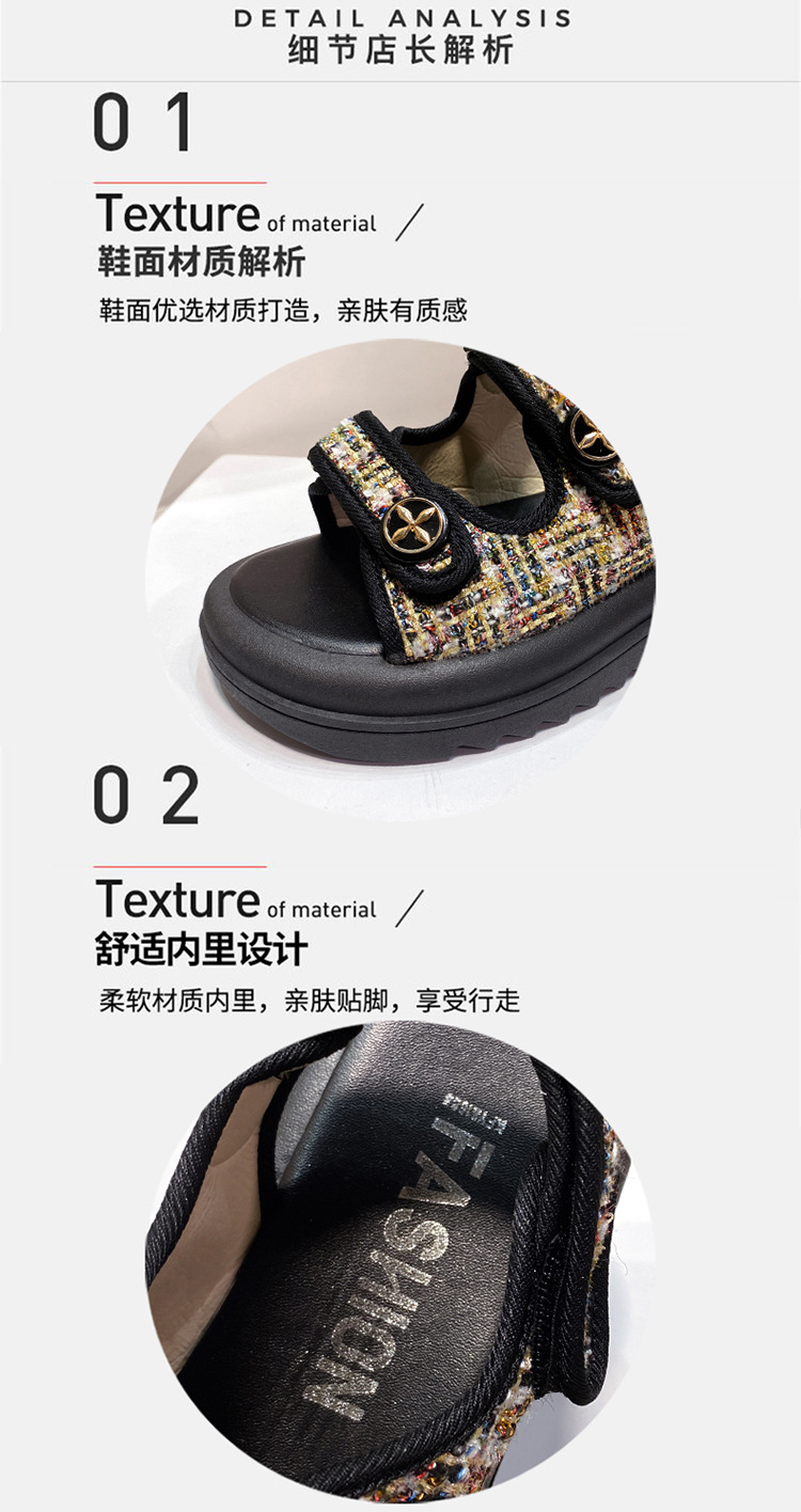 여성을위한 샤넬 스타일 스포츠 샌들 2024 여름 새로운 플랫폼 패션 플랫폼 높이 증가 올 매치 비치 캐주얼 신발스토어 가기
