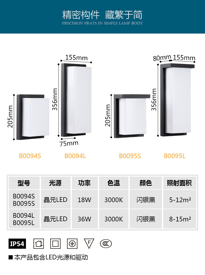 • B0095S 매트 블랙 24W 중립 빛 220V