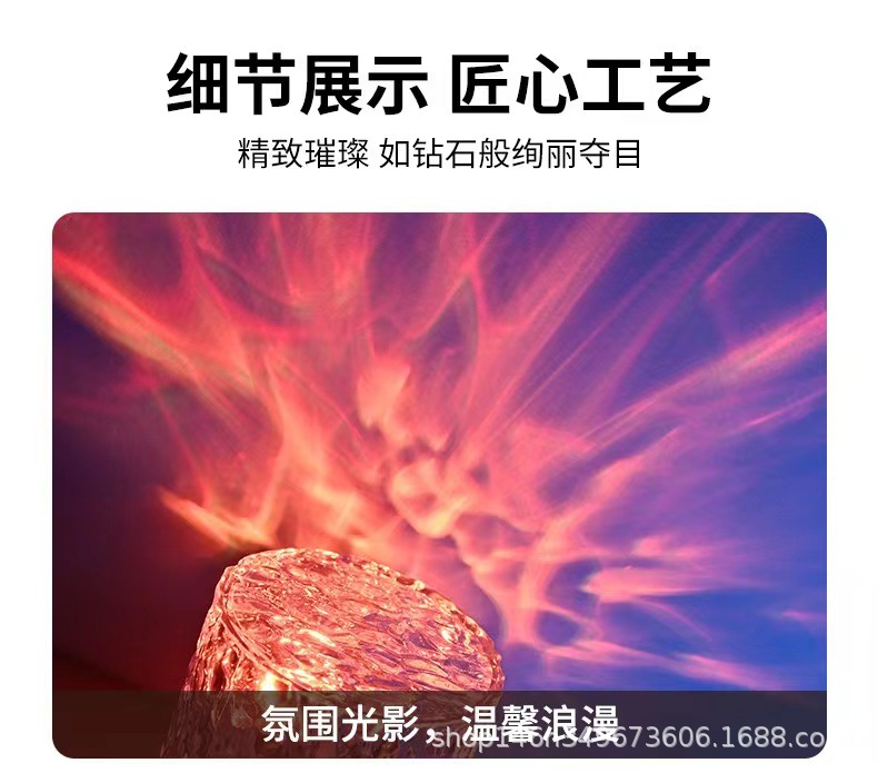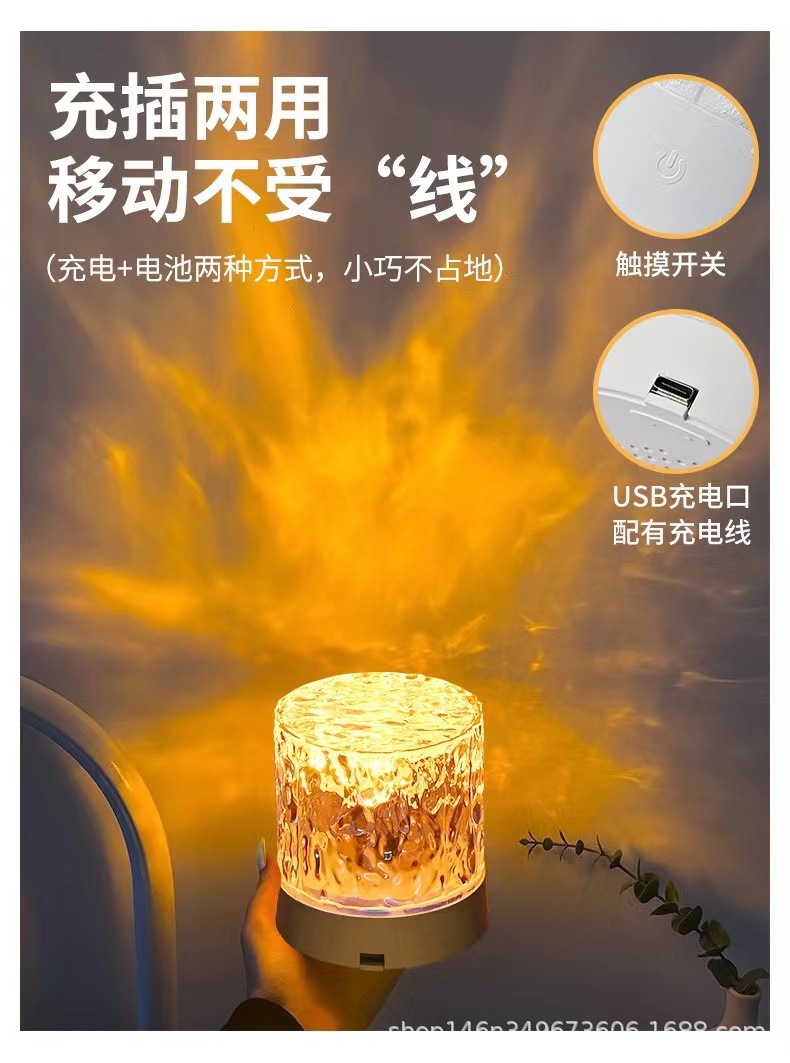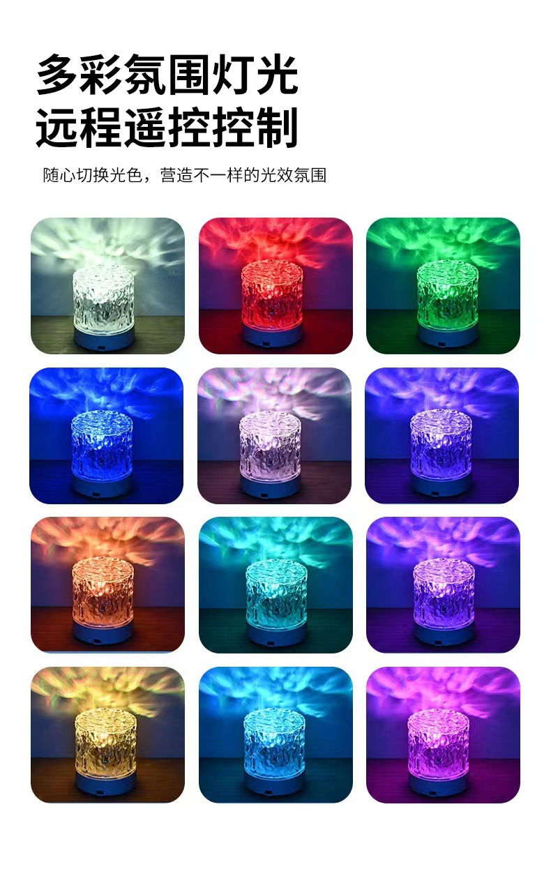 공장 직접 공급 인터넷 유명 인사 물 리플 라이트 다채로운 led 야간 조명 USB 회전 분위기 빛 에너지 절약 침대 옆 크리스탈 라이트