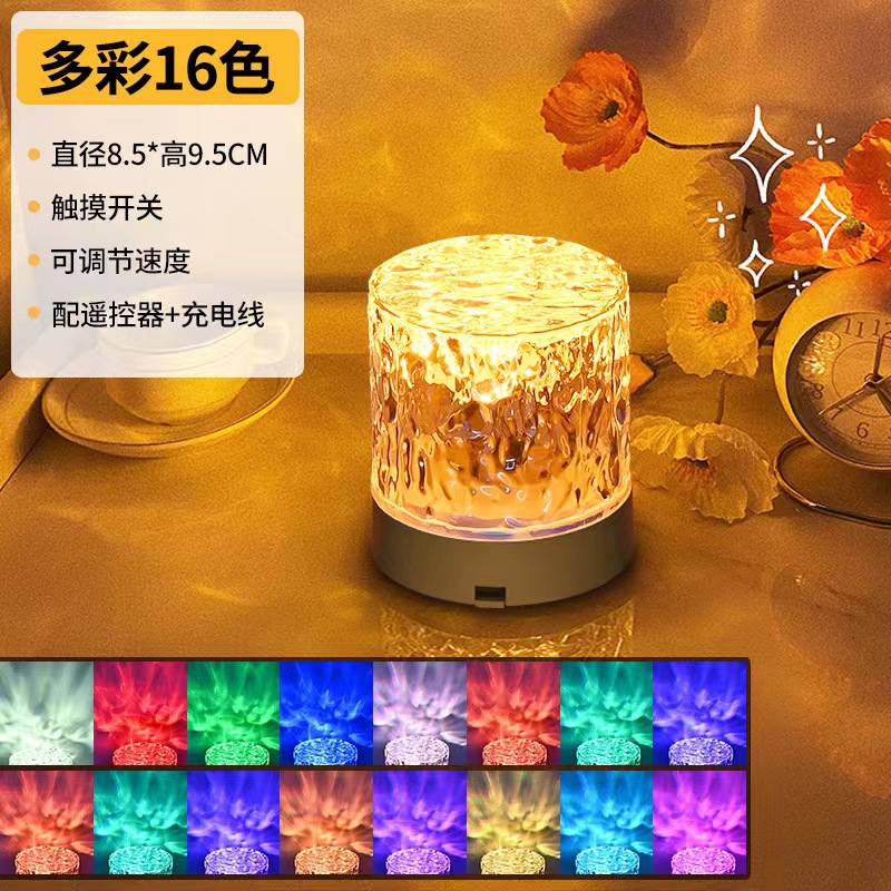 공장 직접 공급 인터넷 유명 인사 물 리플 라이트 다채로운 led 야간 조명 USB 회전 분위기 빛 에너지 절약 침대 옆 크리스탈 라이트스토어 가기