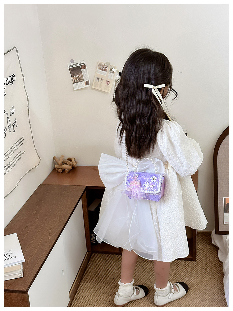2024 년 새해 어린이 만화 샤넬 스타일 어깨 가방 유행 외국 스타일 공주 여성의 휴대용 한국 스타일 크로스 바디 백