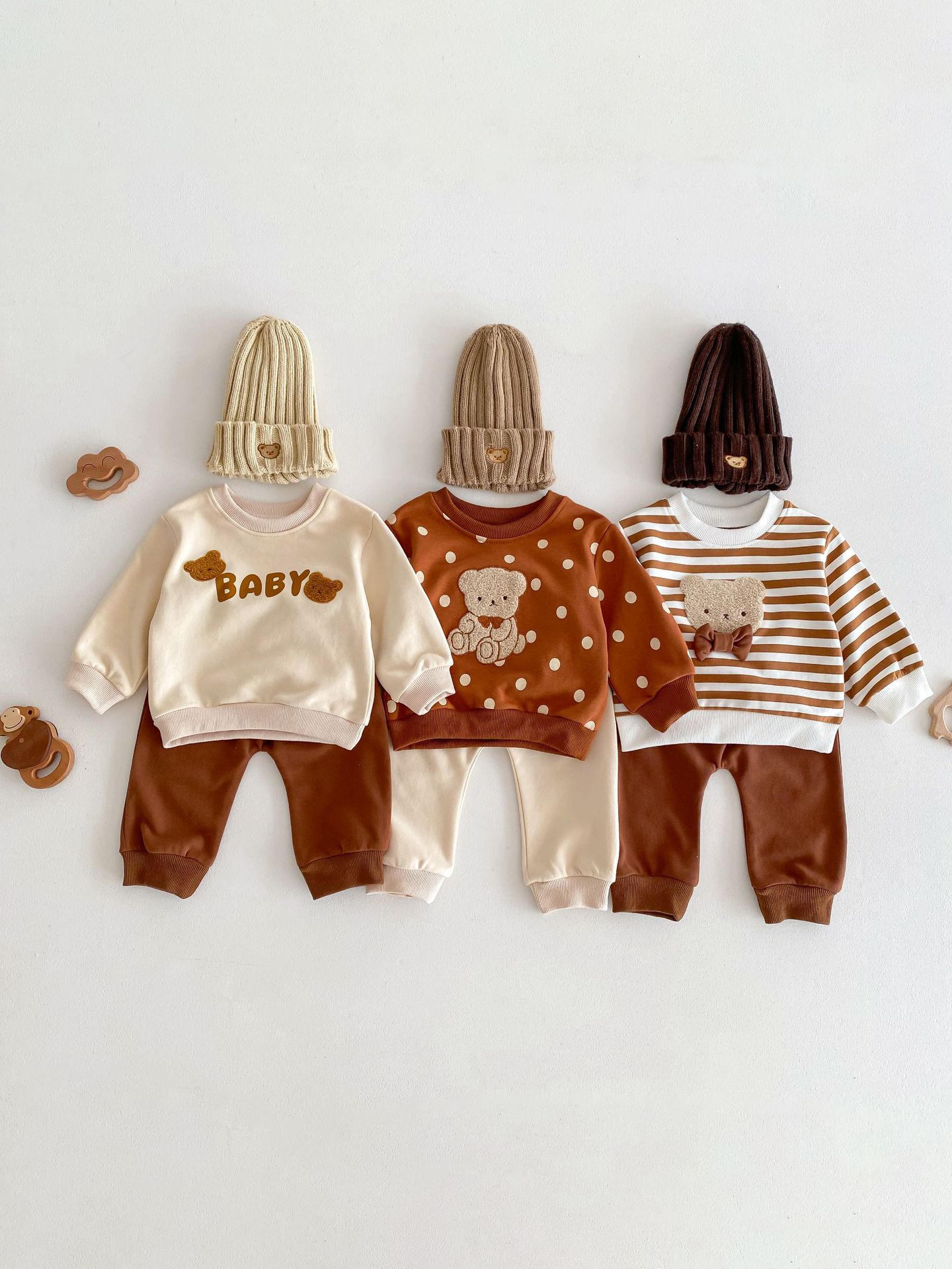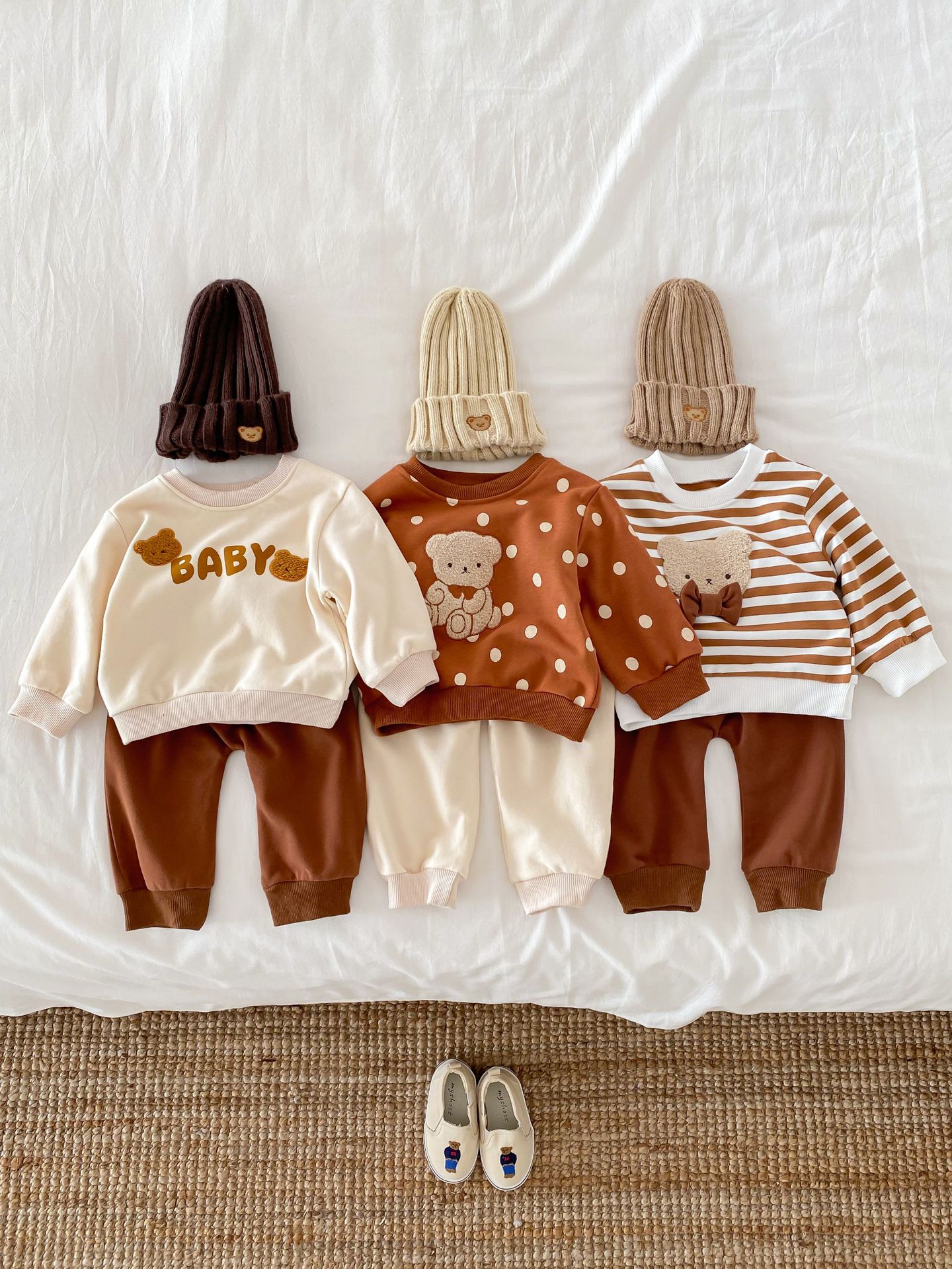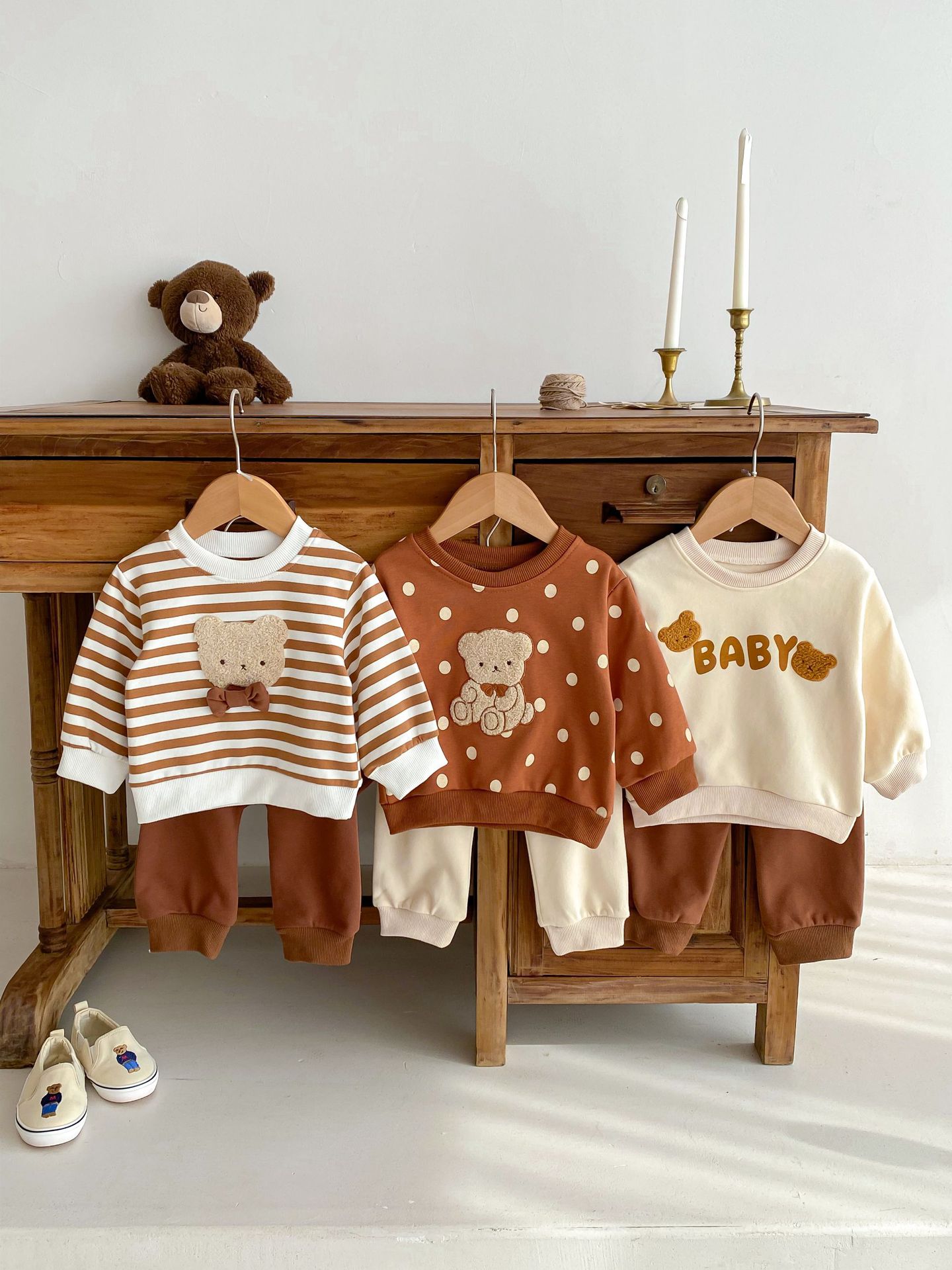 Ins 아기 옷 봄 소년과 소녀 아기 곰 세트 긴팔 스웨터 바지 투피스 세트 서양식 바깥 쪽스토어 가기