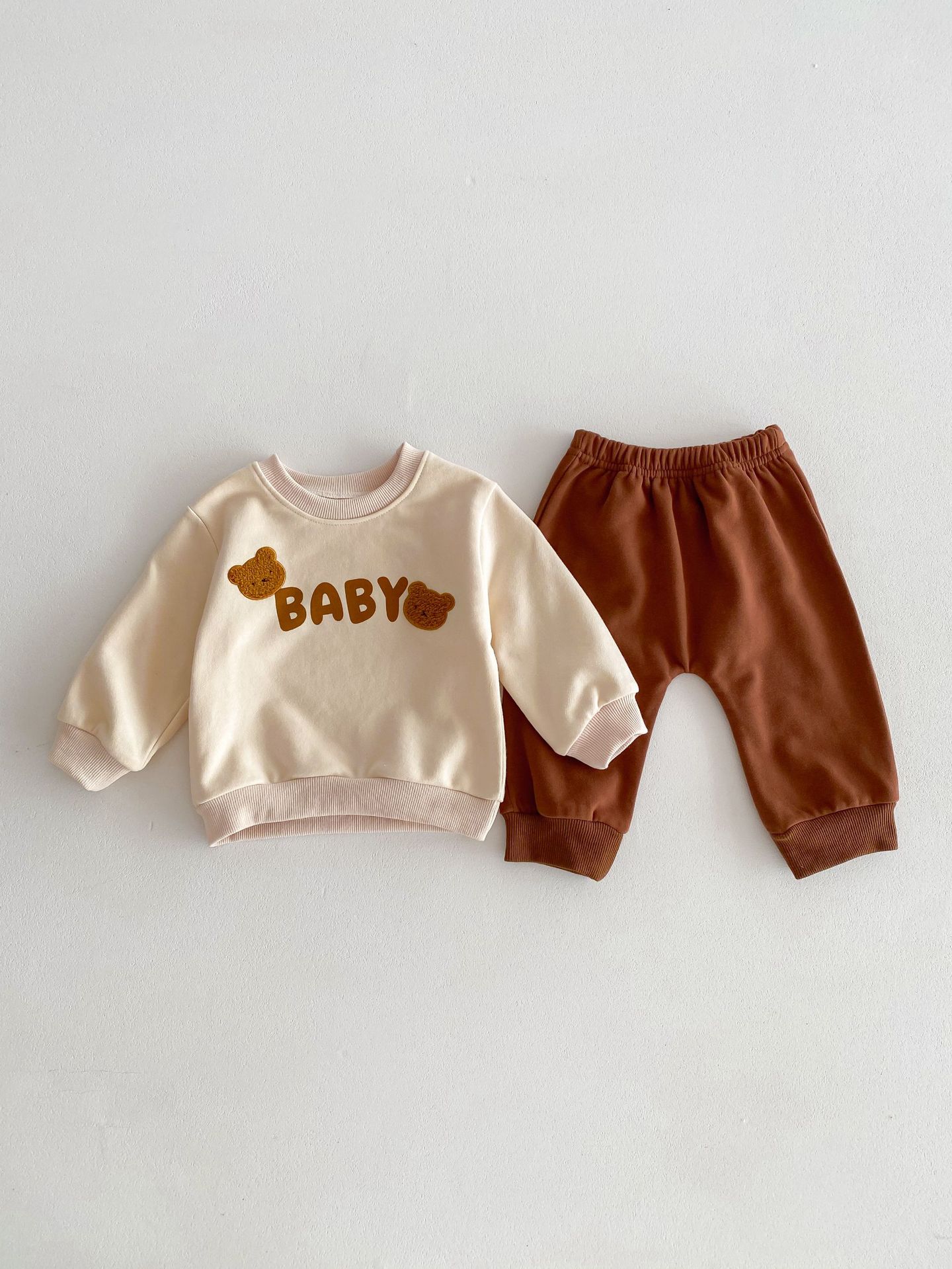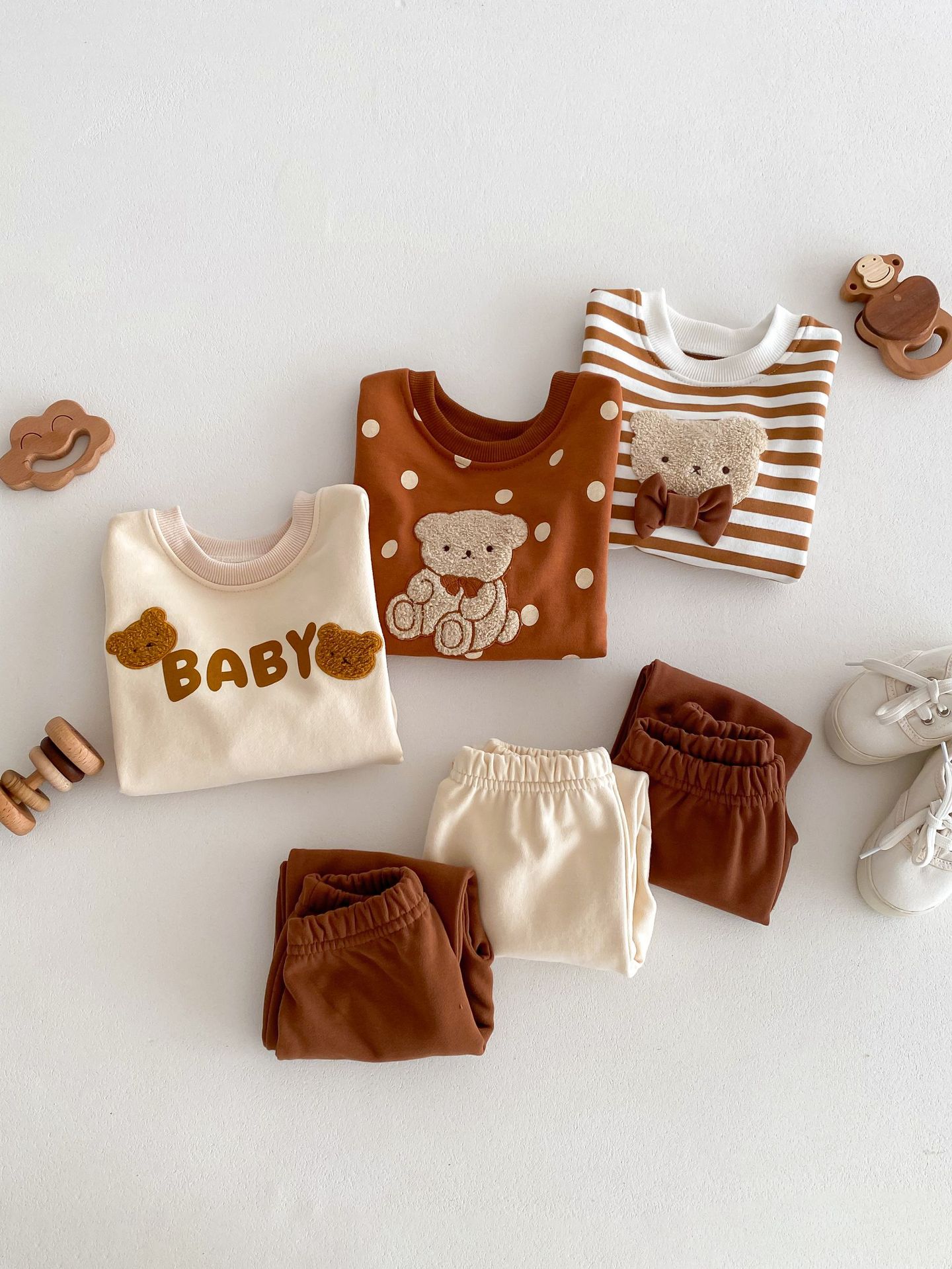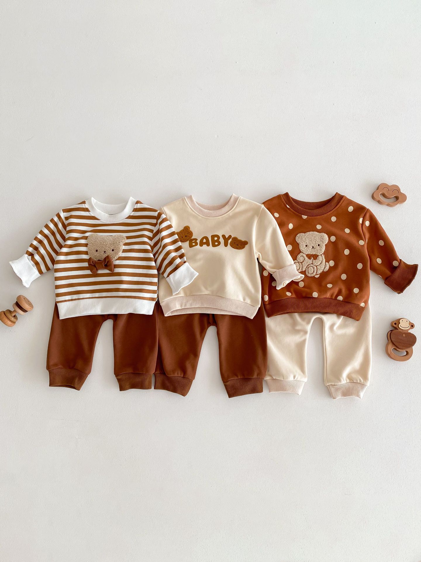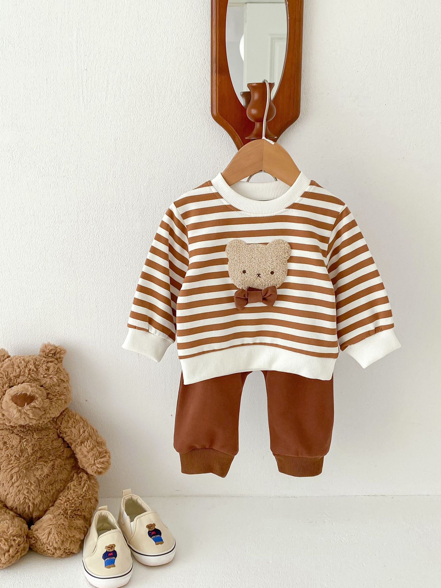 Ins 아기 옷 봄 소년과 소녀 아기 곰 세트 긴팔 스웨터 바지 투피스 세트 서양식 바깥 쪽스토어 가기