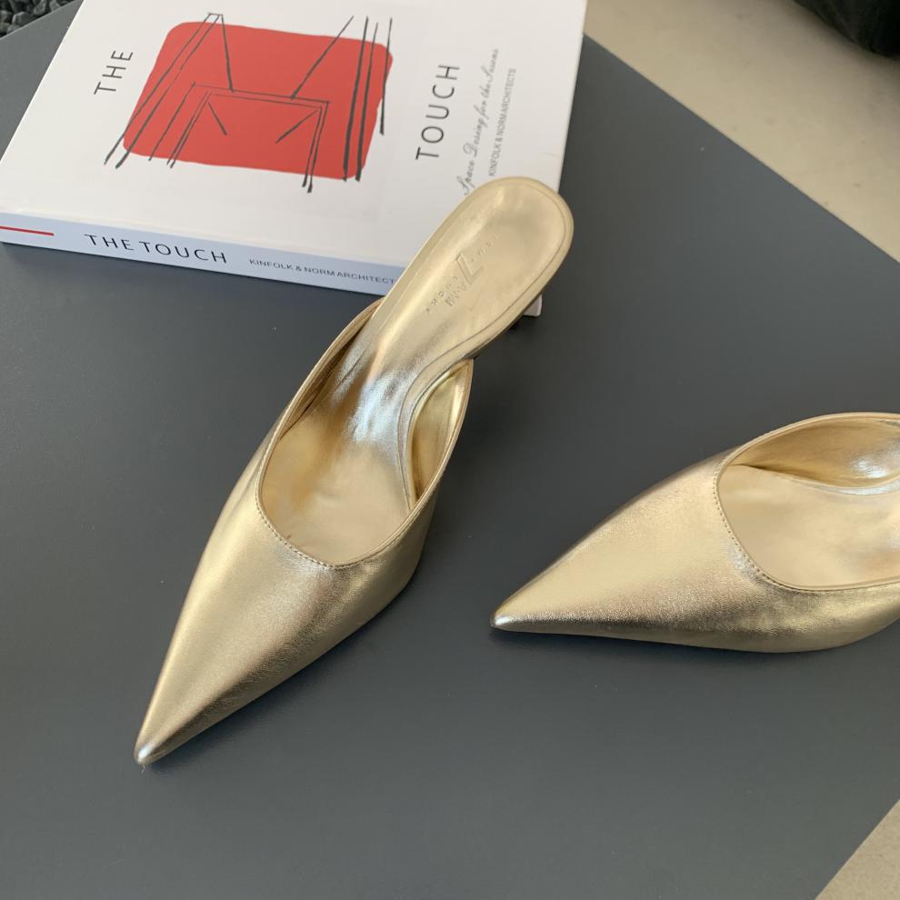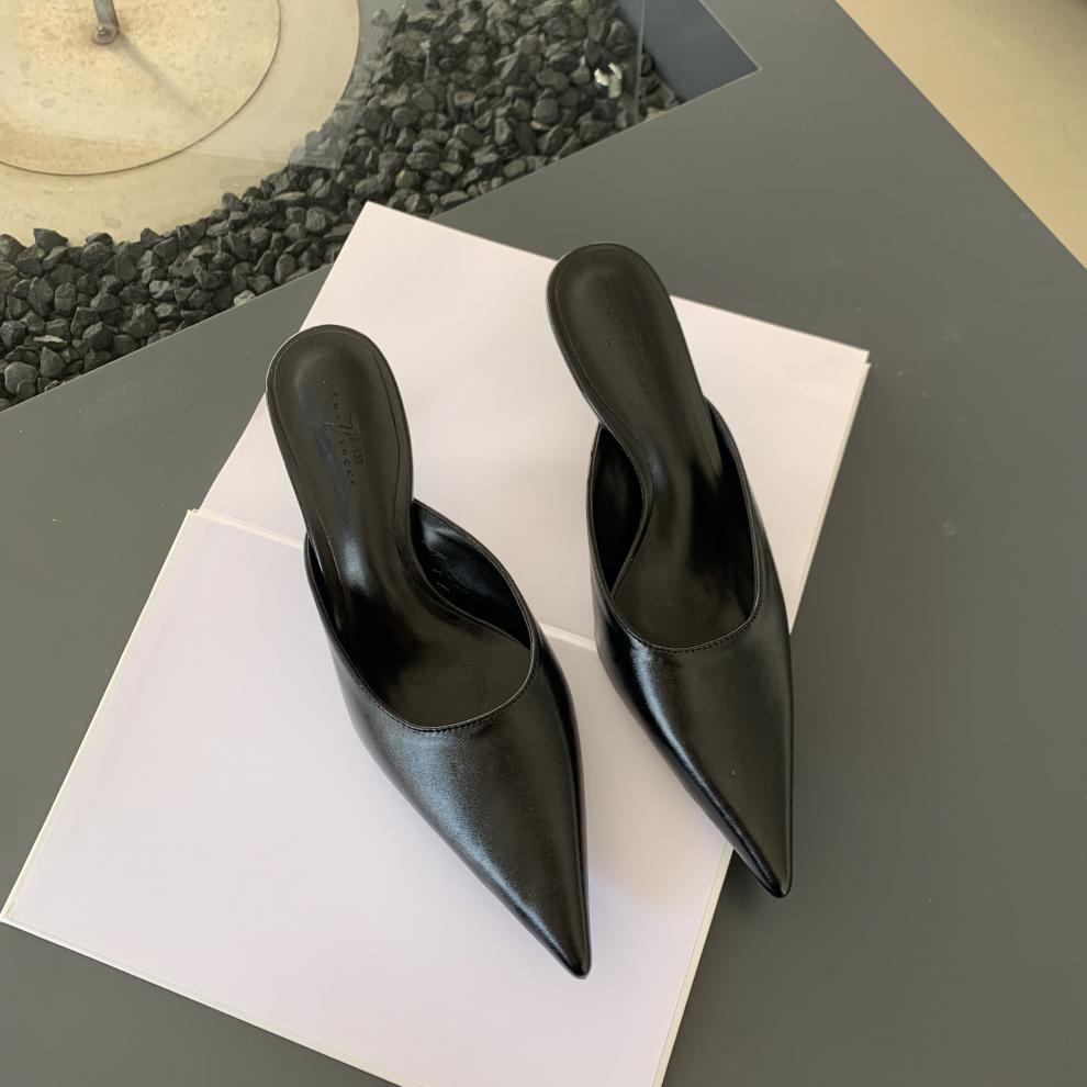 2024 봄과 여름 새로운 뾰족한 발가락 스틸레토 힐 유럽 및 미국 패션 패션 신발 닫힌 발가락 백 빈 샌들 스틸레토 힐 하프 슬리퍼 여성용 신발