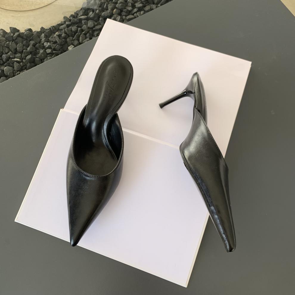 2024 봄과 여름 새로운 뾰족한 발가락 스틸레토 힐 유럽 및 미국 패션 패션 신발 닫힌 발가락 백 빈 샌들 스틸레토 힐 하프 슬리퍼 여성용 신발스토어 가기