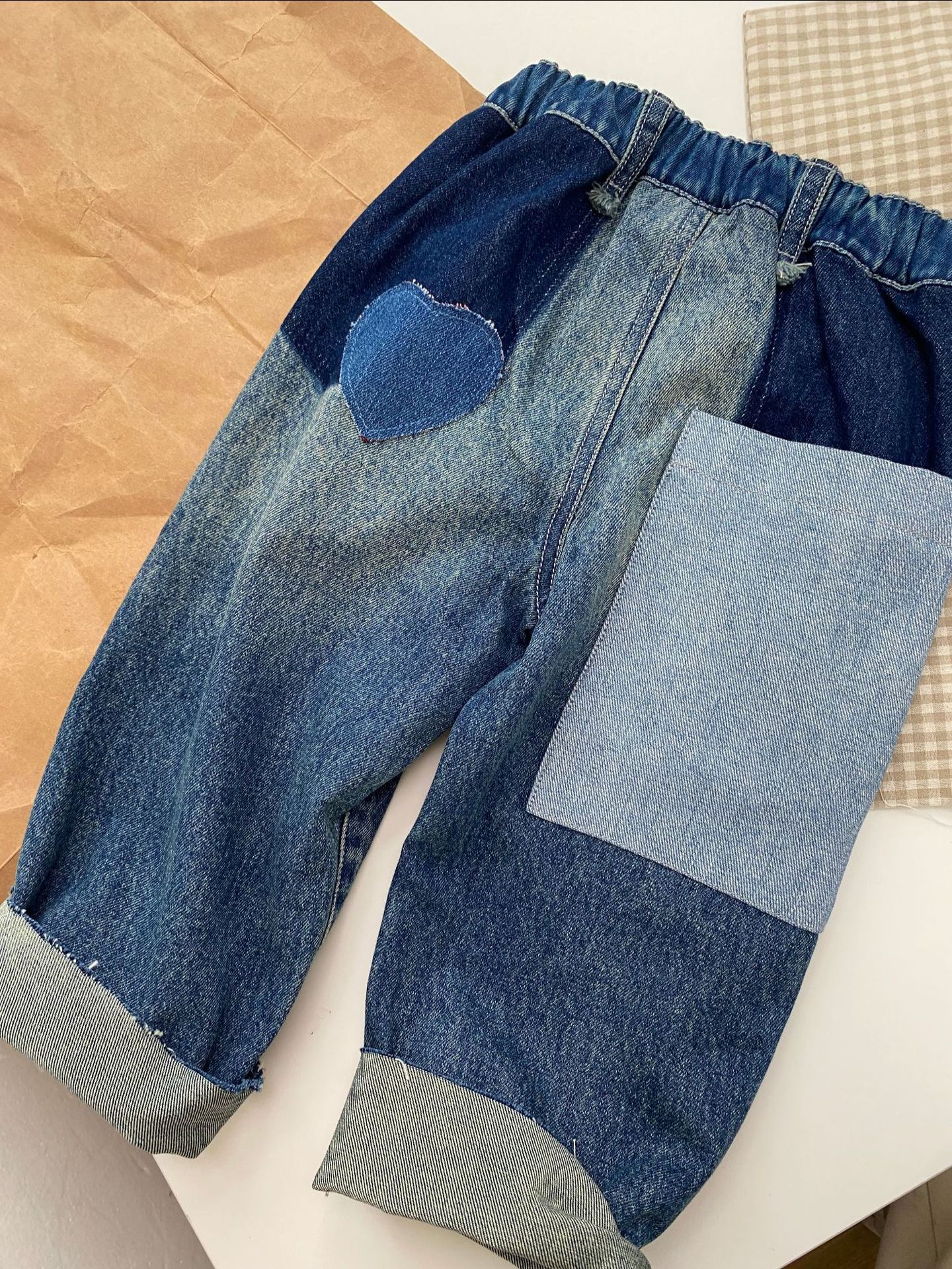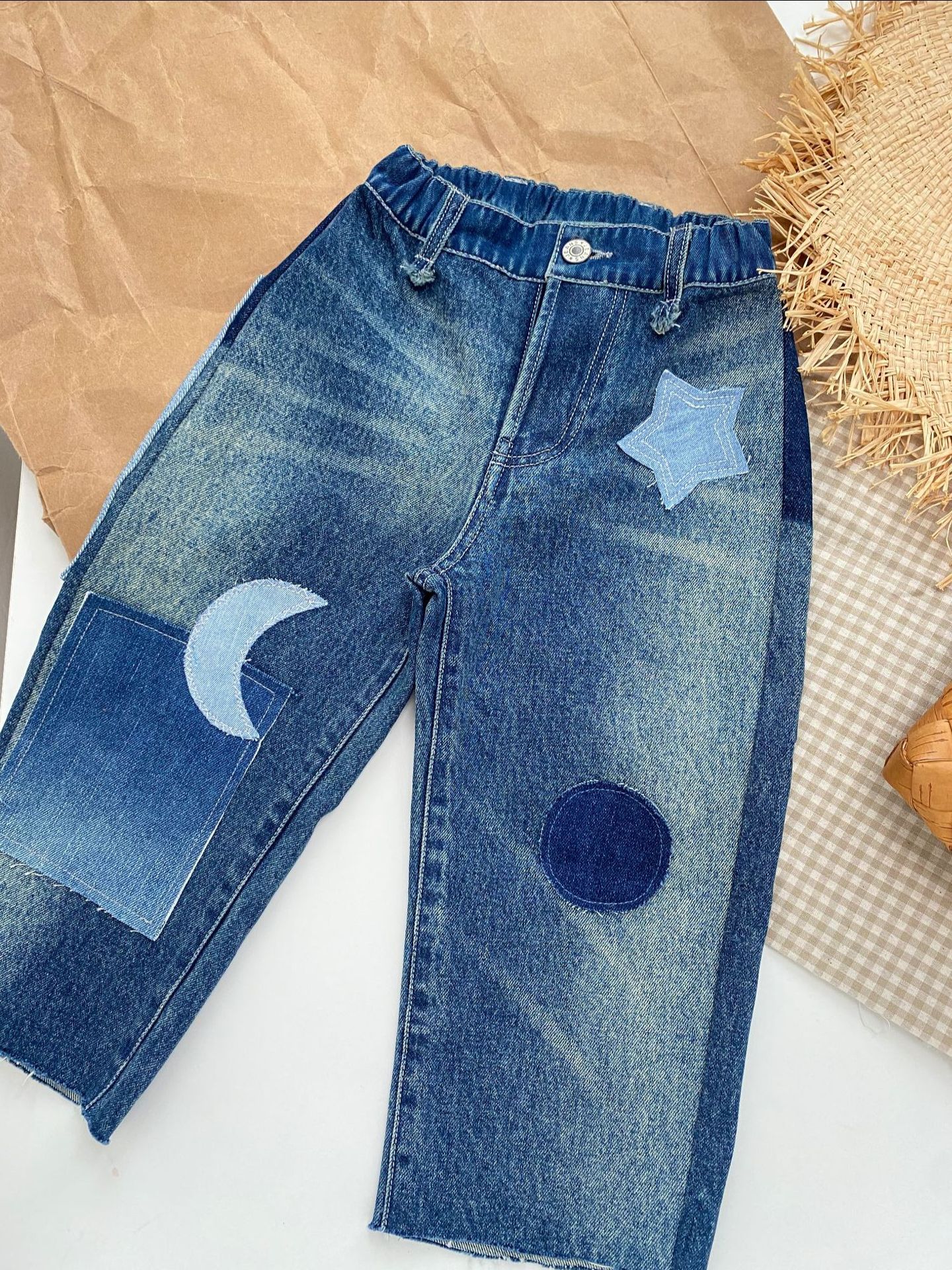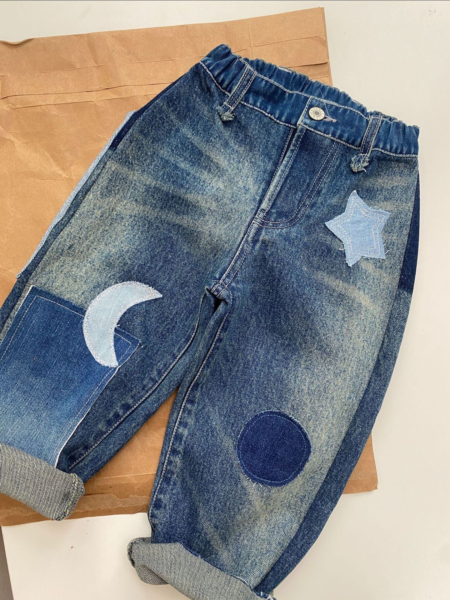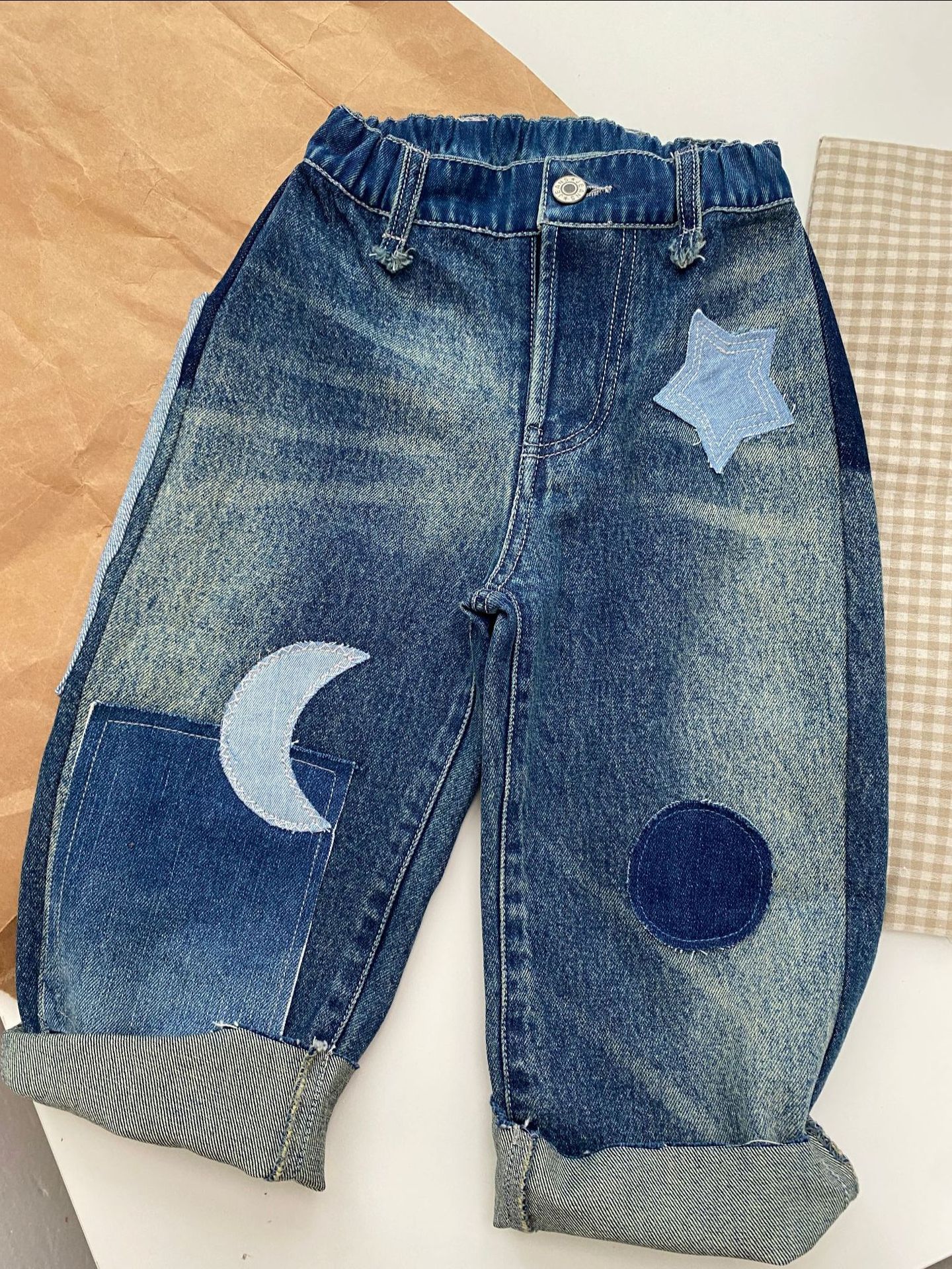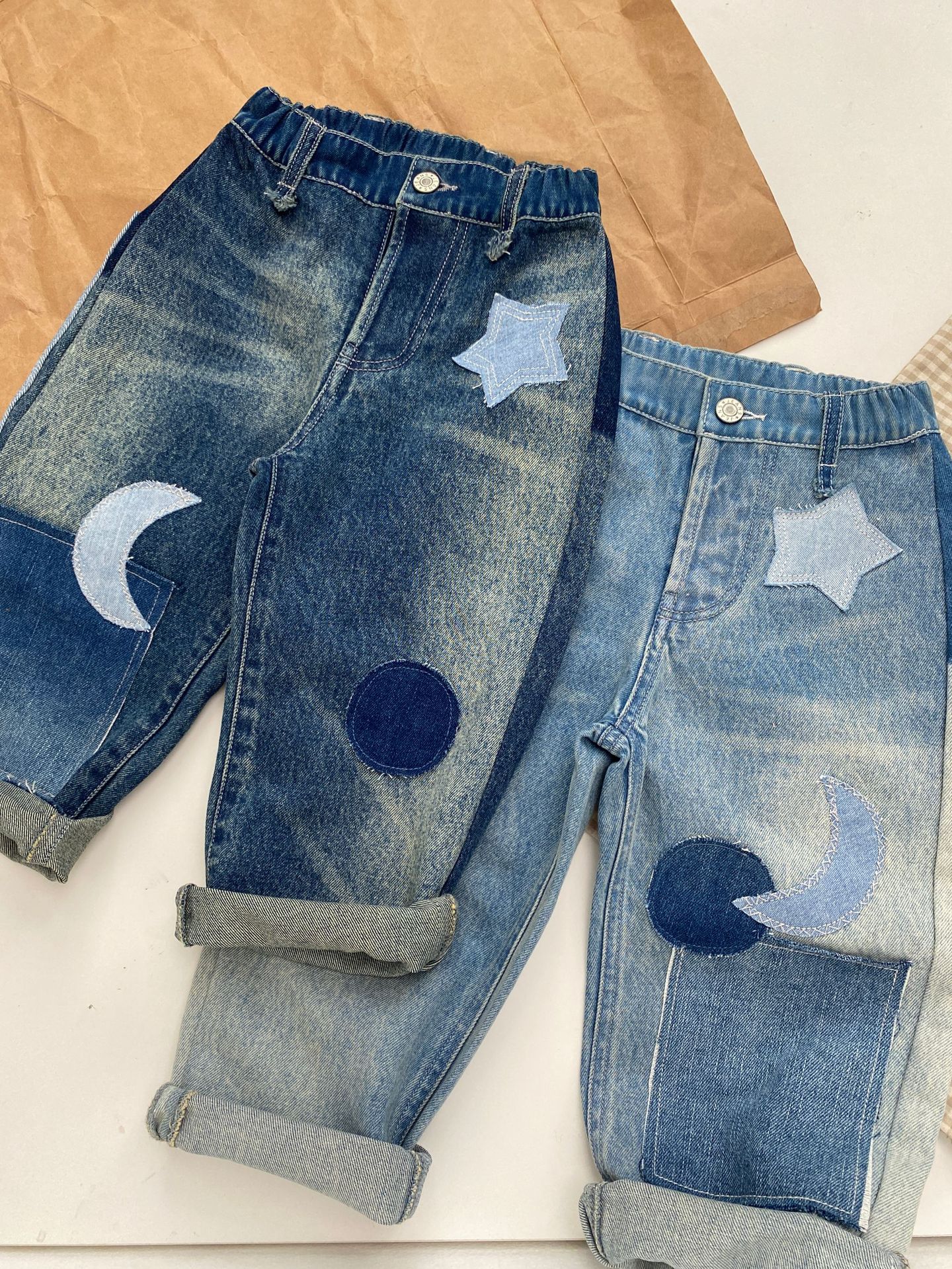 2024년 봄 여름 신상품 남녀 아동 수제 데님 다용도 바지--일월별 편안함스토어 가기