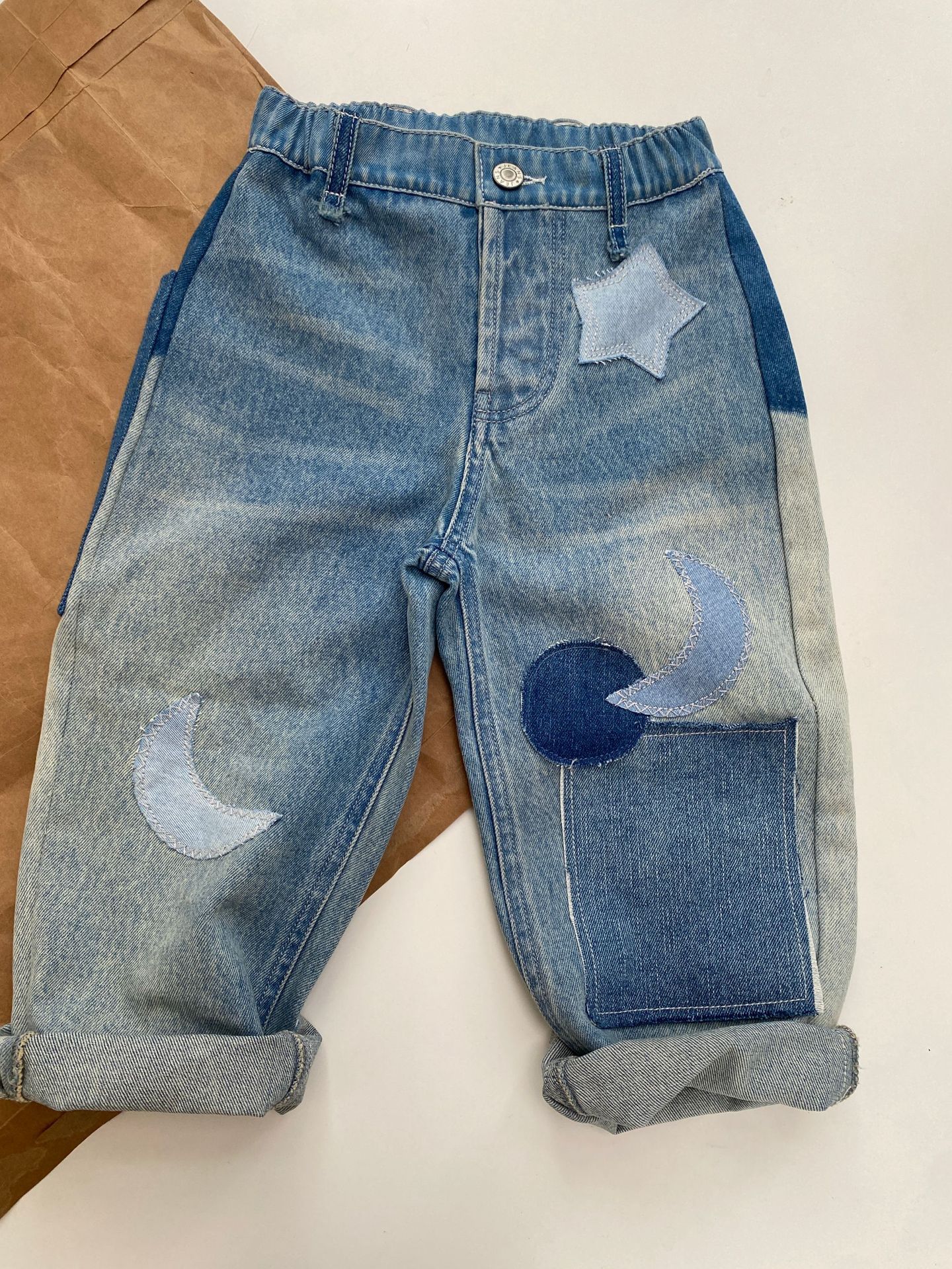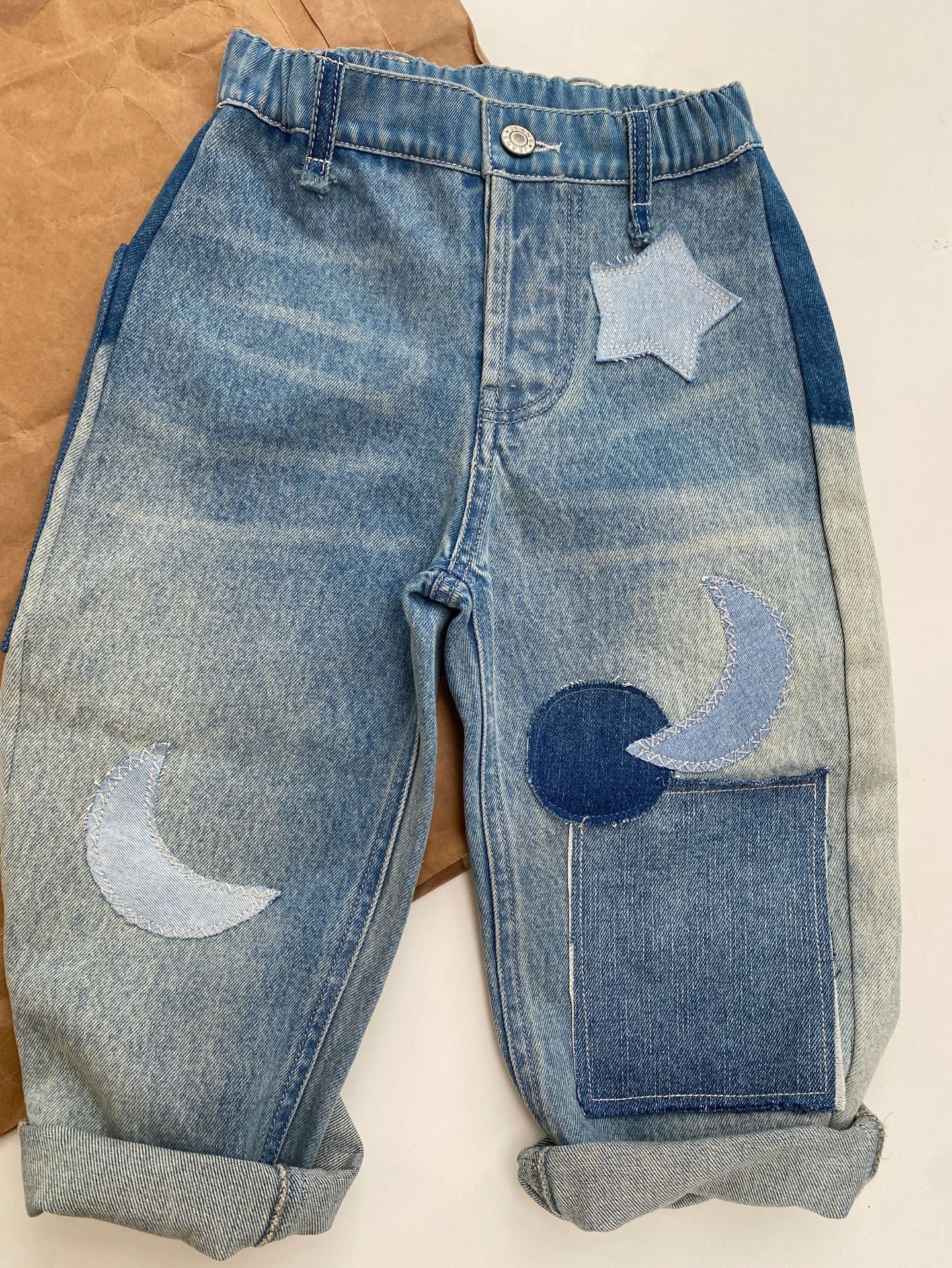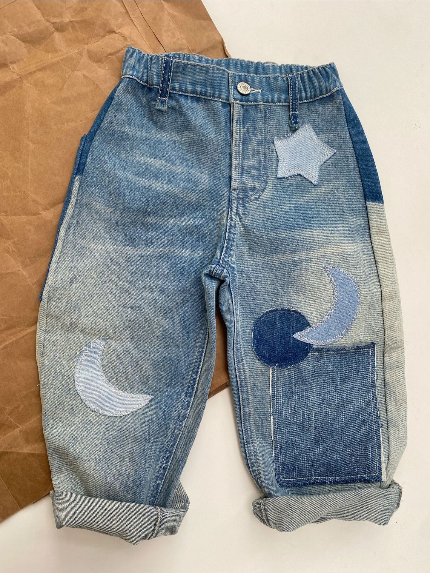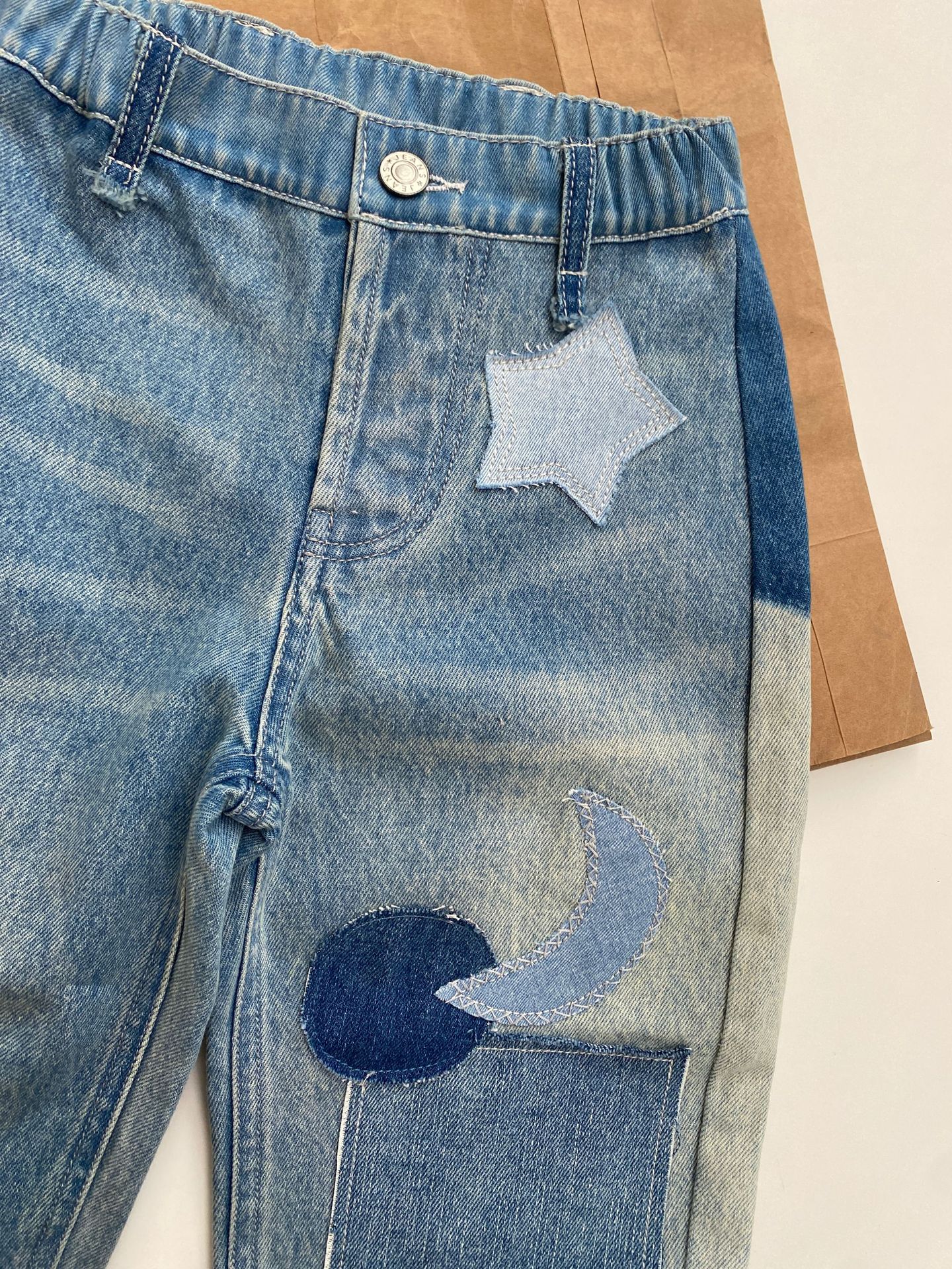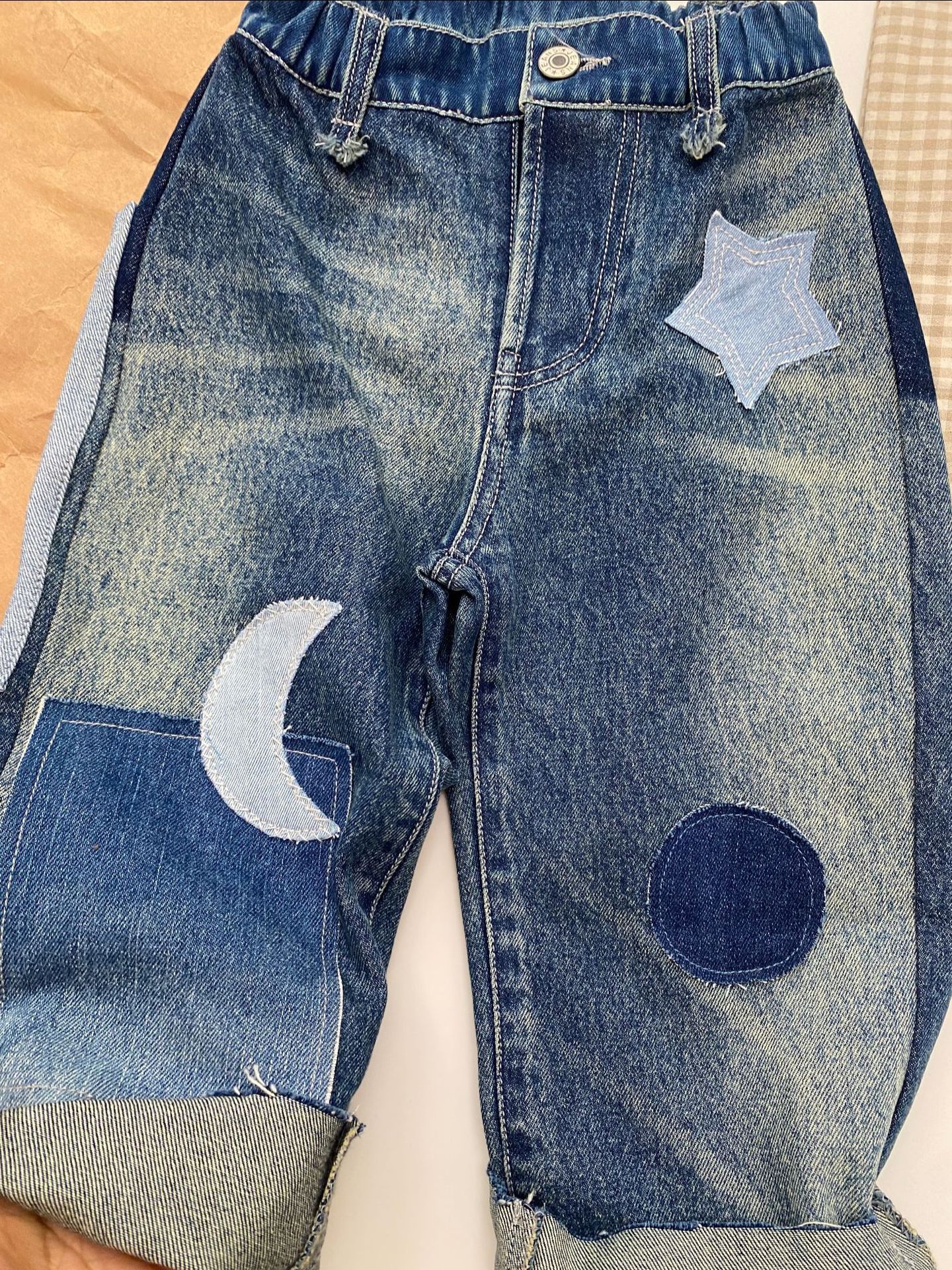 2024년 봄 여름 신상품 남녀 아동 수제 데님 다용도 바지--일월별 편안함스토어 가기