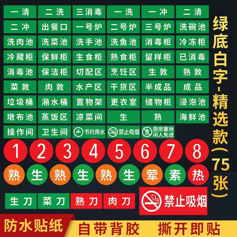 • 19*7.5 스티커 주방 로고 녹색 배경에 75 흰색 문자 세트