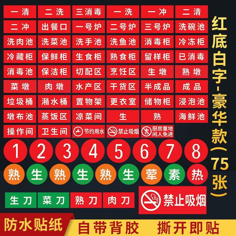 • 19*7.5 스티커 주방 로고 빨간색 배경에 75 흰색 문자 세트
