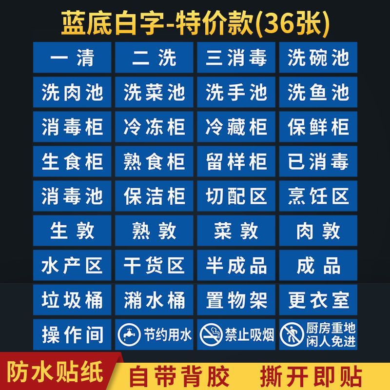 • 22*9 스티커 부엌 로고 파란색 배경 흰색 단어 세트 36 조각