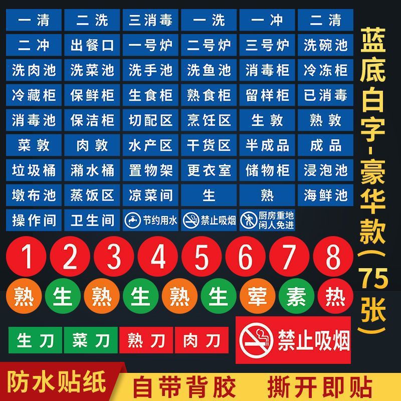 • 19*7.5 스티커 주방 로고 파란색 배경에 75 흰색 문자 세트