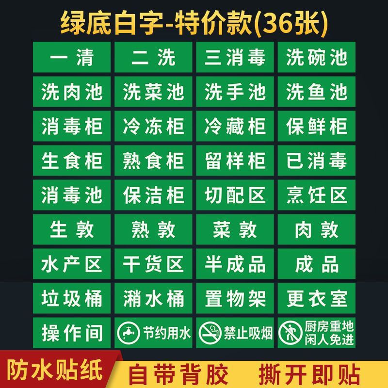 • 22*9 스티커 부엌 로고 녹색 배경 흰색 단어 세트 36 조각