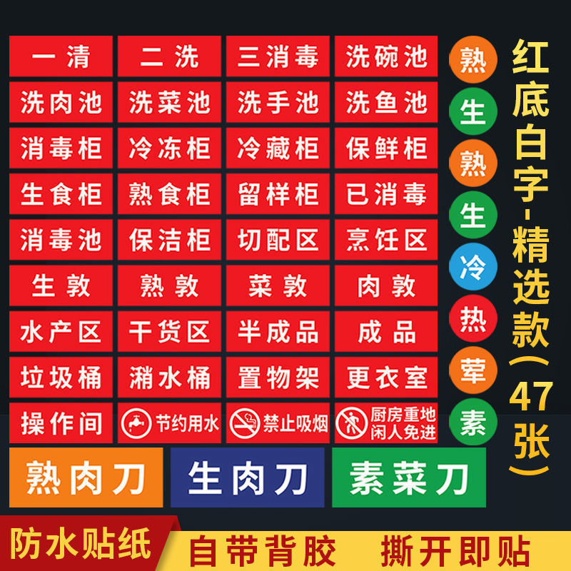 • 22*9 스티커 주방 로고 빨간색 배경에 47 흰색 문자 세트