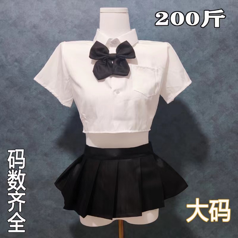 플러스 사이즈 뚱뚱한 소녀 섹시한 란제리 섹시 스플릿 학생 JK 유니폼 탑 체크 무늬 주름 치마 세트 욕하는 밤