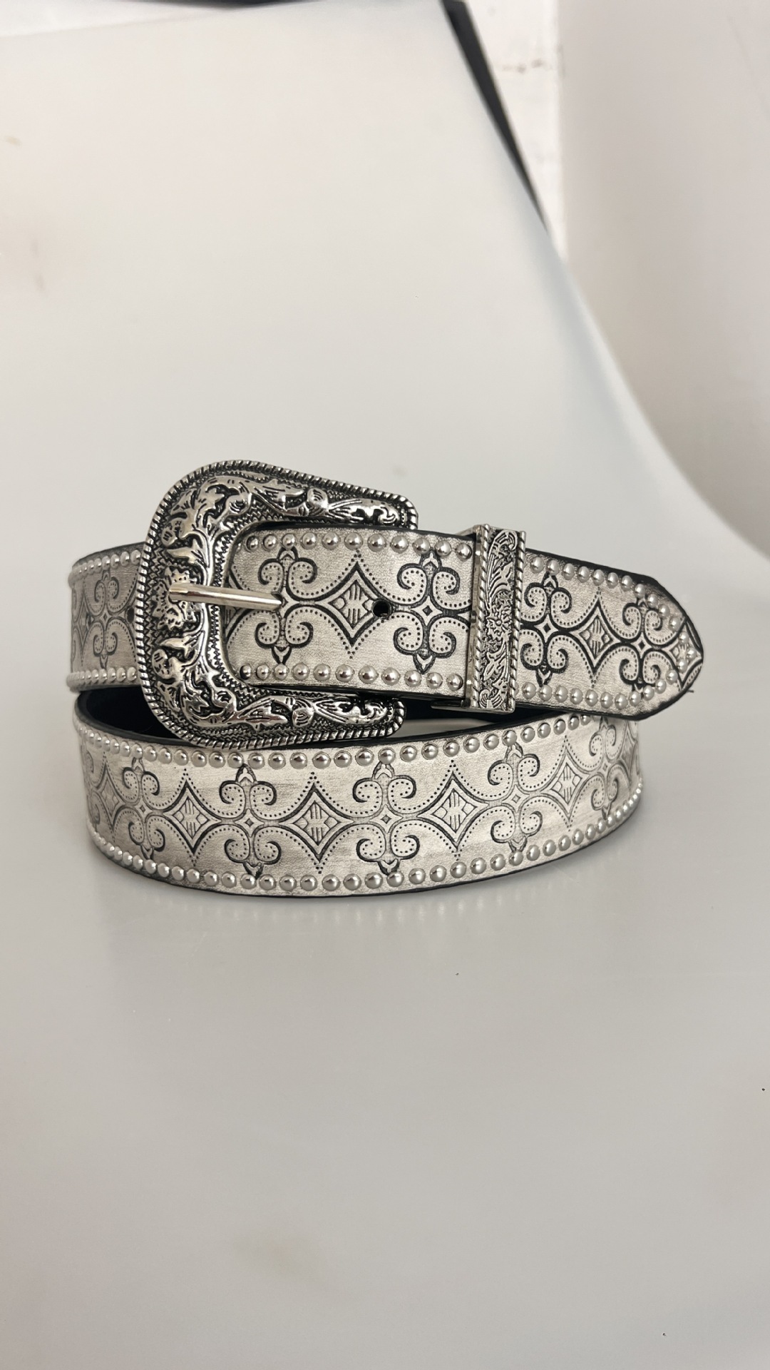 뉴 디자이너리크 Y2K 밀레니얼 핫걸 레트로 빈티지 스터드 장식 엠보싱 벨트 중동 스타일 핀 버클 가죽 벨트 여성용스토어 가기