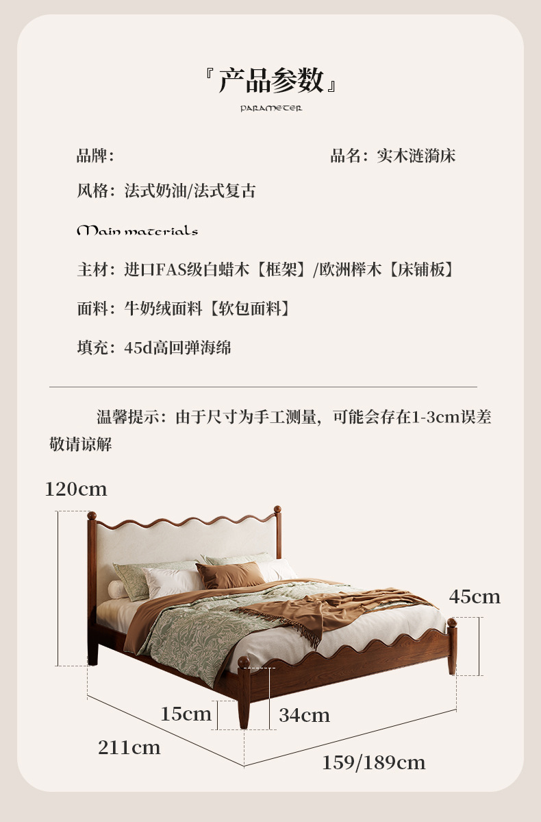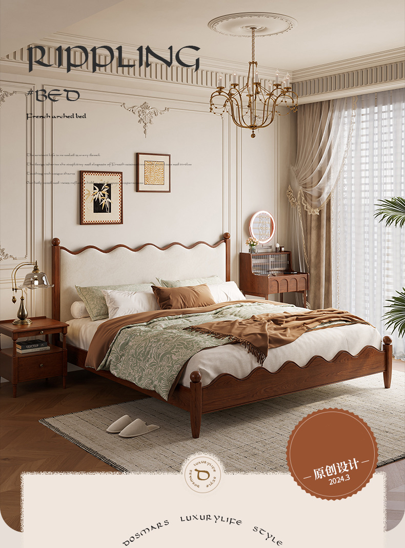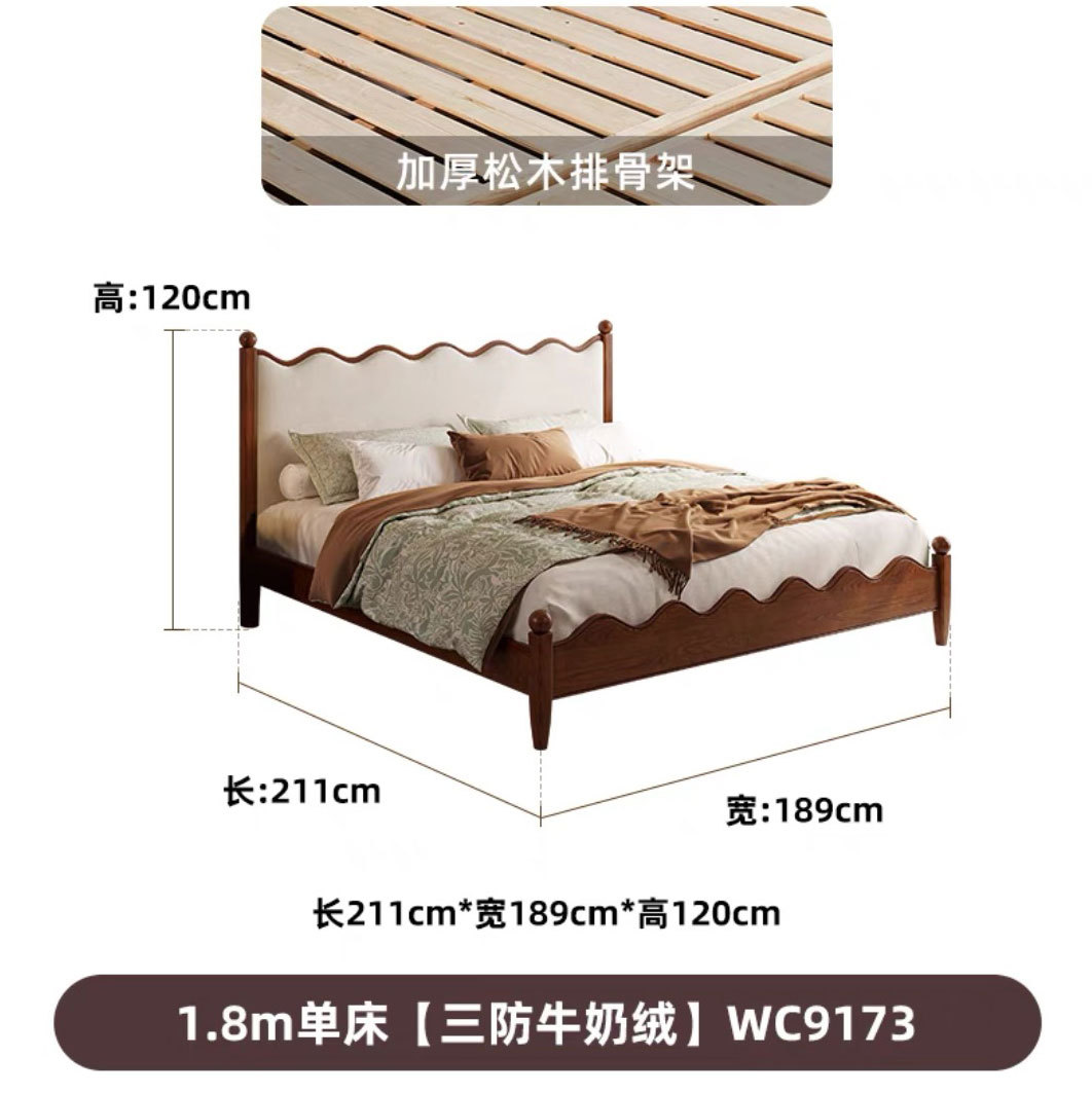 댄 팬 프랑스 크림 스타일 빈티지 침대 중간 스타일 큰 침대 작은 아파트 풀 더블 노르딕 애쉬 솔리드 우드 침대스토어 가기