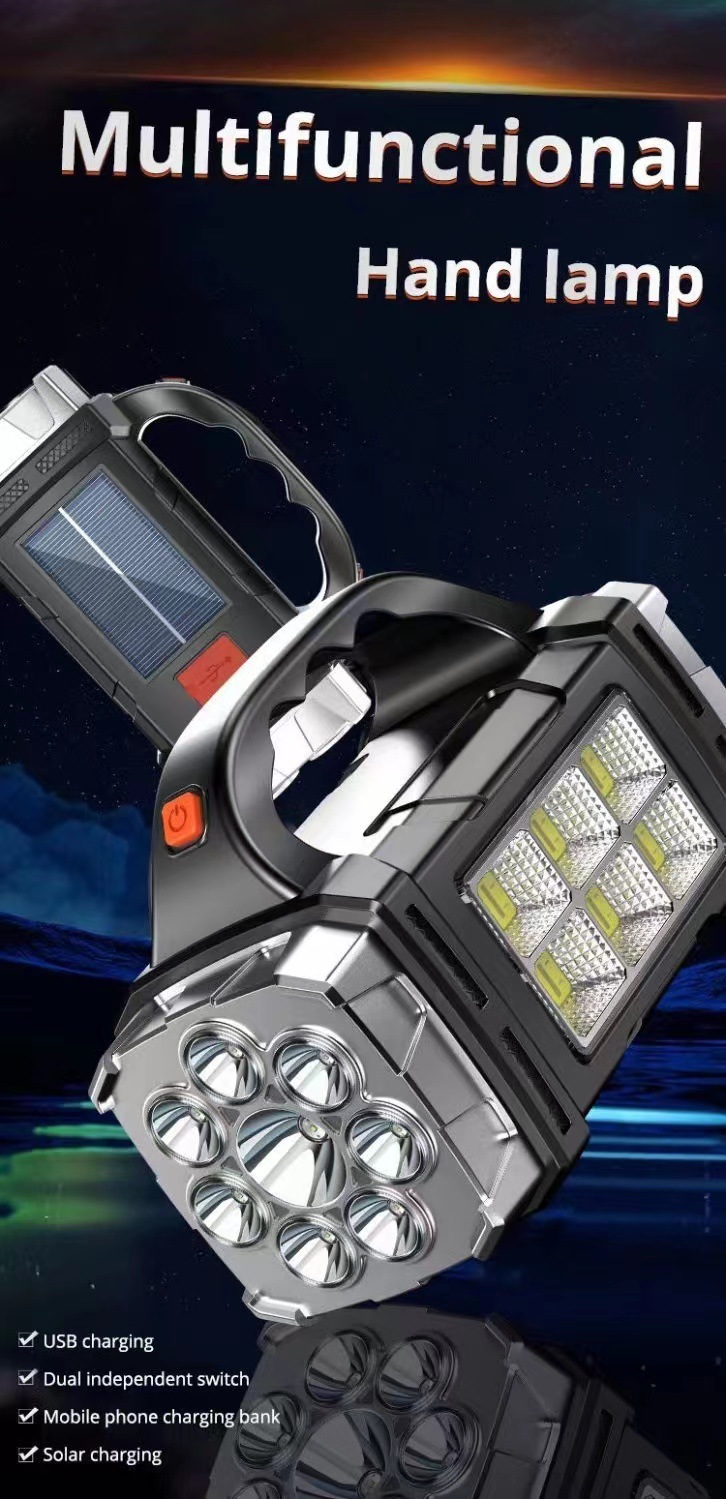 국경 간 손전등 태양 충전식 야외 led 장거리 홈 순찰 휴대용 탐조등