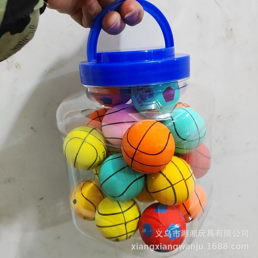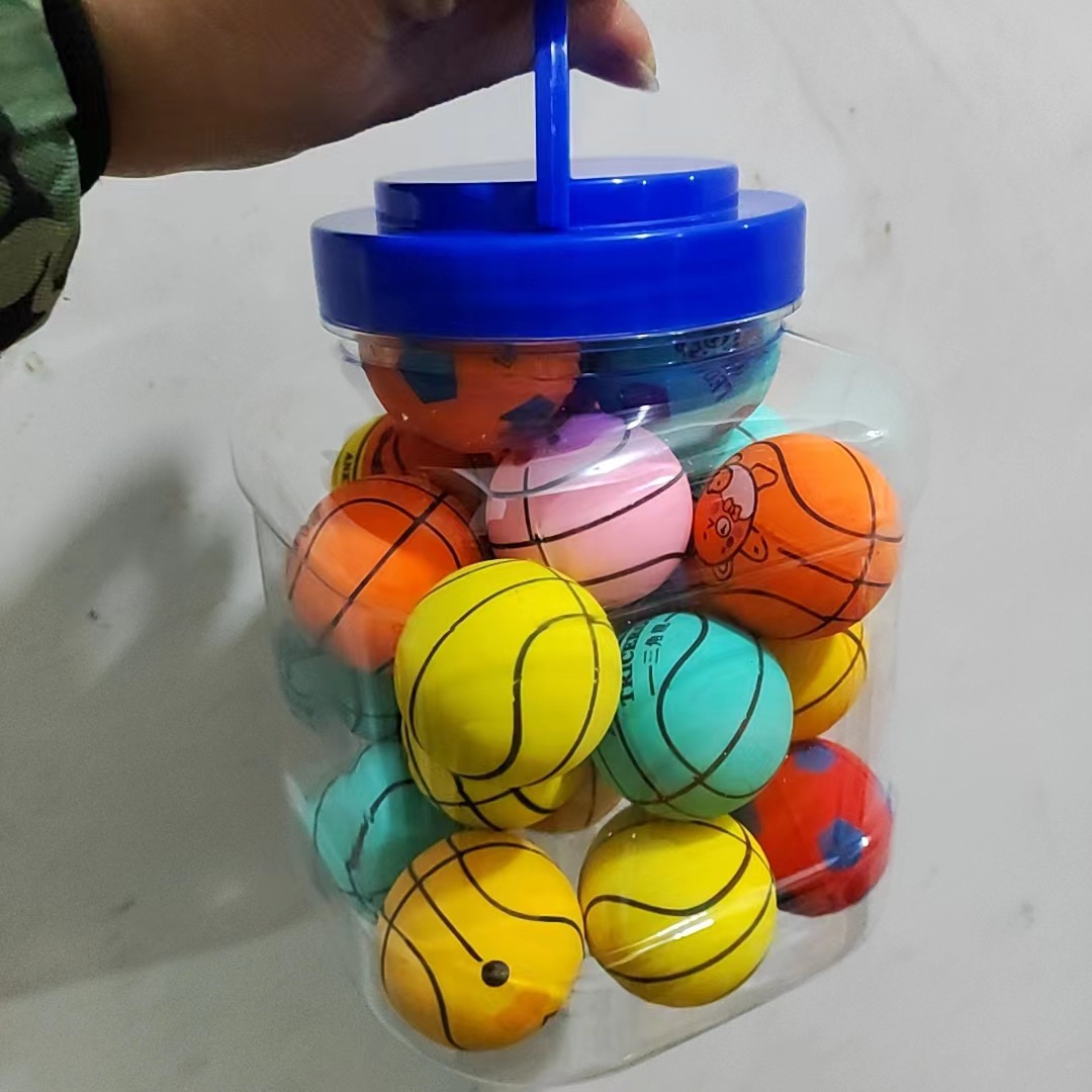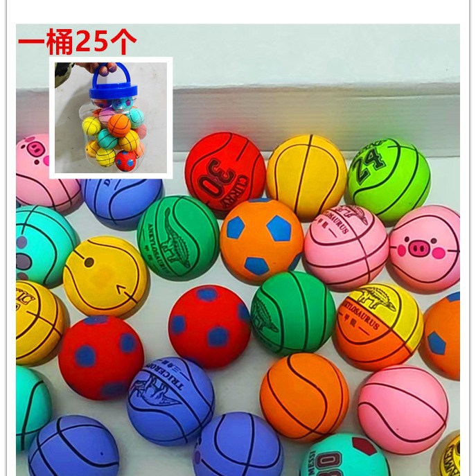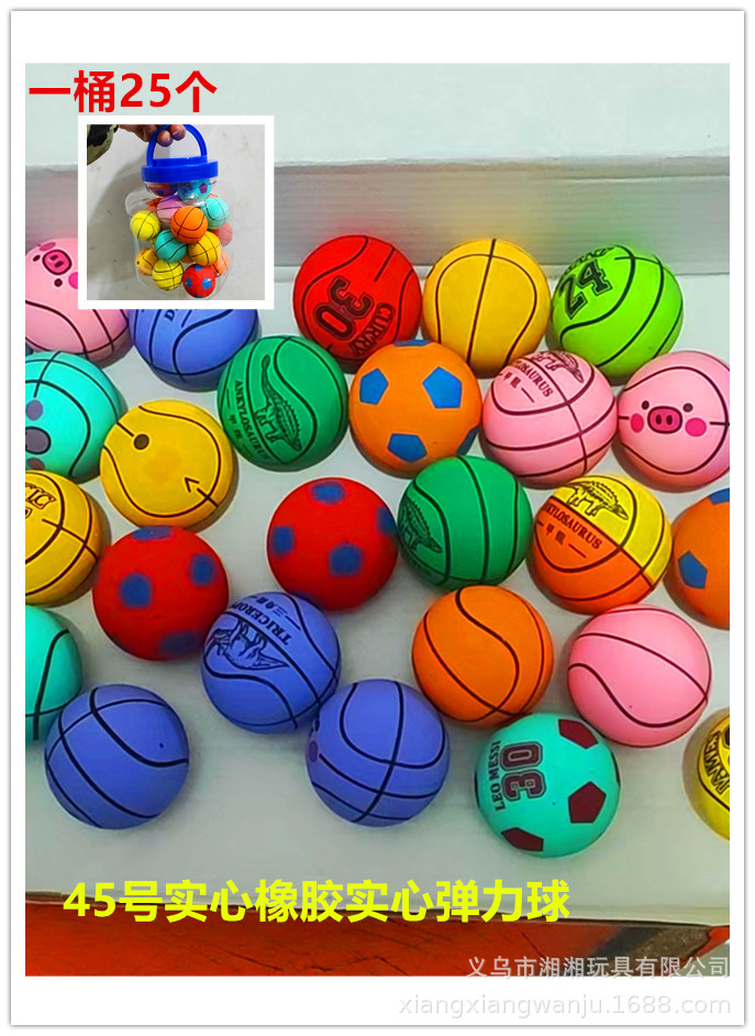 45号实心橡胶弹力球 一桶25个一箱750个30桶 箱规65.40.35 一箱毛重在40公斤样子 45号实心球款式混 实际尺寸4.2厘米 产品是机器合模起来 中间有点小瑕疵实属正常的 这个是印刷的 一点点小瑕疵都是正常的 接受不了慎重购买 感谢理解和支持、 产品都是不含税点的